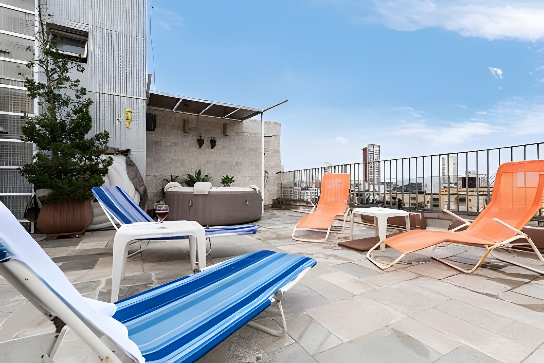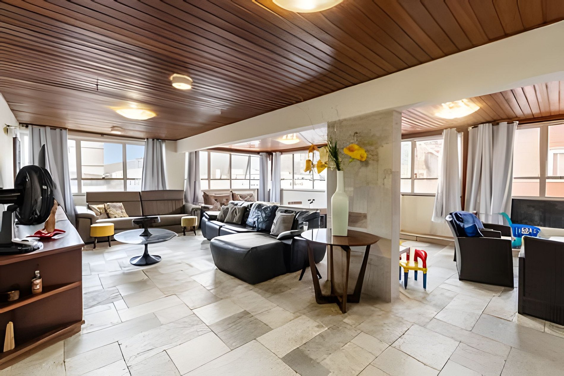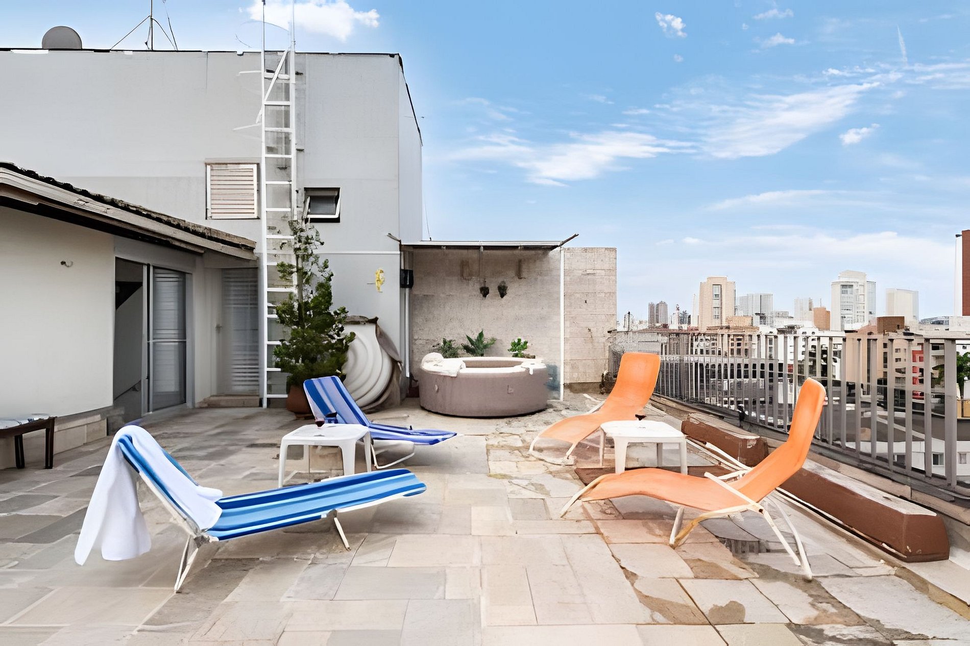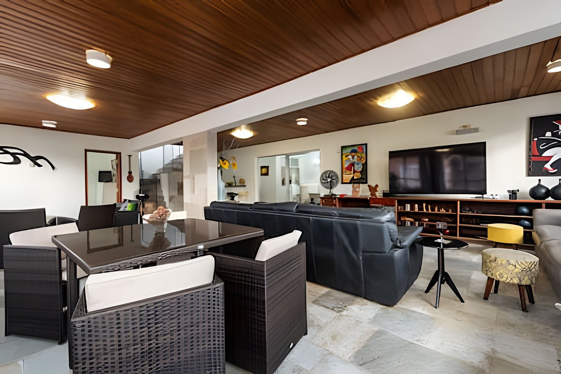 Desfrute de uma experiência inesquecível nesta deslumbrante cobertura duplex, perfeita para famílias e amigos. Com 5 quartos, sendos os 3 principais com ar condicionado e os outros 2 com ventilador, 4 banheiros, acomodando até 12 hóspedes confortavelmente. A propriedade inclui uma jacuzzi privativa, churrasqueira, área infantil, sala de jantar, e uma sala espaçosa com TV de 75". Cozinha completa e lavanderia equipada.