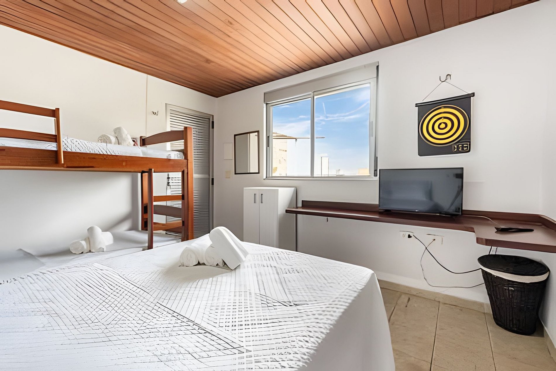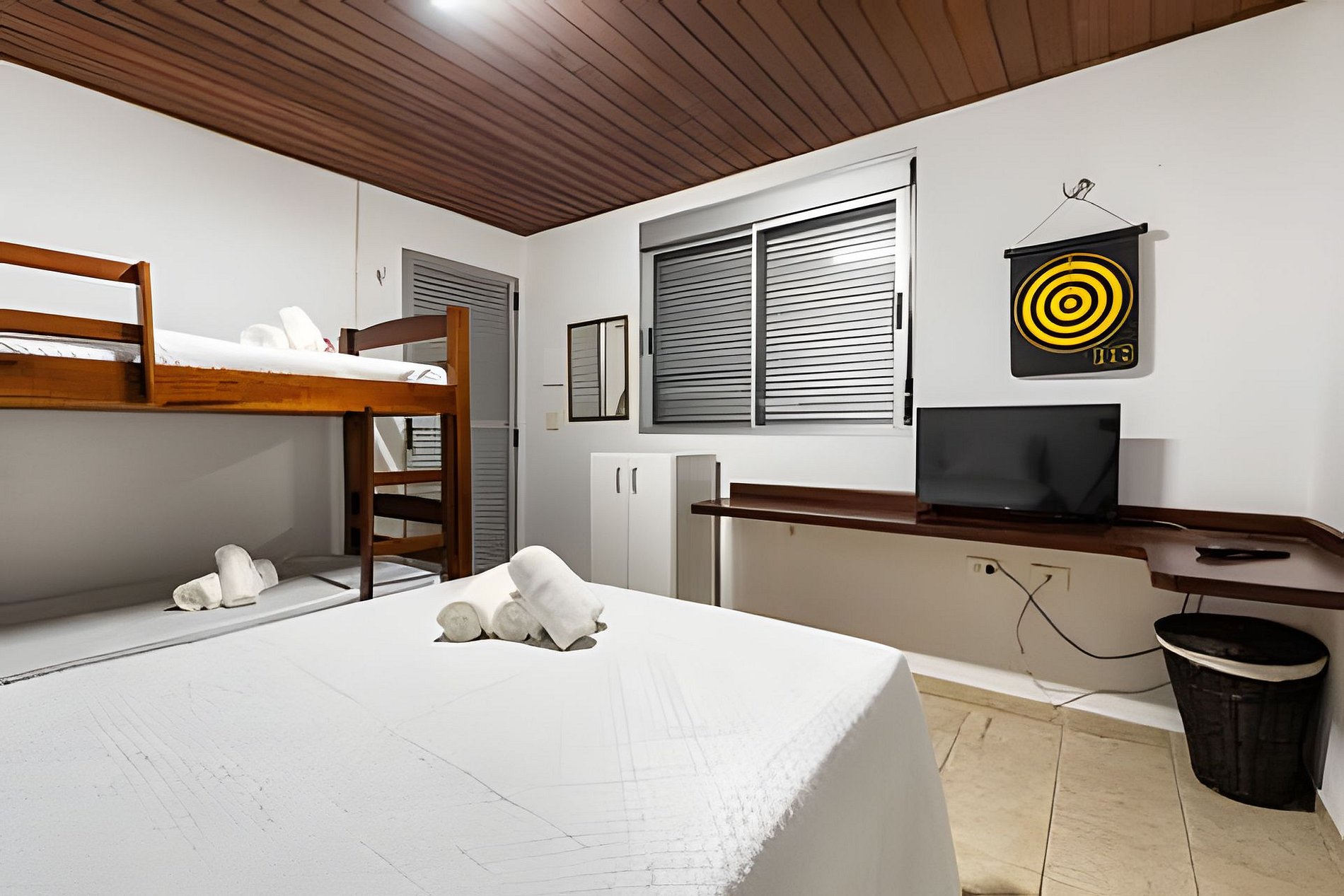 *Espaço para 12 hóspedes: Dormem confortavelmente em 5 quartos, equipados com TV.