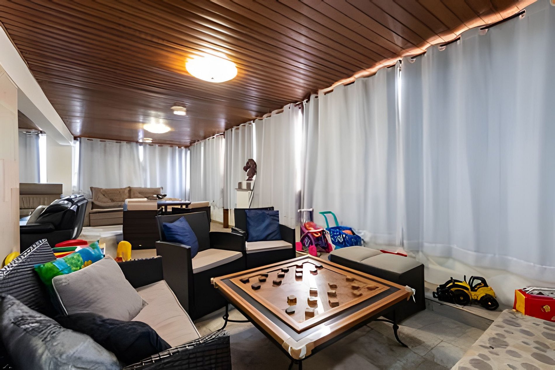 *Ampla sala de estar: Com sofás aconchegantes, mesas espaçosas e uma TV de 75 polegadas para maratonas de filmes e jogos.