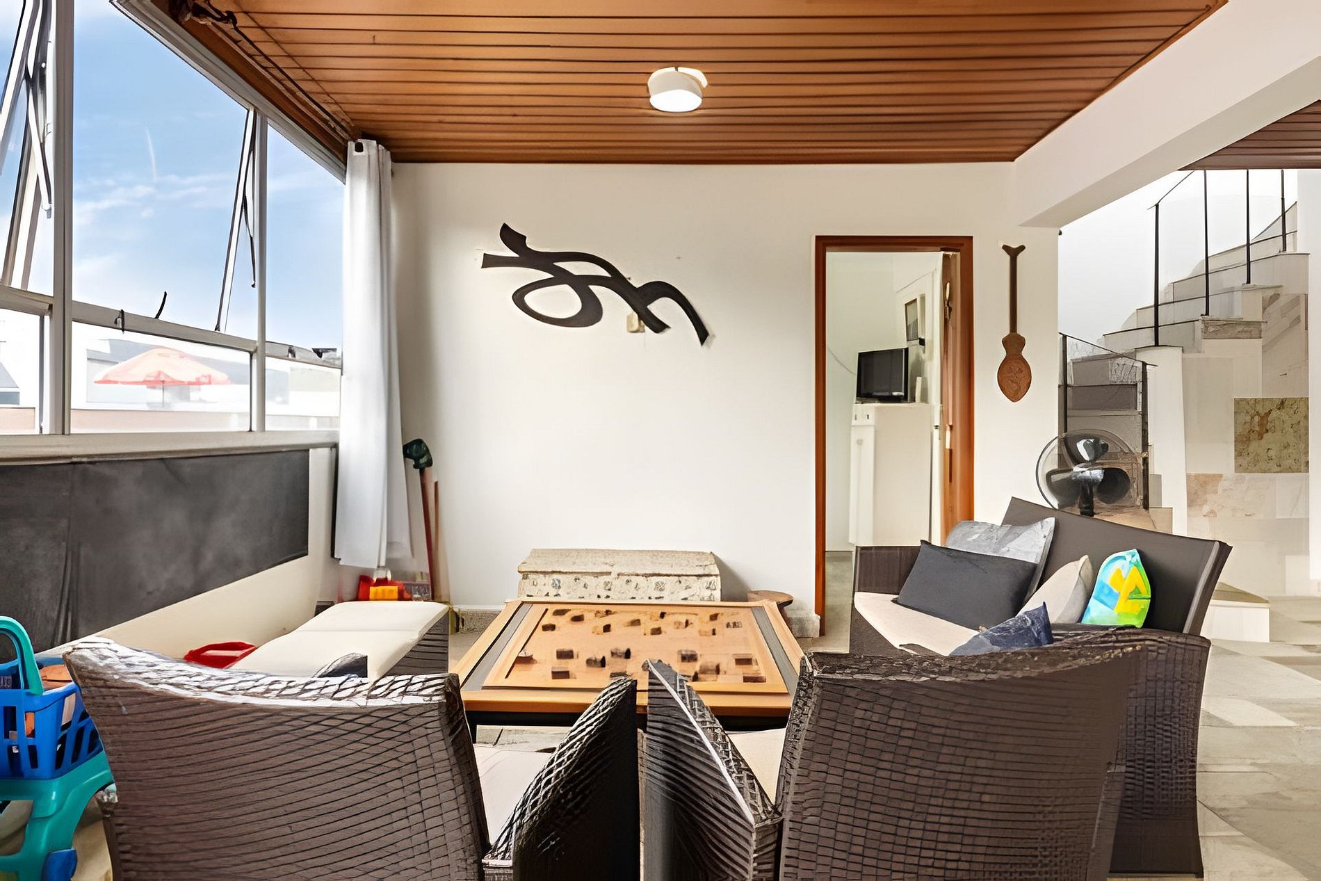 A poucos passos de um mercadinho 24h para suas necessidades imediatas. -A cobertura está a uma curta distância do shopping Enseada, rodeada por uma variedade de bares, restaurantes e farmácias.