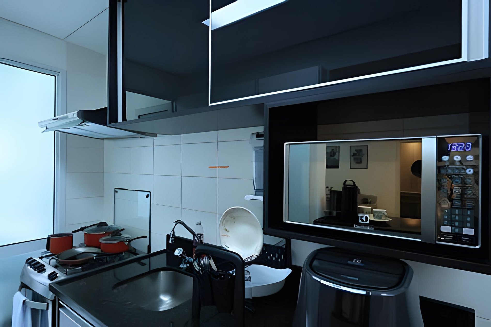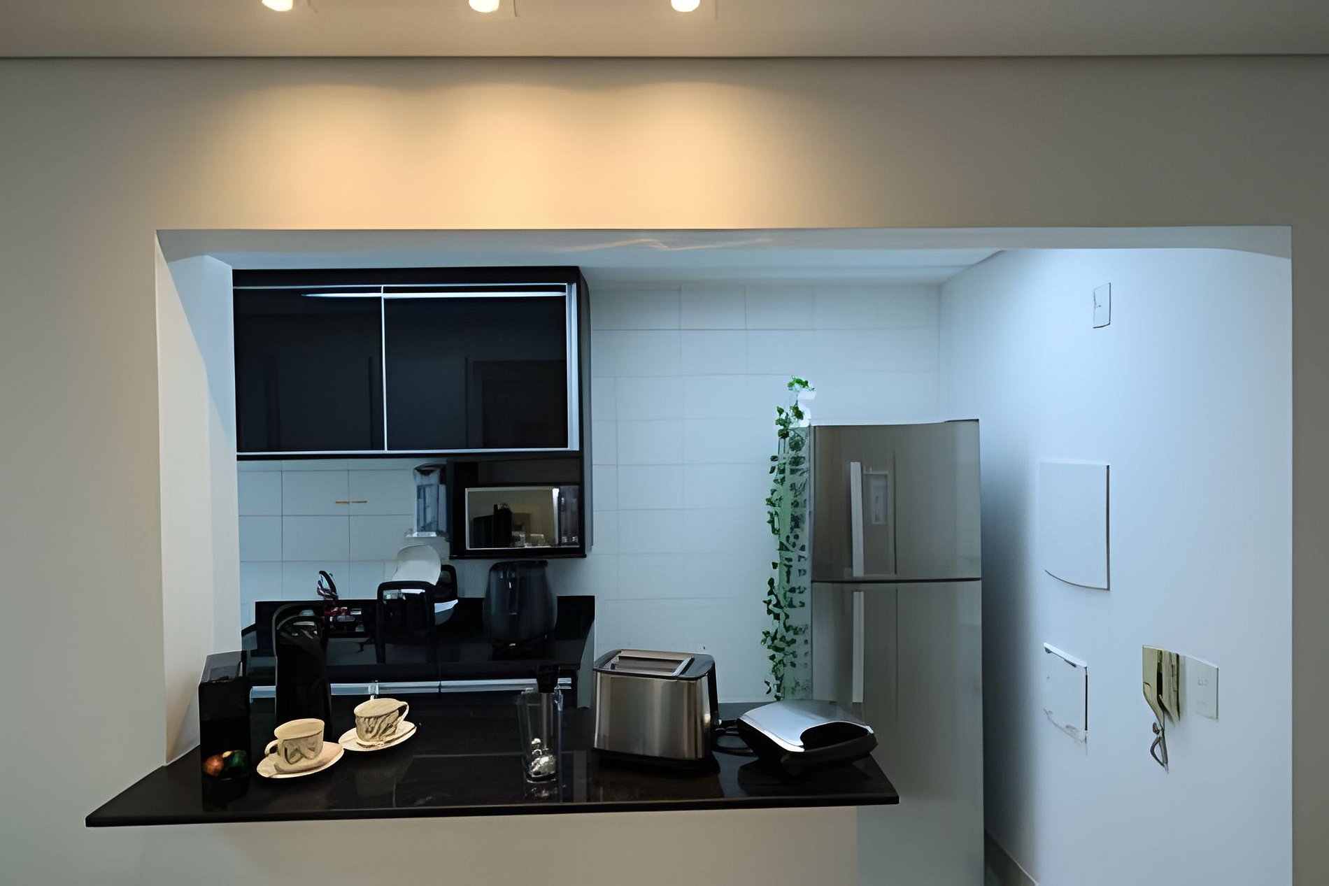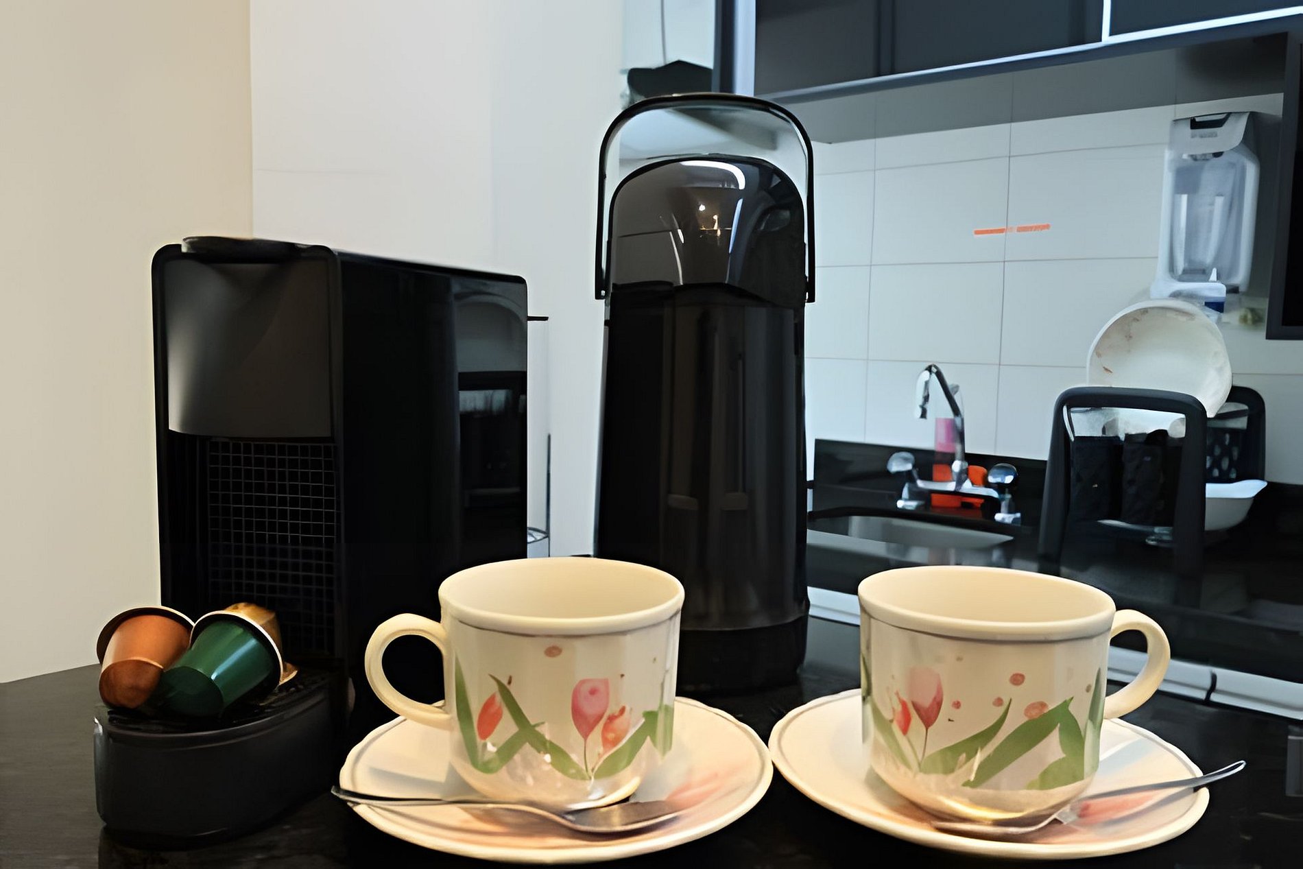 * Cozinha Completa e Equipada: Com eletrodomésticos modernos e eletroportáteis de última geração, todos da marca Electrolux (fogão com forno a gás, exaustor, air-fryer, micro-ondas, mixer, sanduicheira, torradeira), cafeteira Nespresso, filtro de água, e todos os utensílios necessários.