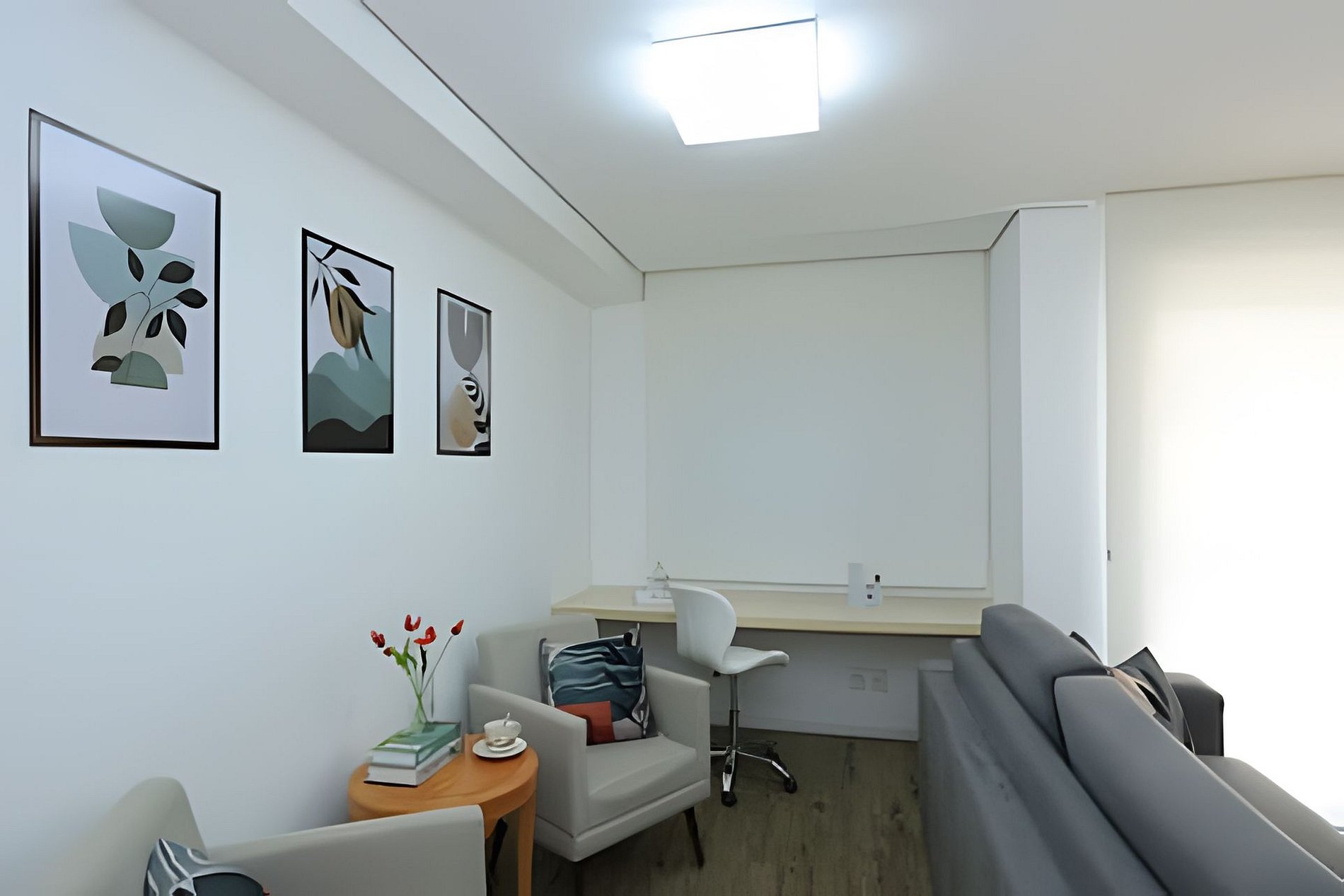 * Sala de Estar: Ampla, equipada com Smart TV de 60’, sofá cama e poltronas.