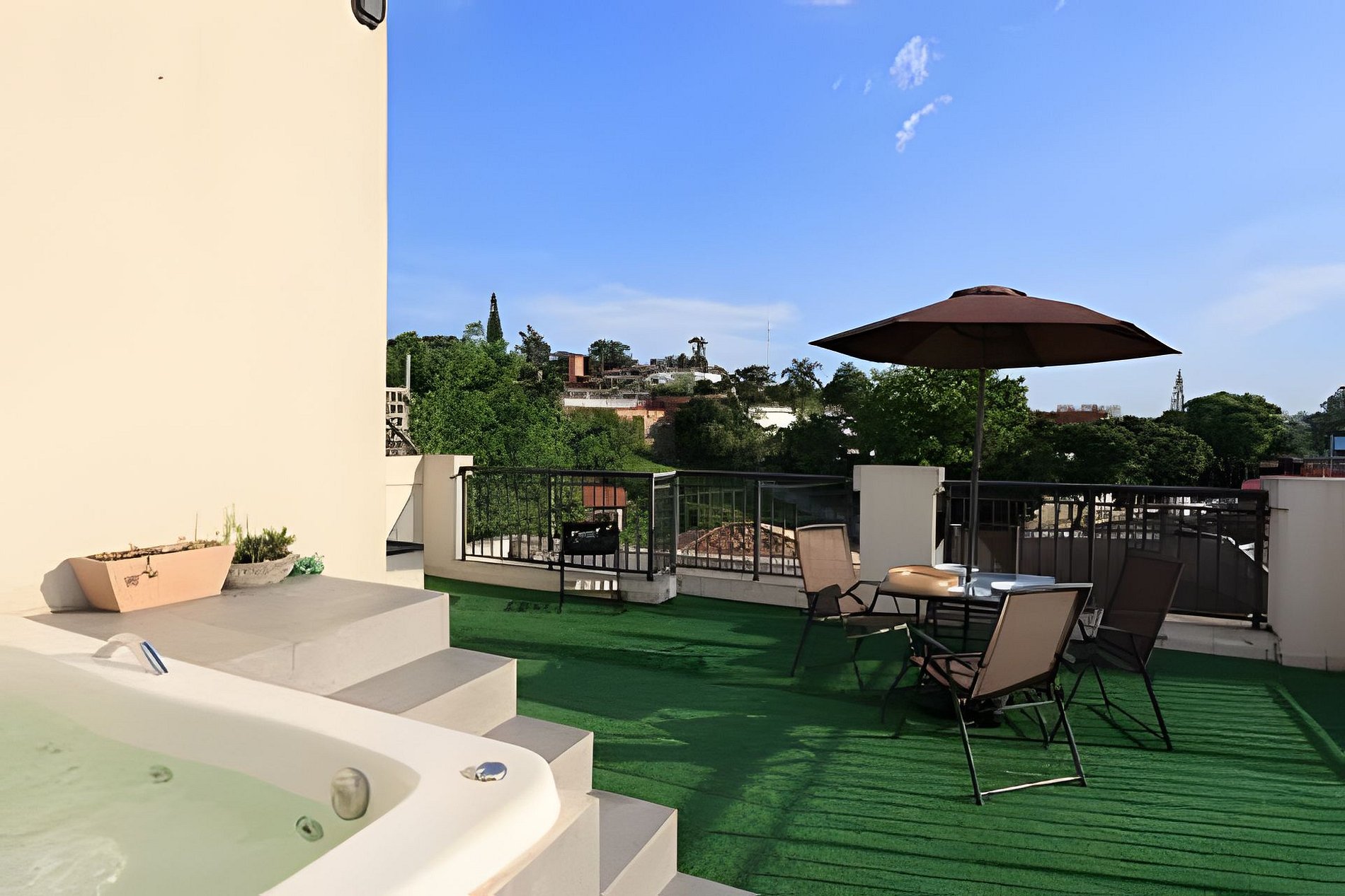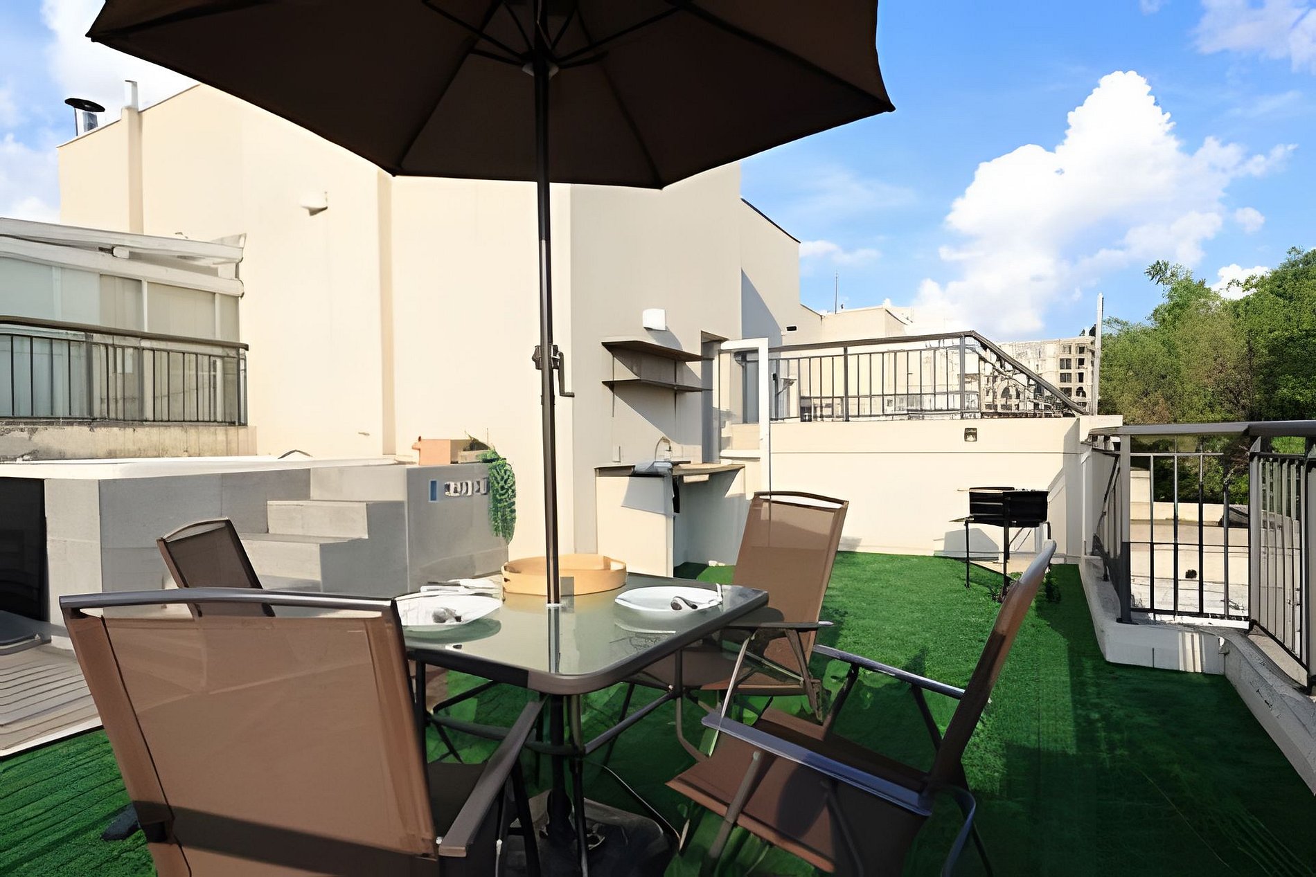 * Área de Lazer Privativa: Espaço gourmet com churrasqueira portátil, jacuzzi, mesa com ombrelone para banho de sol e espaço para aproveitar a vista e a natureza.