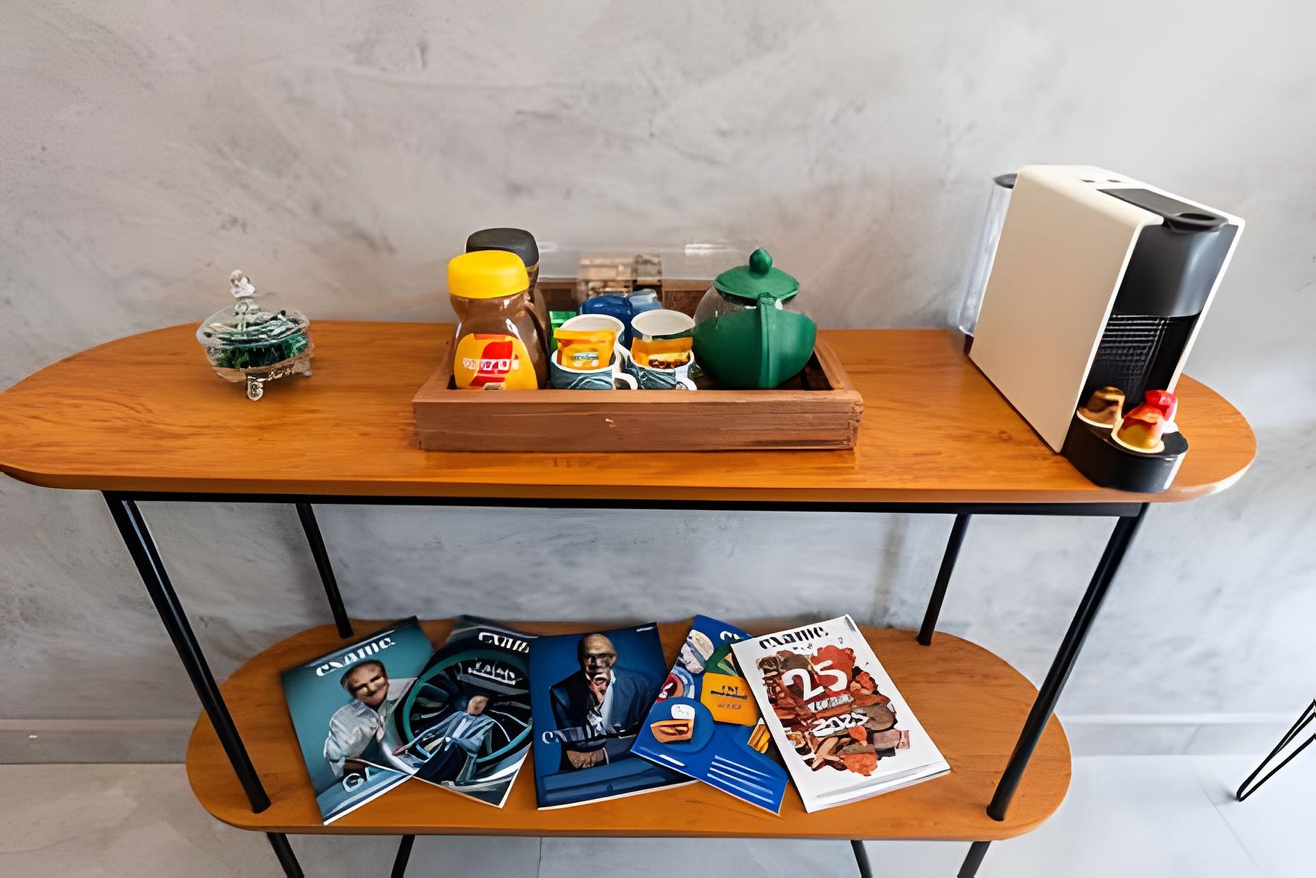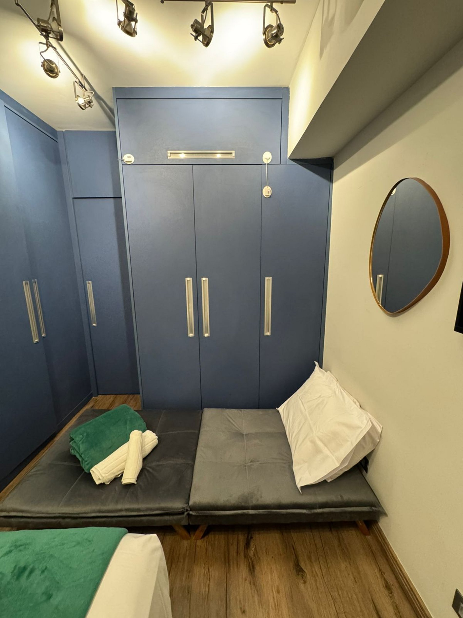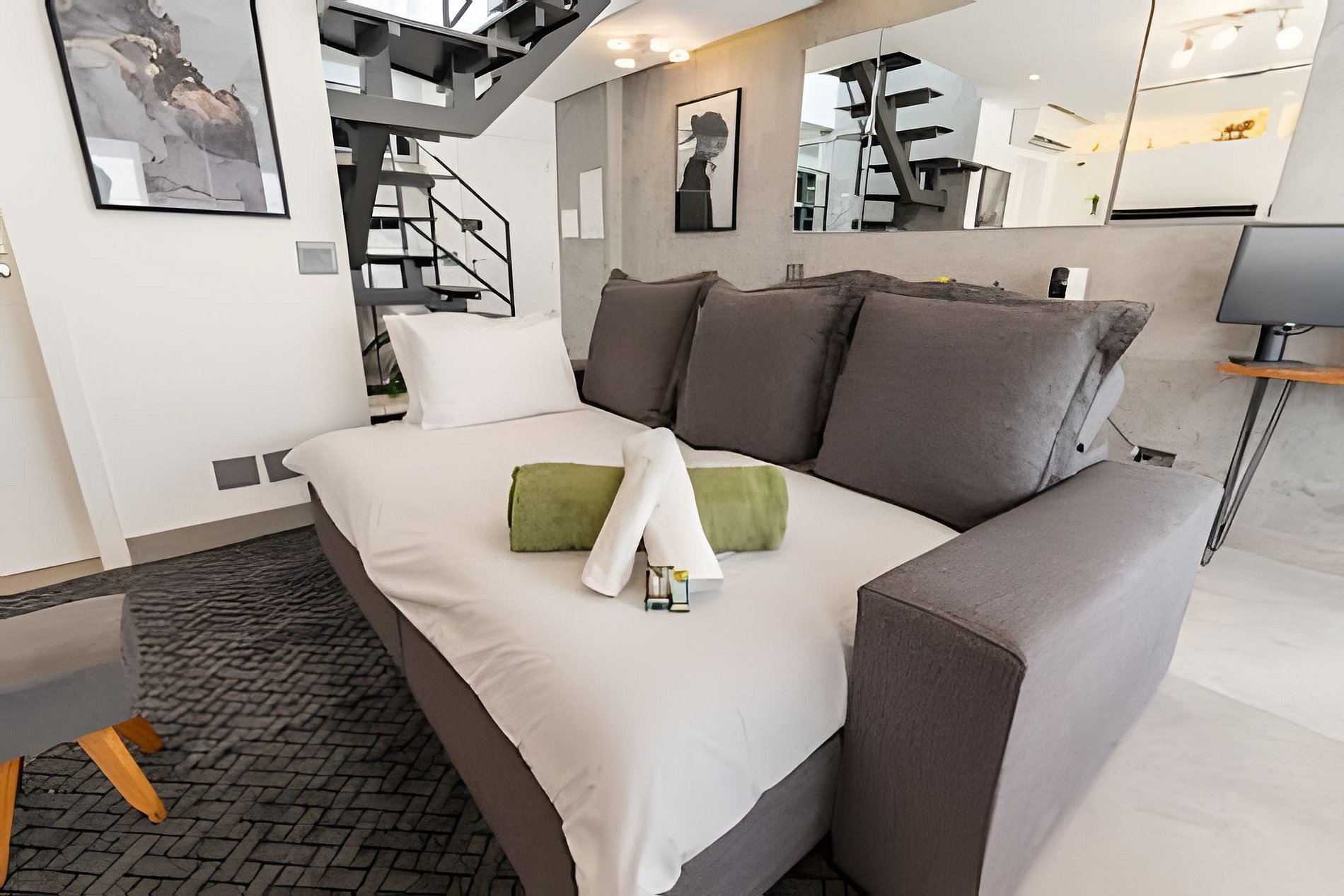 *Sala de Estar: Espaçosa, com sofá que se transforma em uma cama de casal e TV de 55’ para uma experiência de cinema em casa.