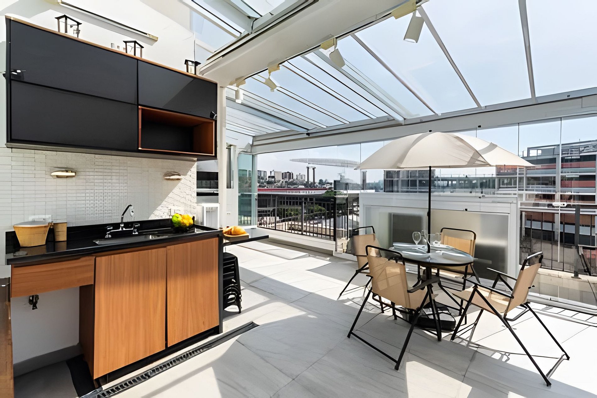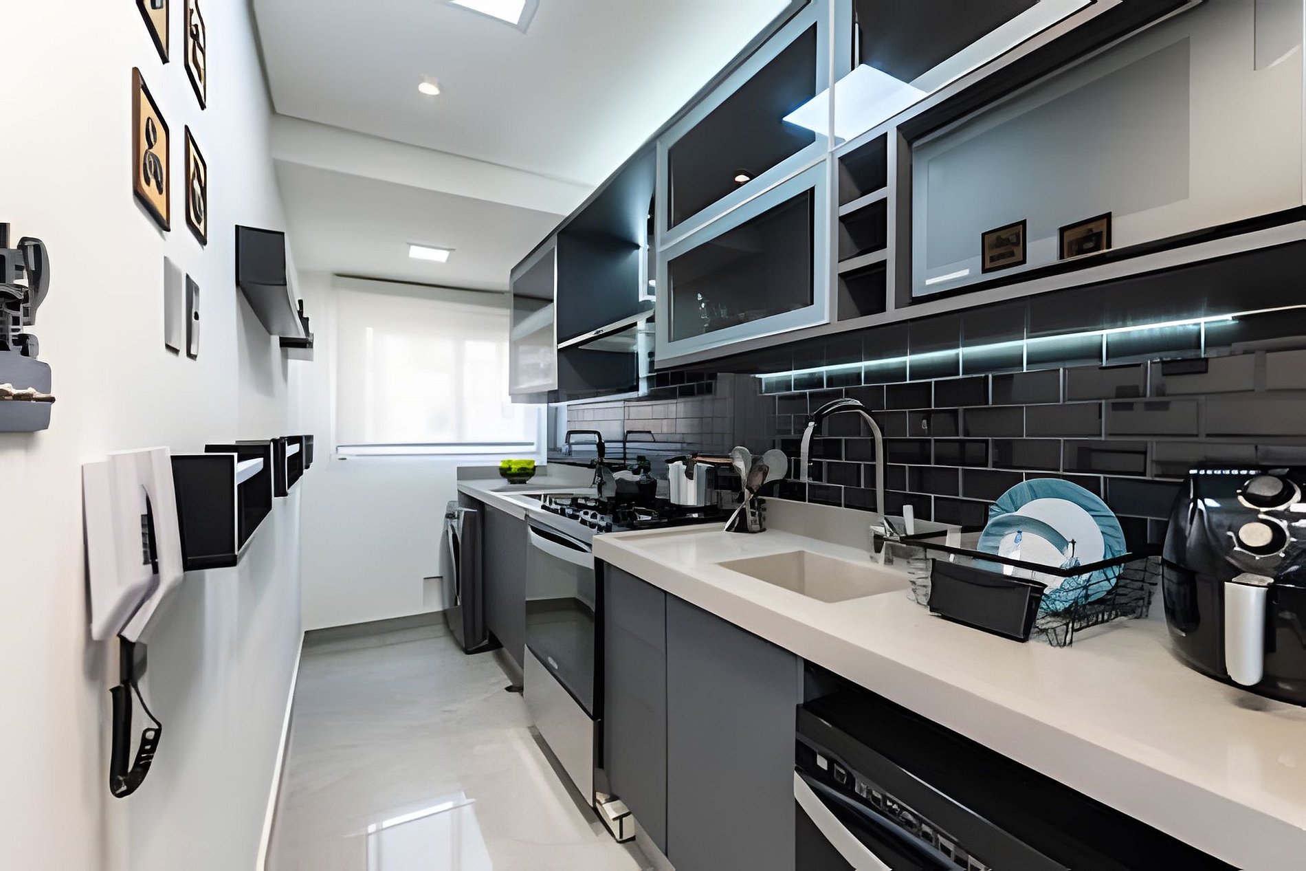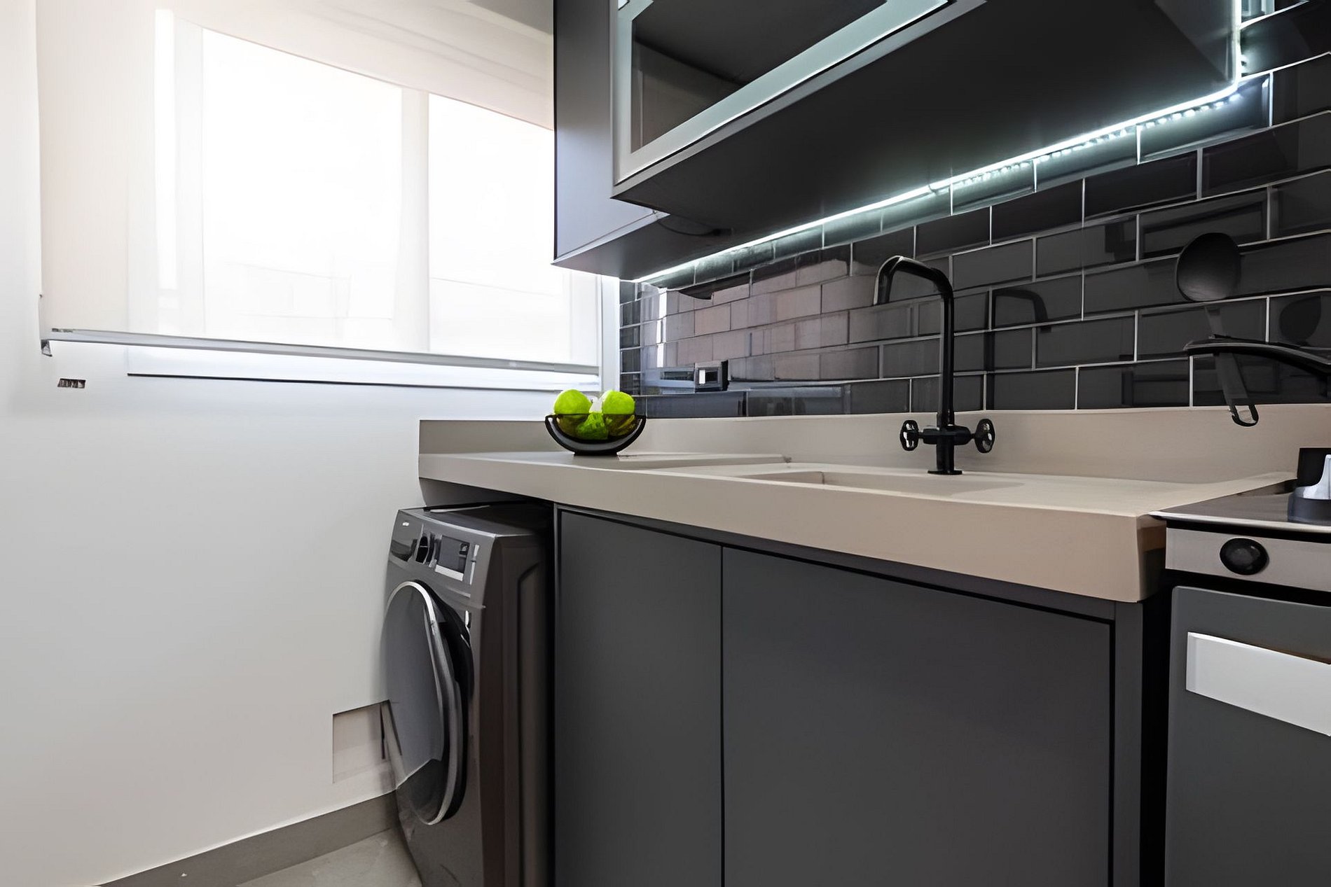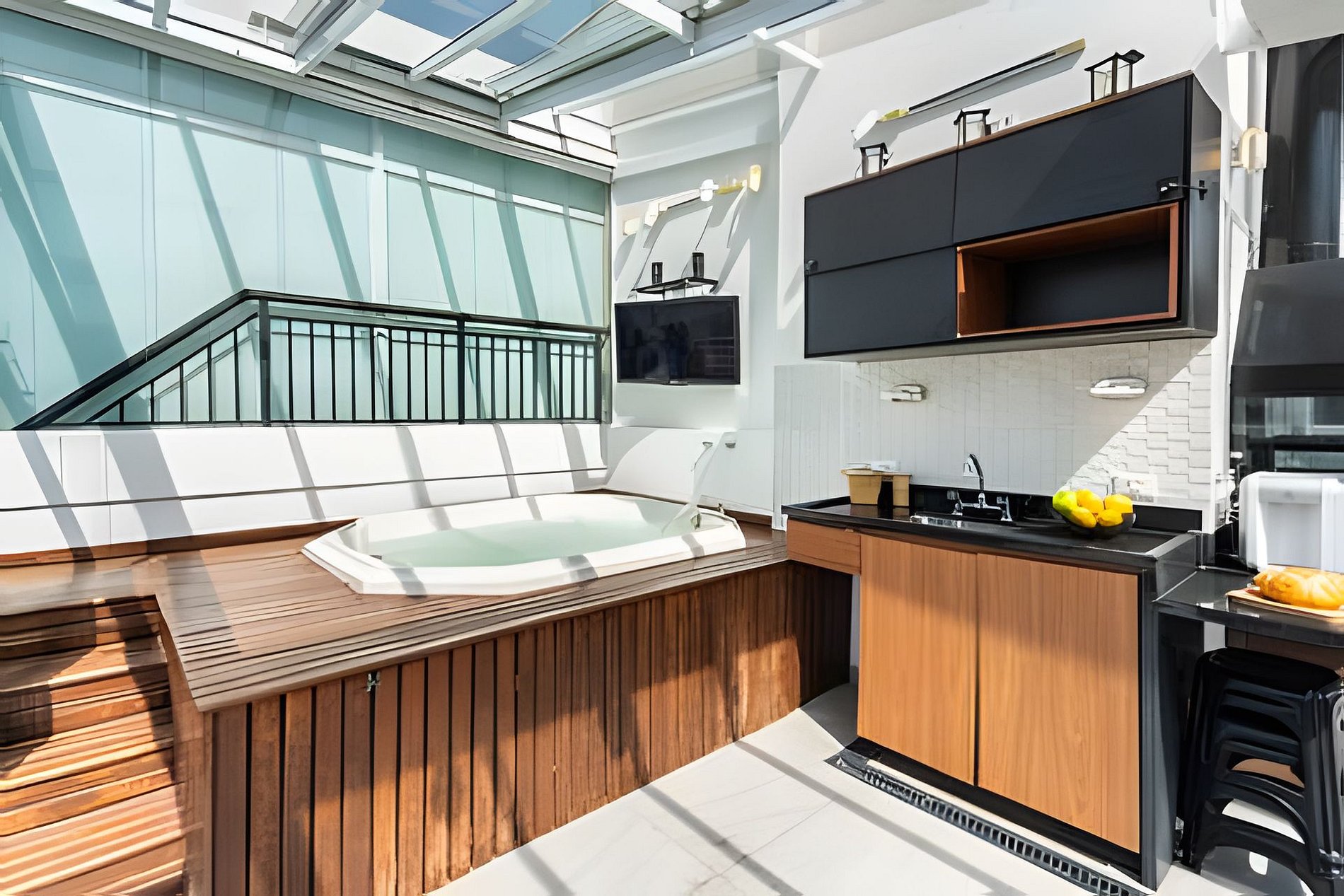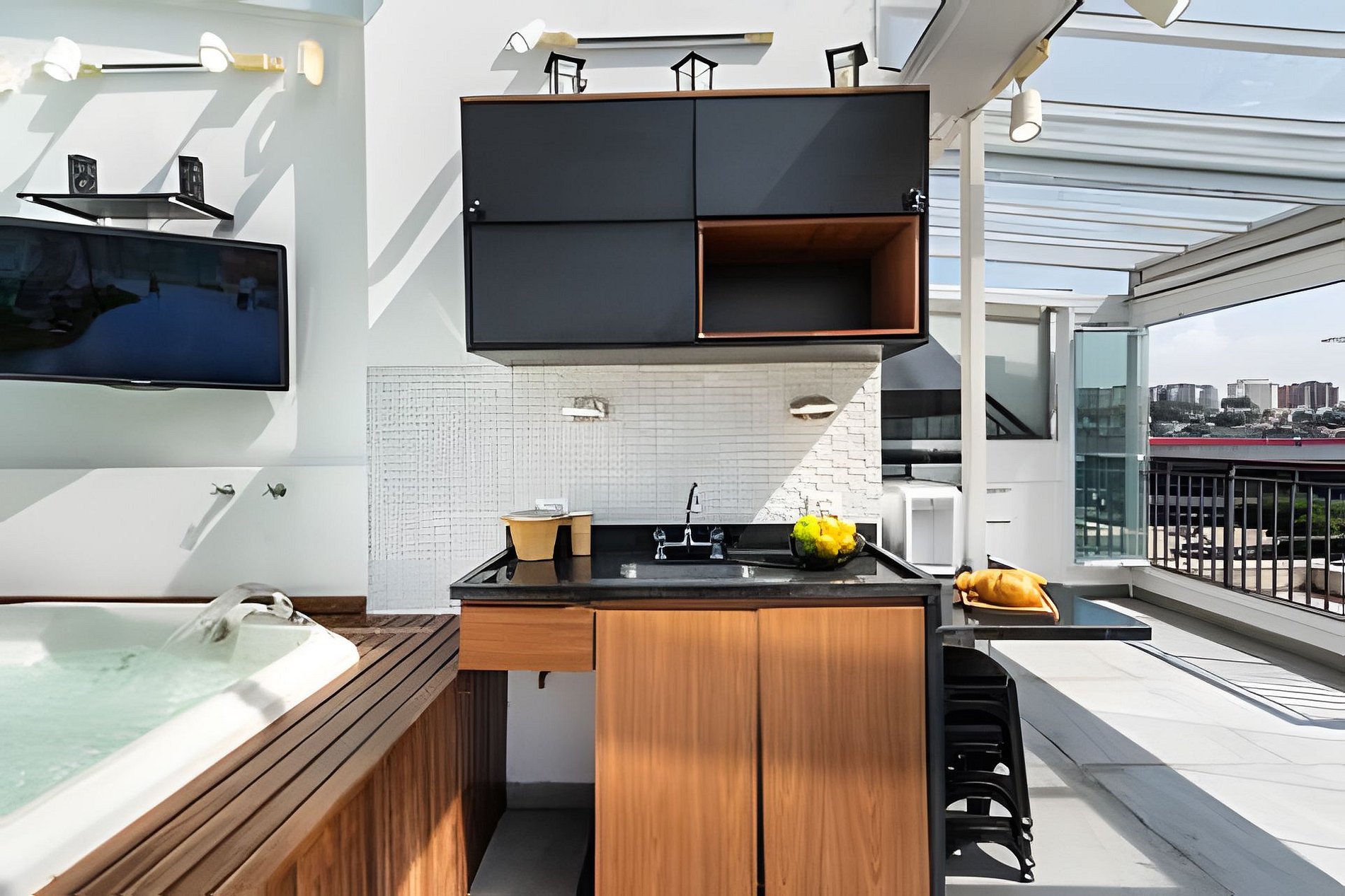 *Cozinha Completa: Equipamentos de última geração, incluindo máquina de lavar louças, cooktop, forno, exaustor, air-fryer, torradeira, liquidificador, filtro de água embutido na própria geladeira e todos os utensílios necessários.