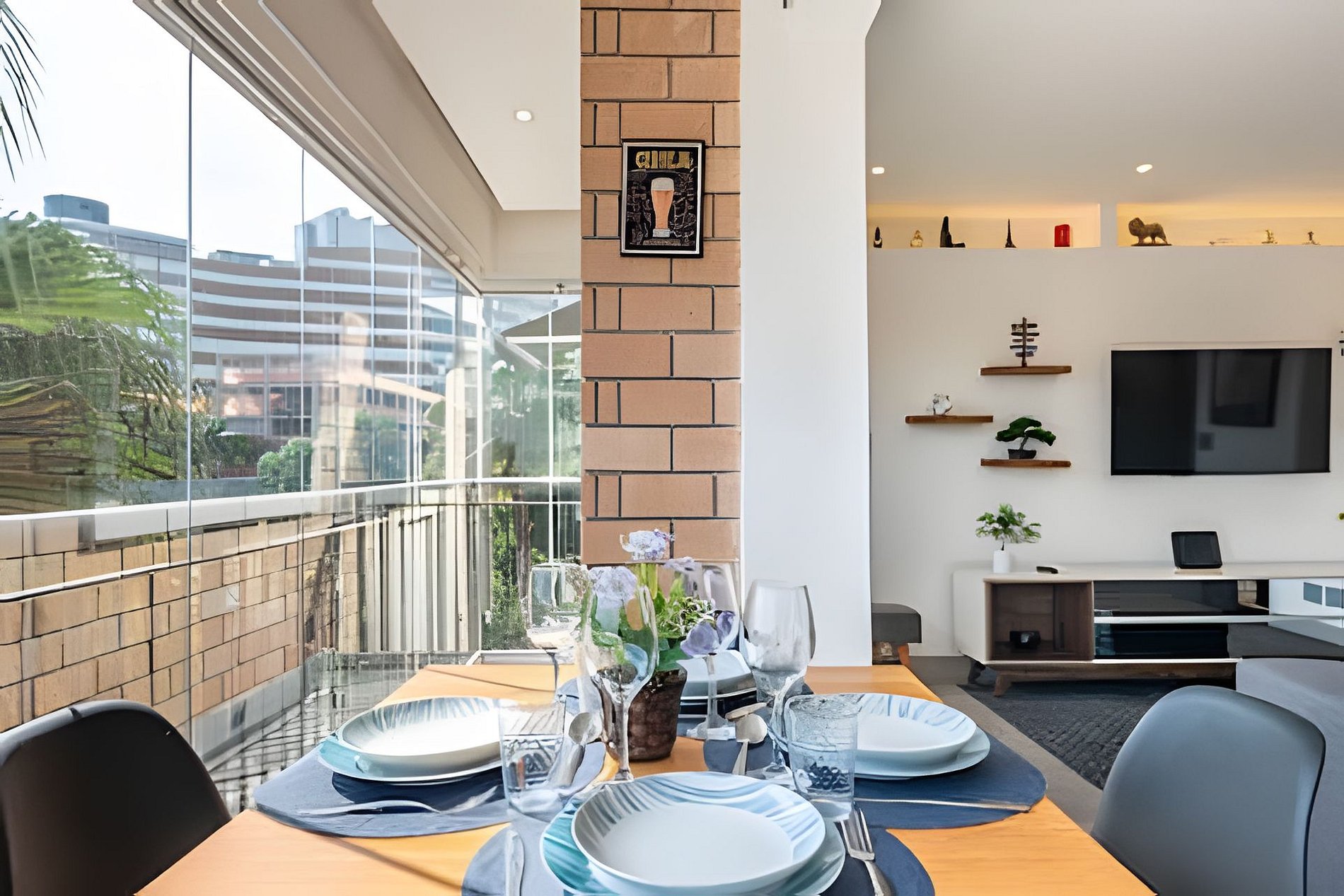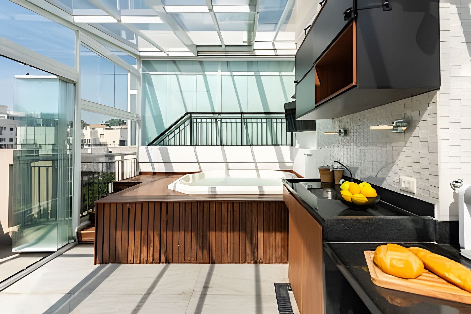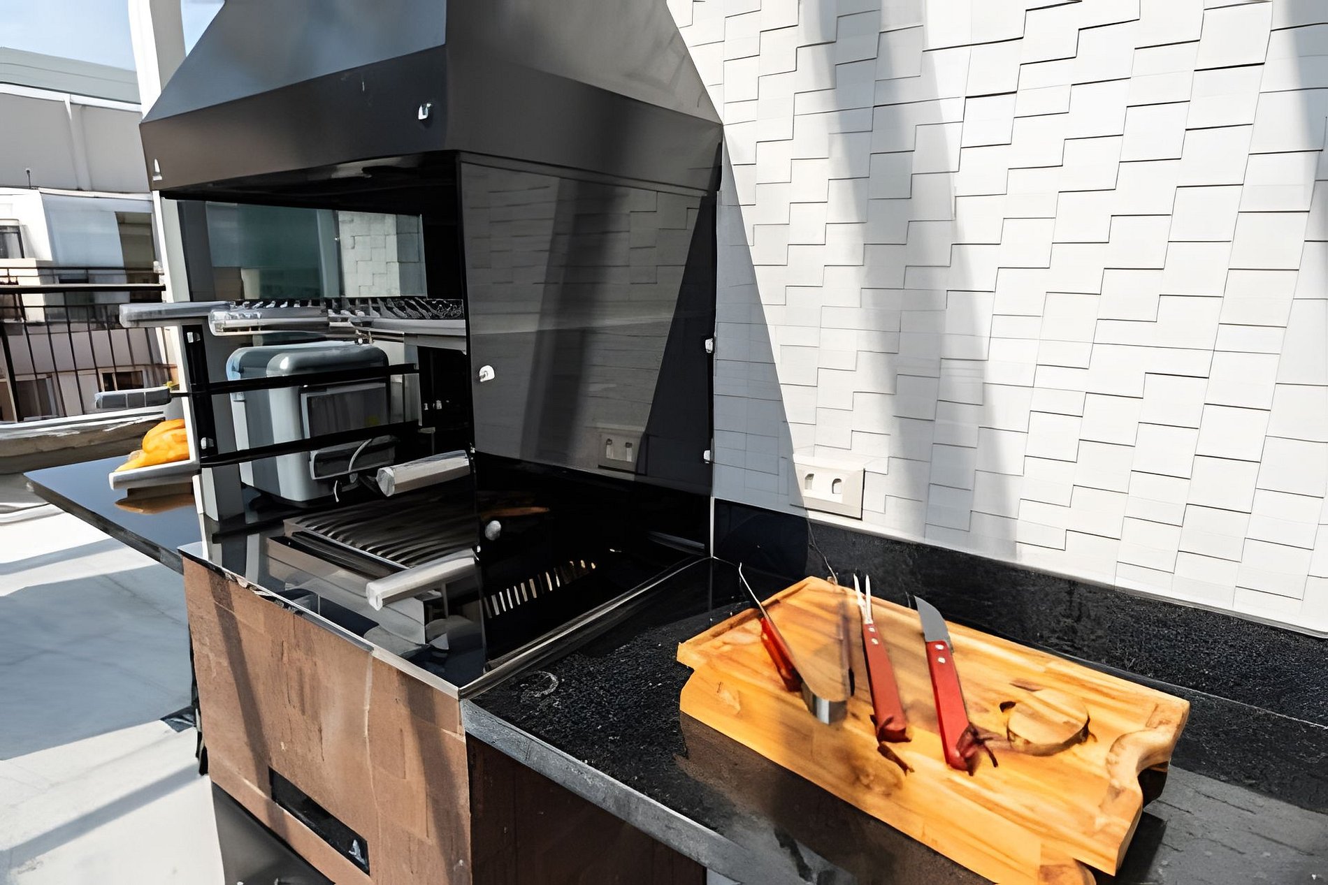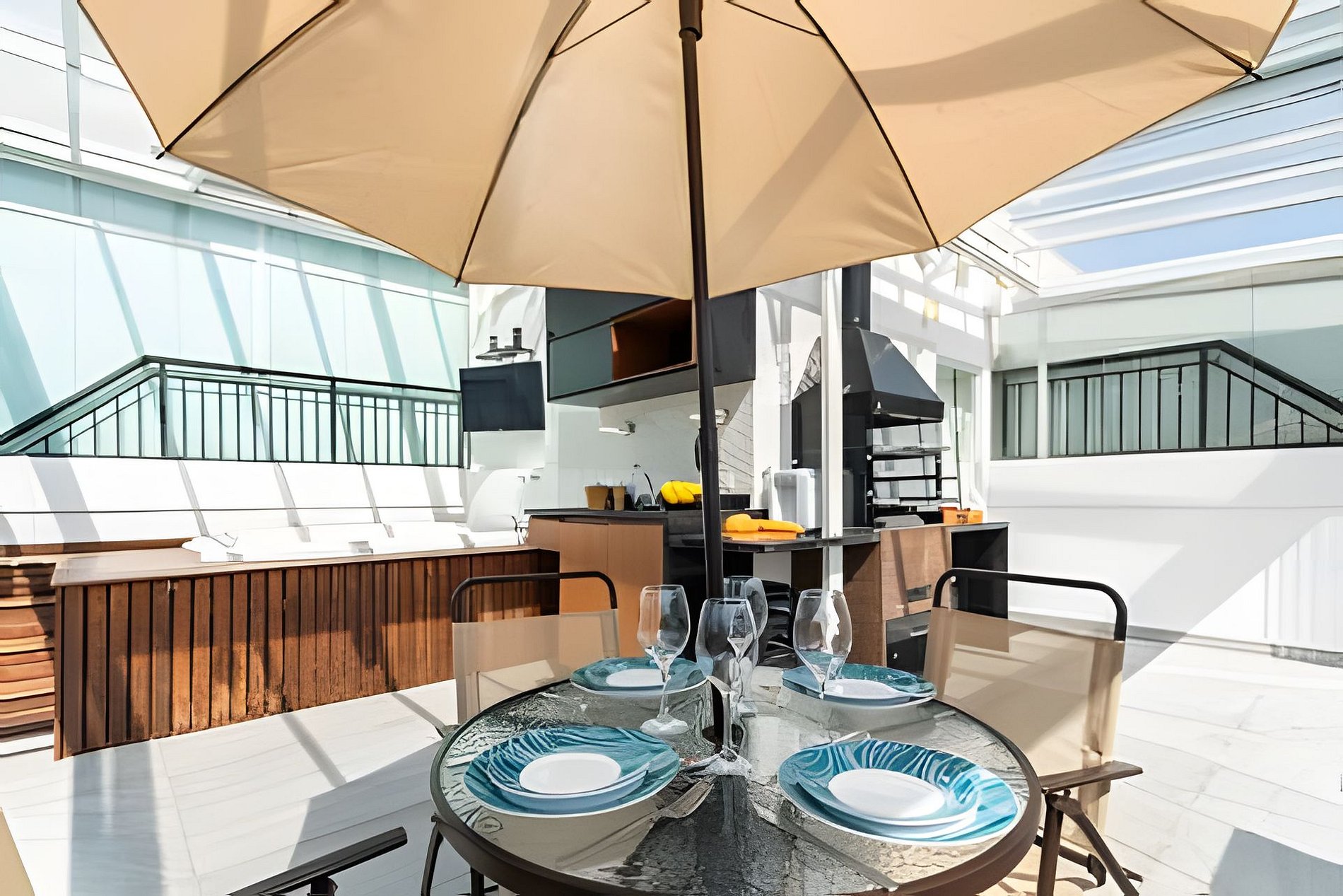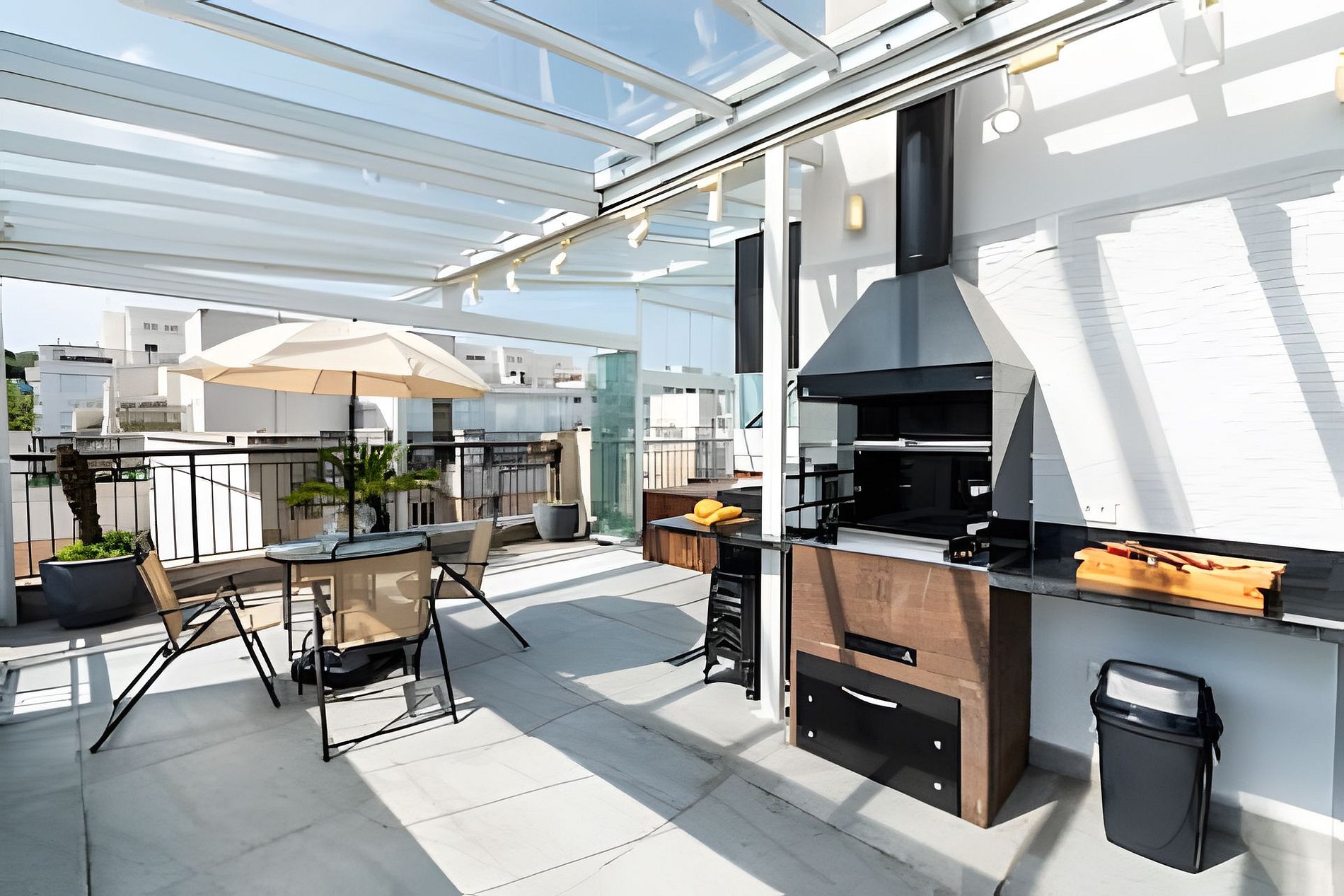 *Cozinha Completa: Equipamentos de última geração, incluindo máquina de lavar louças, cooktop, forno, exaustor, air-fryer, torradeira, liquidificador, filtro de água embutido na própria geladeira e todos os utensílios necessários.