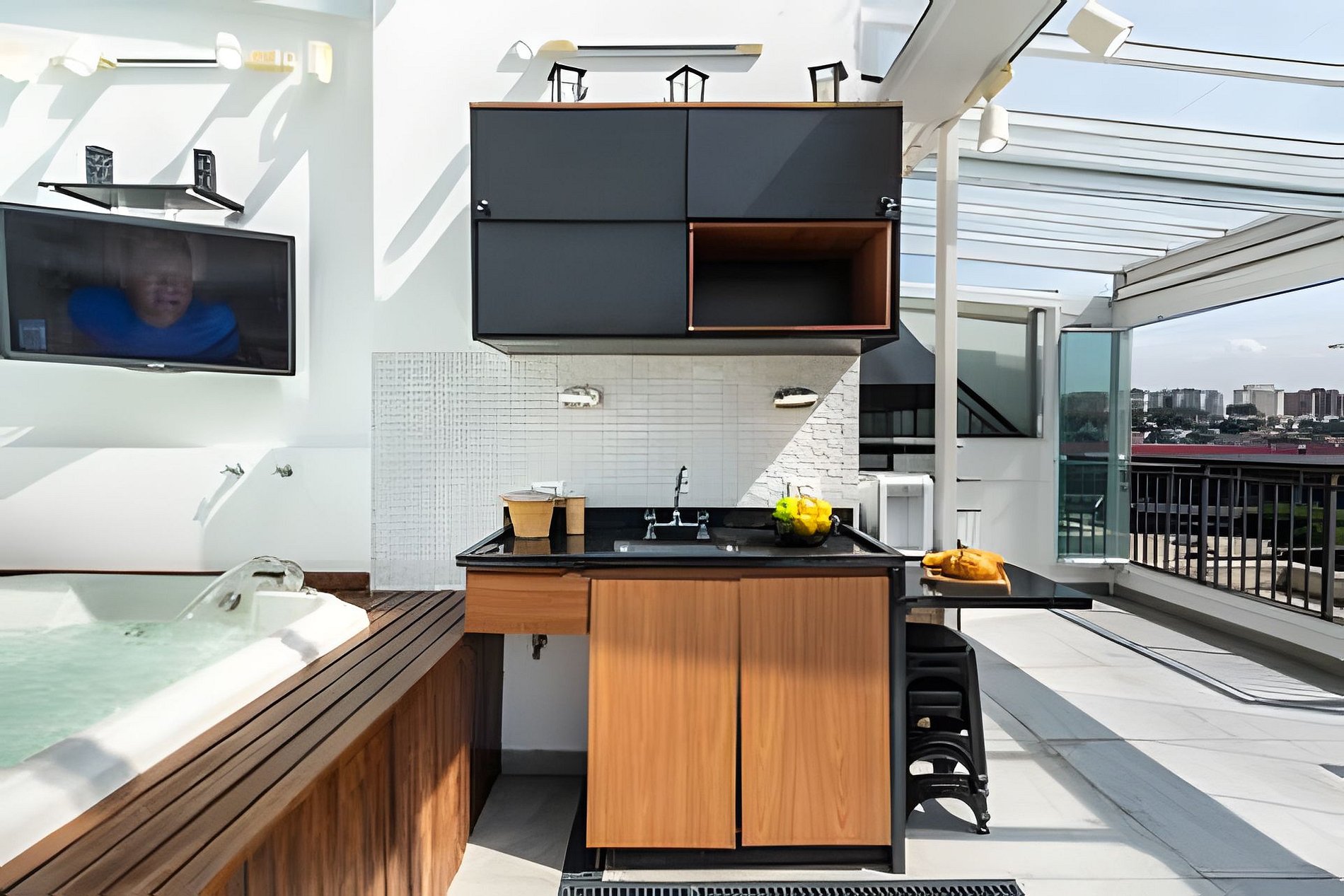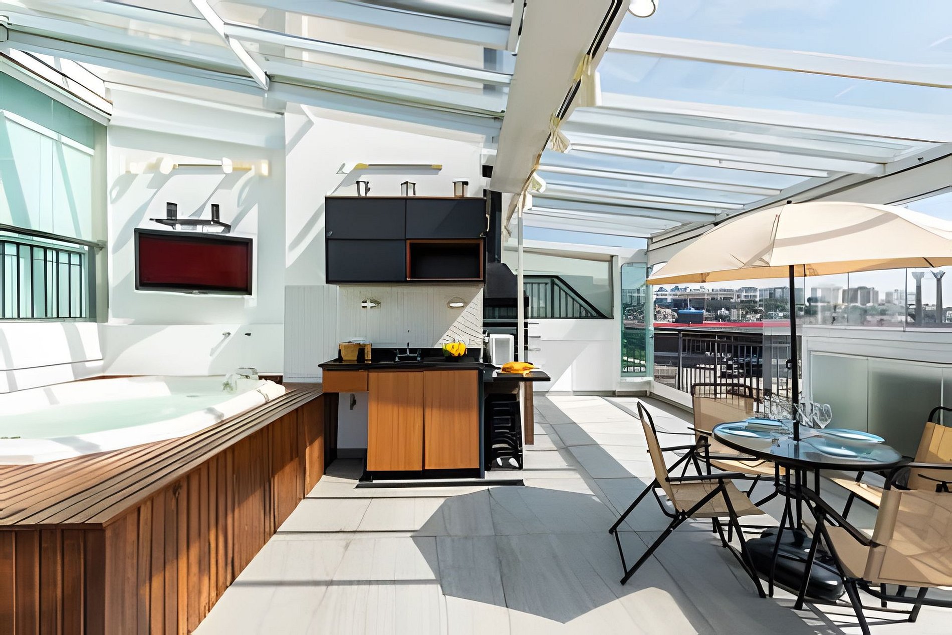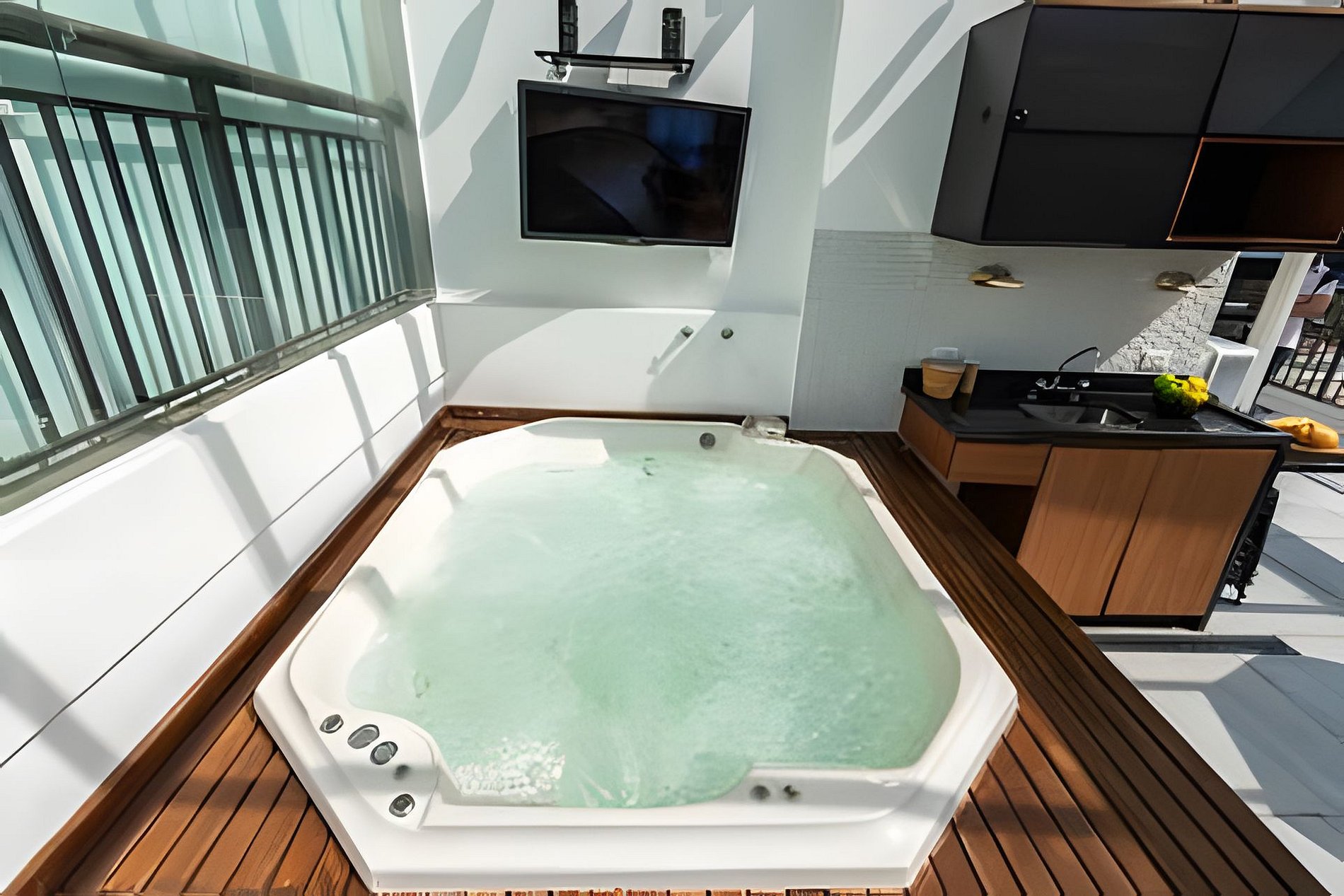 *Espaço gourmet: Com churrasqueira, jacuzzi, deck para banho de sol.