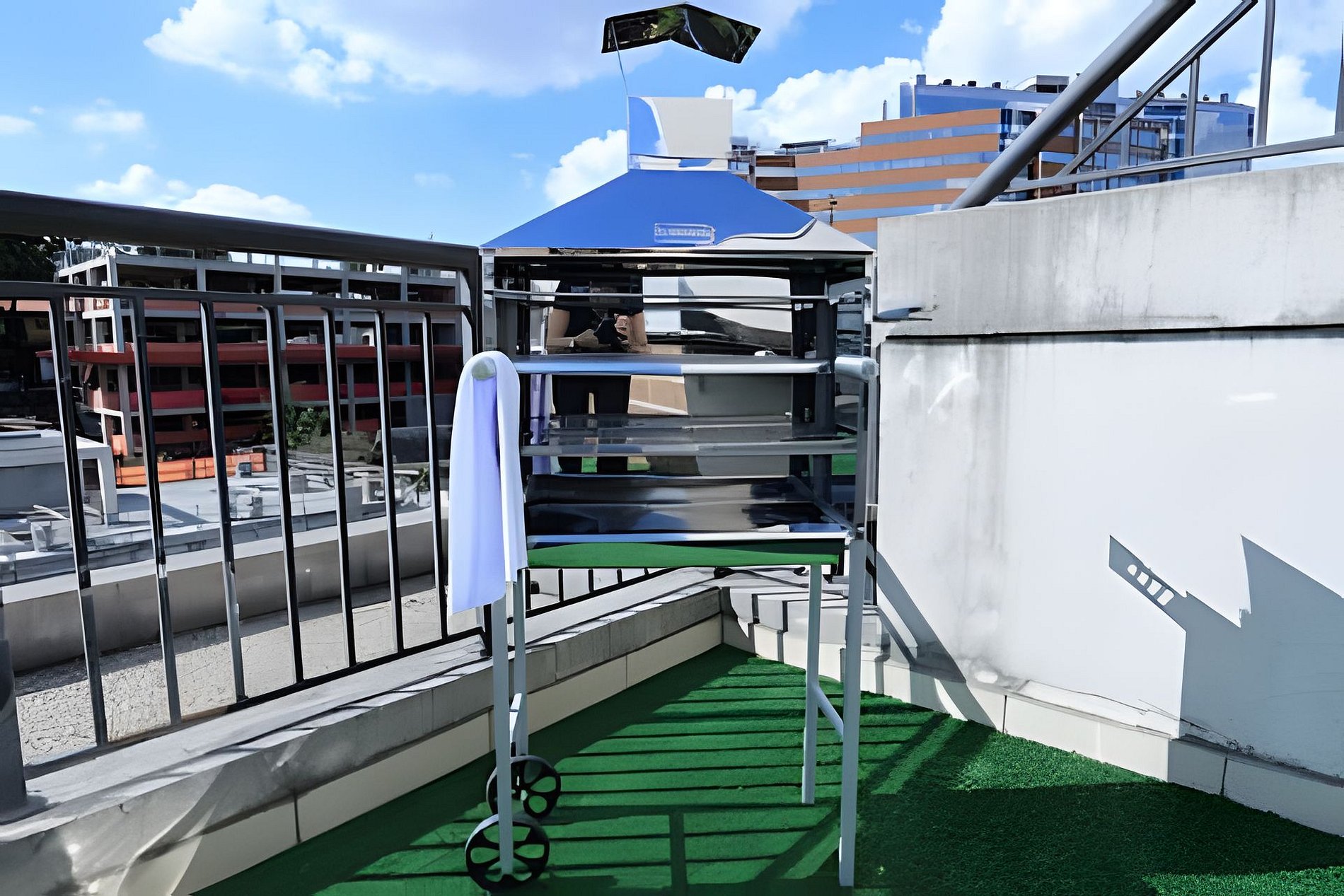 * Área de Lazer Privativa: Espaço gourmet com churrasqueira portátil, jacuzzi, espreguiçadeiras para banho de sol e ampla mesa com ombrelone para aproveitar dias ensolarados.