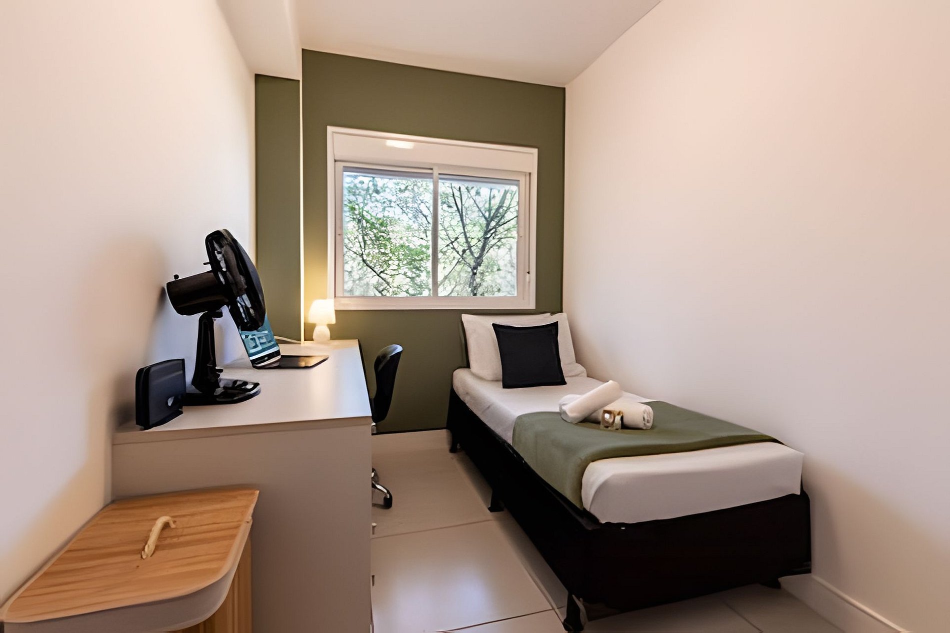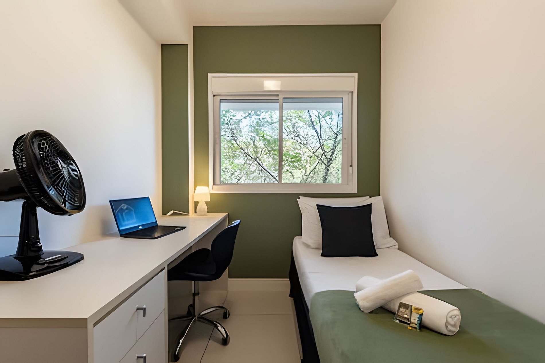* Espaços de Trabalho: Um local dedicado ao home office, localizado no quarto.