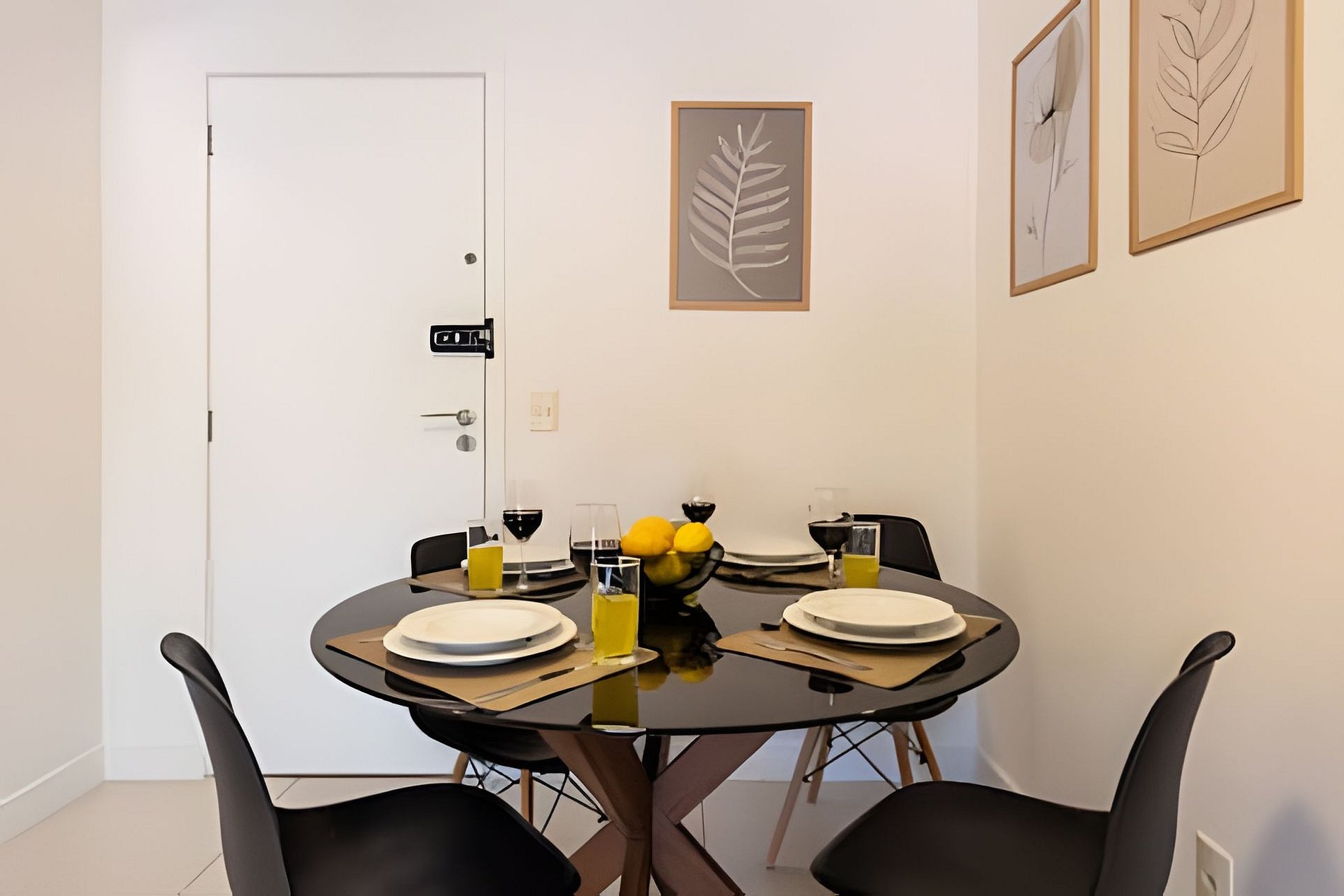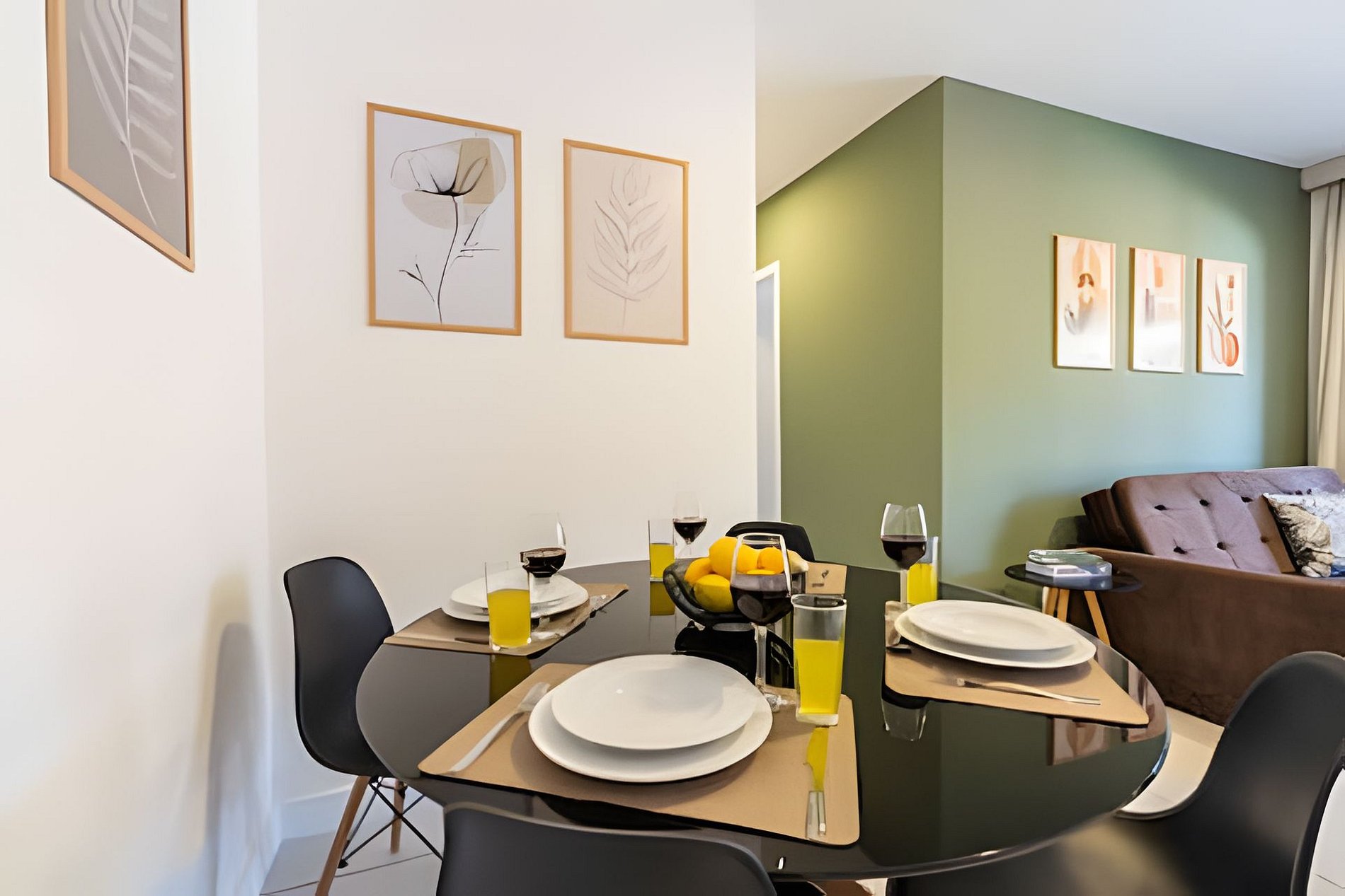 * Sala de Jantar: Charmosa e funcional, com uma mesa redonda que acomoda quatro cadeiras.