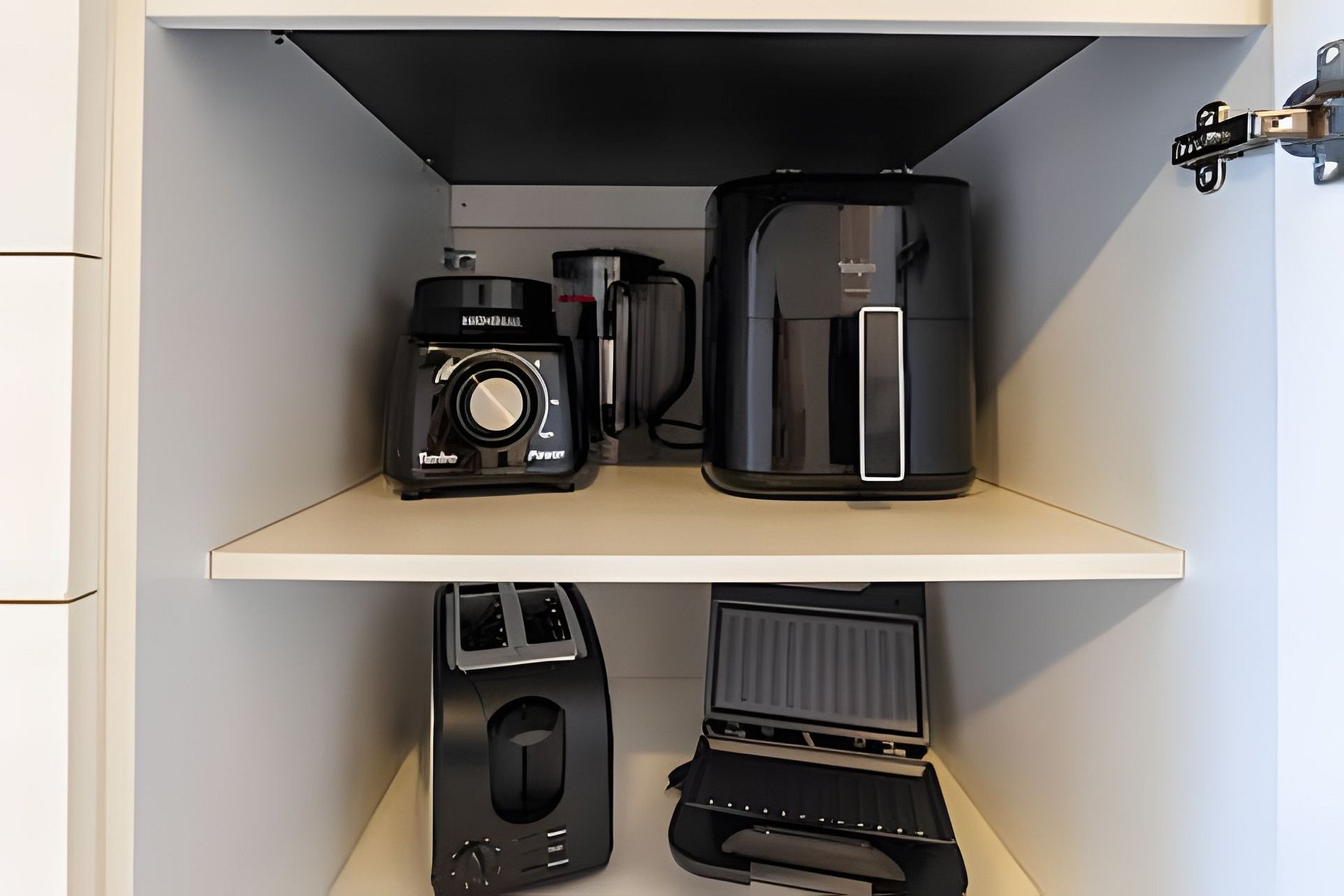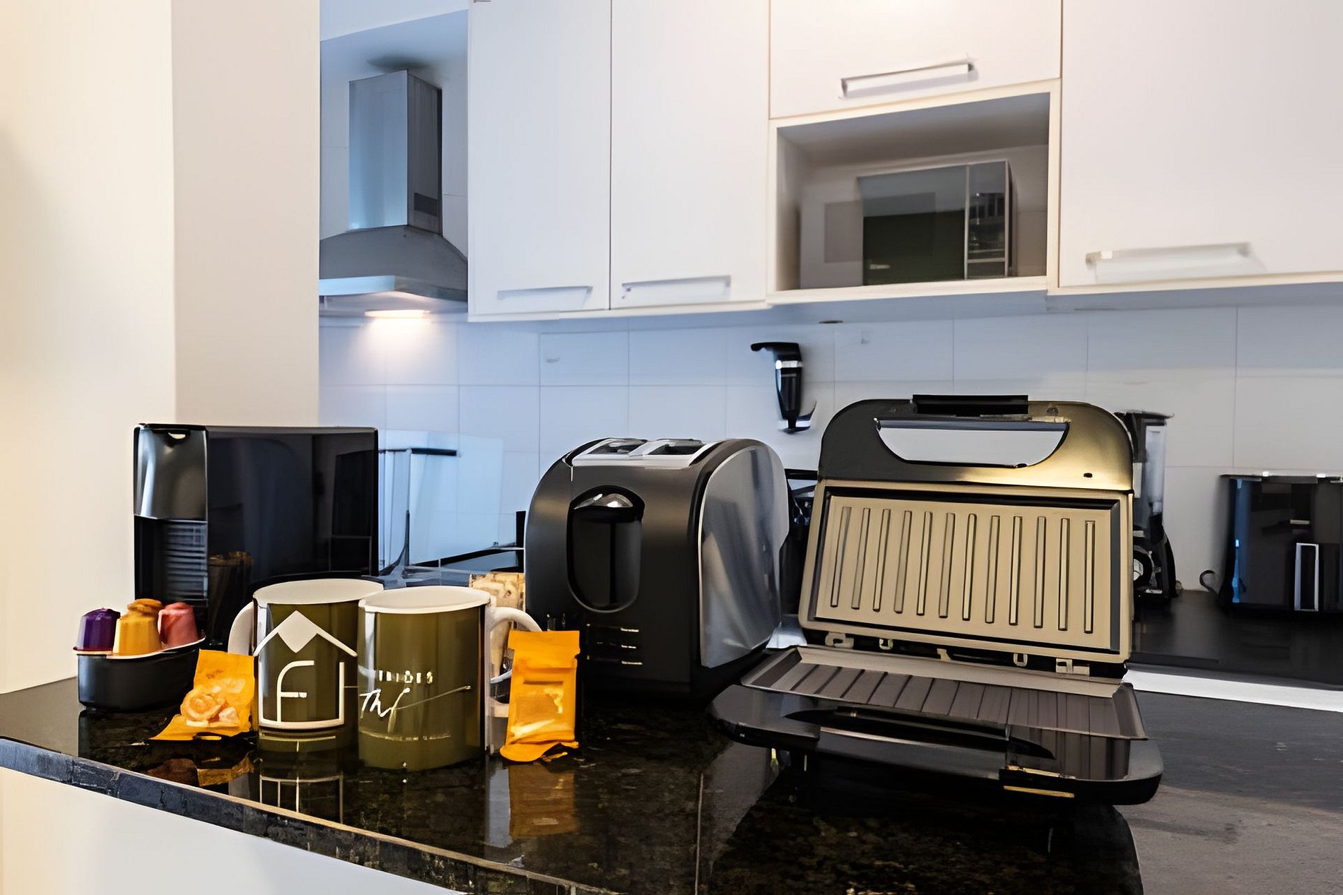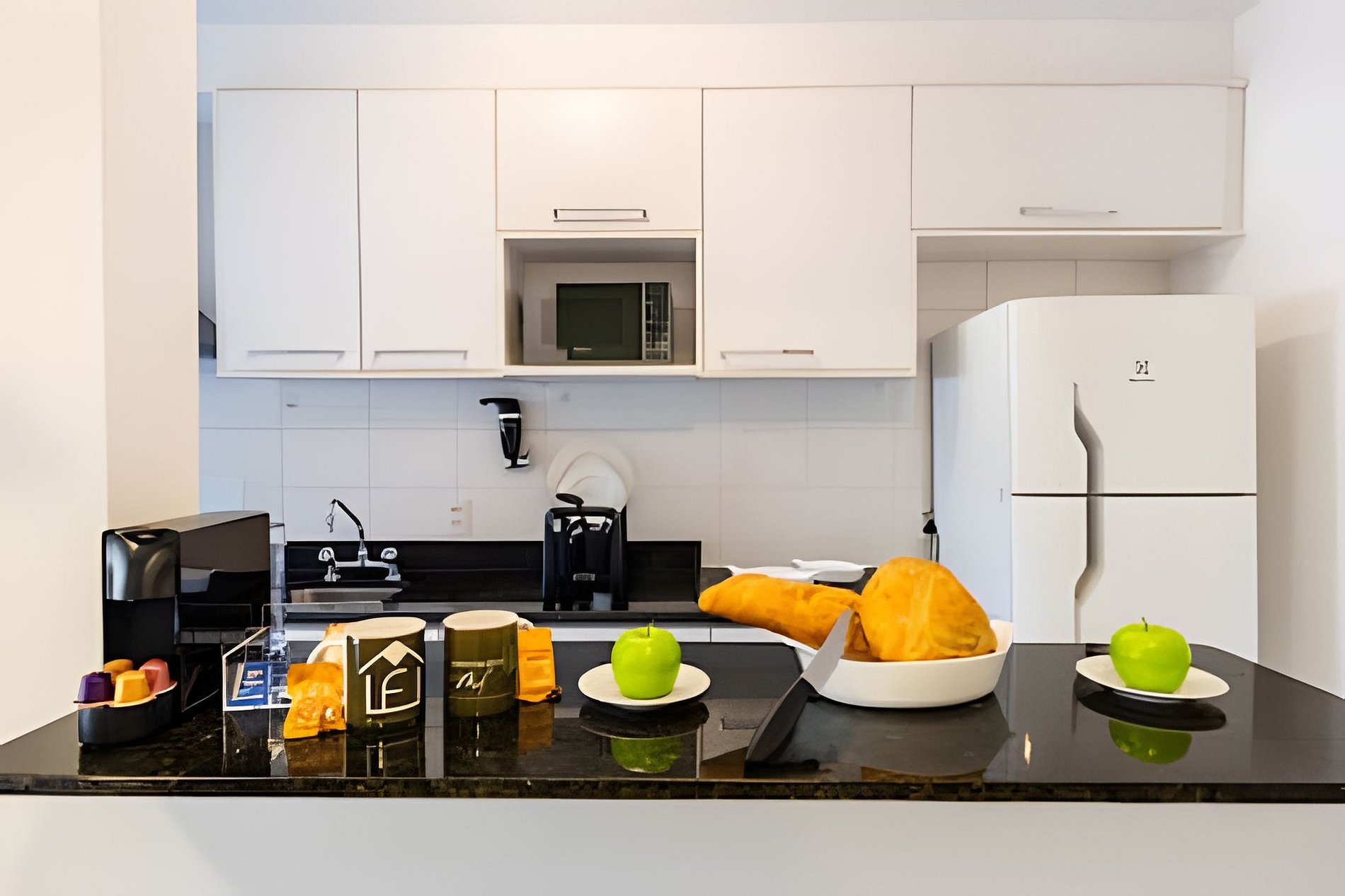 * Cozinha Completa: Com eletrodomésticos novos e modernos (fogão, forno, exaustor, micro-ondas, cafeteira Nespresso, liquidificador, sanduicheira, torradeira, filtro de água) e todos os utensílios necessários para preparar suas refeições favoritas.