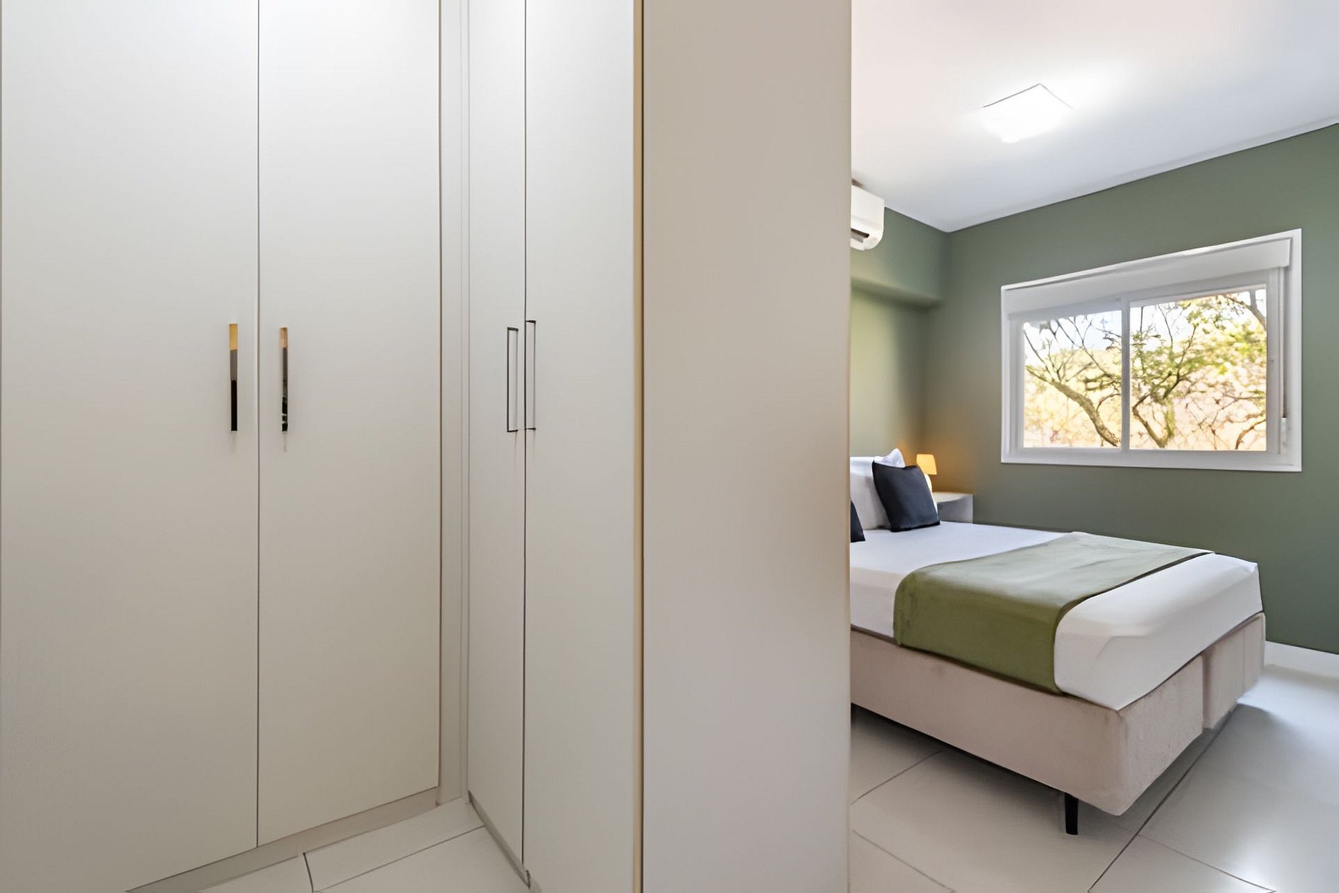 * Suíte Principal: Quarto com cama queen, guarda-roupas espaçoso, chuveiro a gás, proporcionando conforto e elegância.