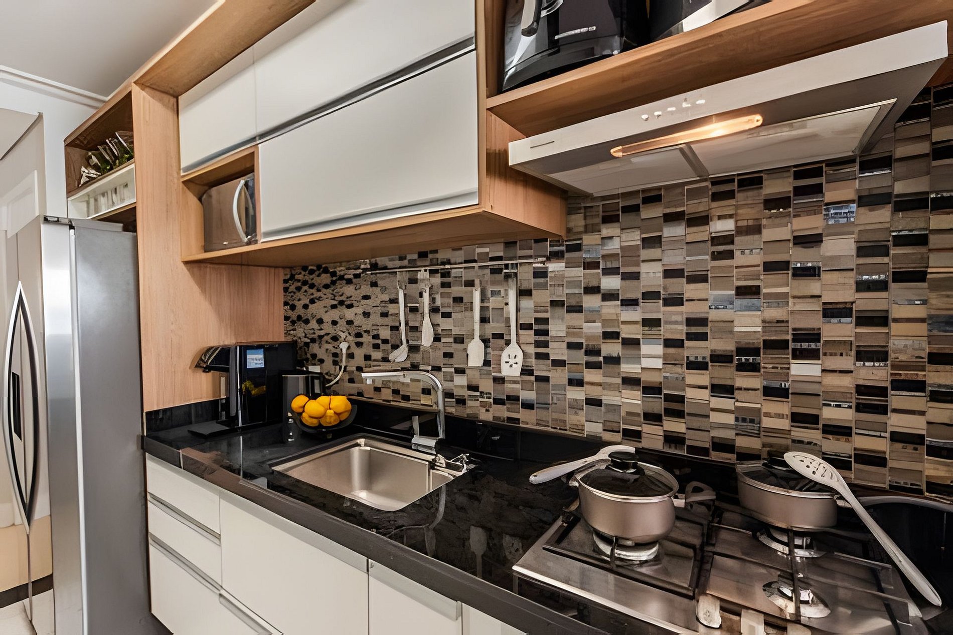*Cozinha Completa: Equipada com eletrodomésticos de última geração (fogão, forno, micro-ondas, air fryer, cafeteira Nespresso, liquidificador, sanduicheira, torradeira, exaustor e filtro de água), além de todos os utensílios necessários para preparar suas refeições favoritas.