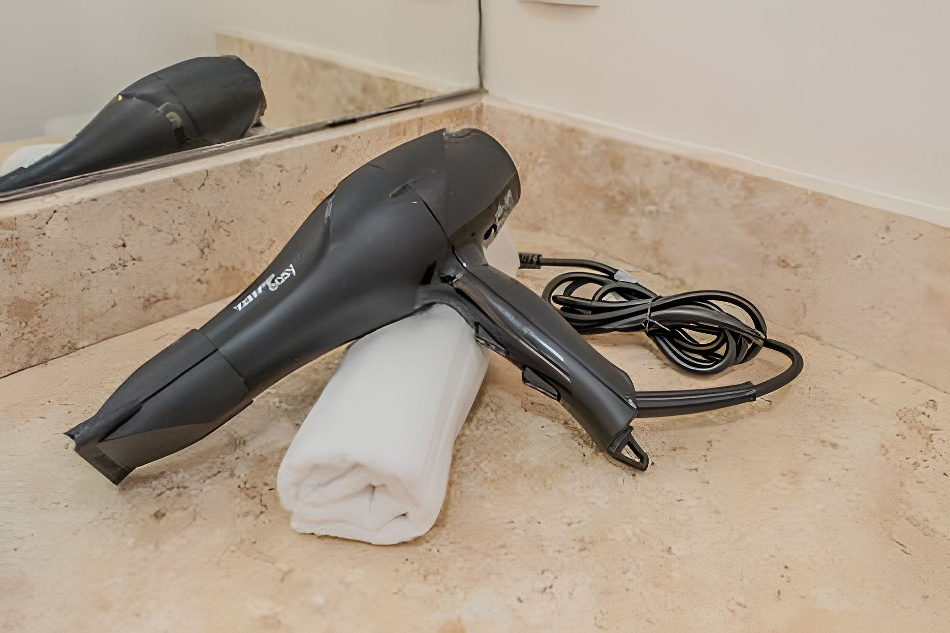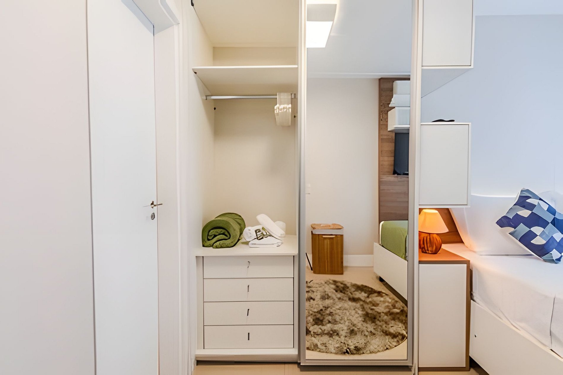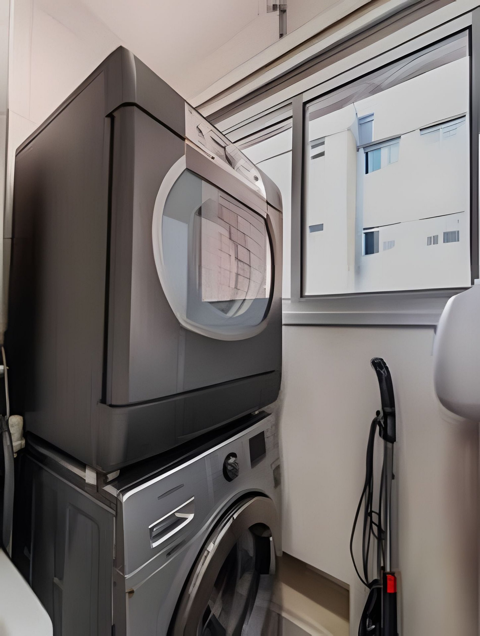 *Área de Serviço: Conta com lavadora e secadora de roupas, ferro de passar, varal de teto, cesto de roupas e lixeira, oferecendo praticidade durante toda a estadia.