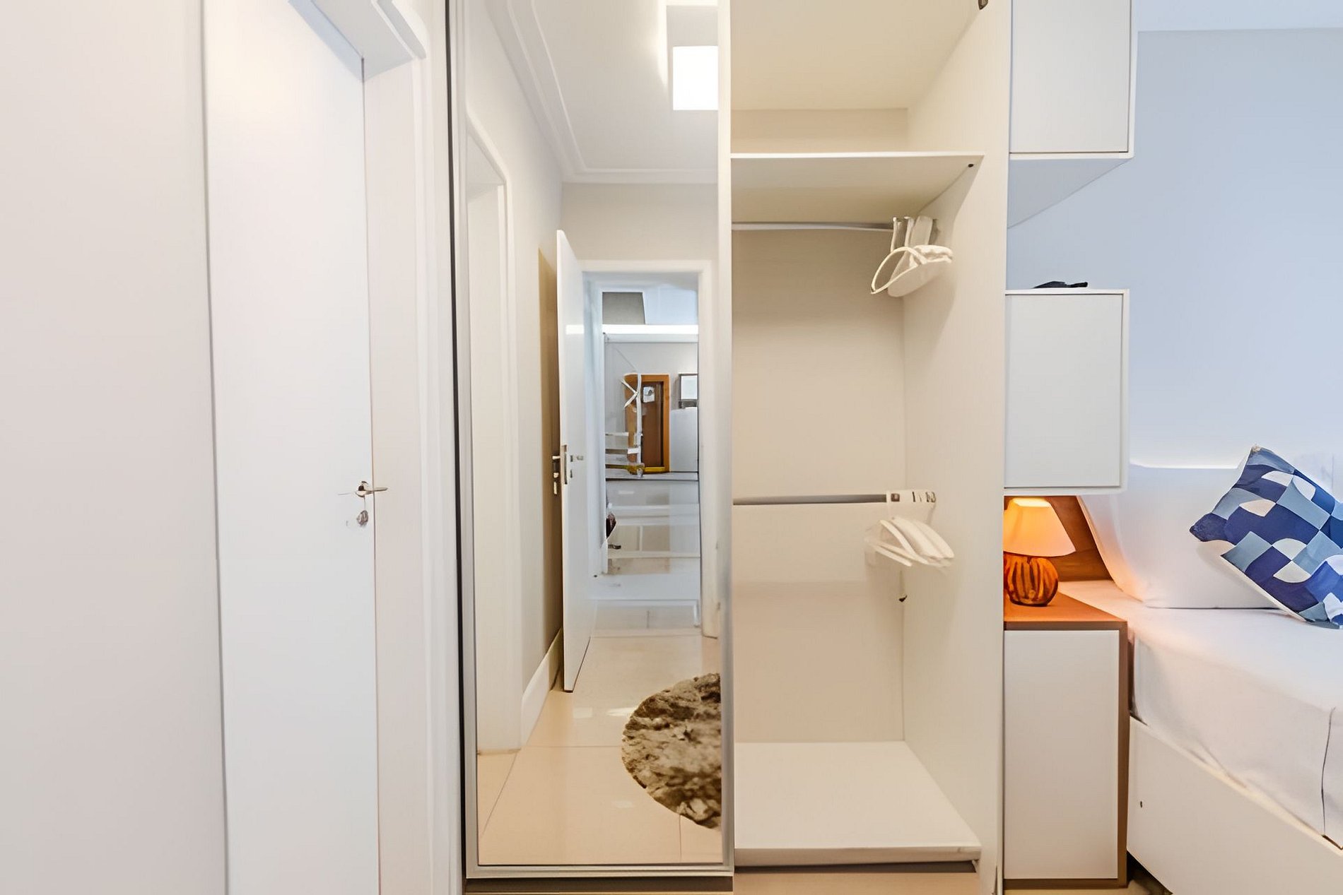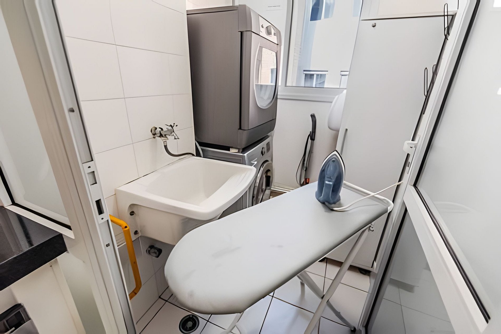 *Área de Serviço: Conta com lavadora e secadora de roupas, ferro de passar, varal de teto, cesto de roupas e lixeira, oferecendo praticidade durante toda a estadia.