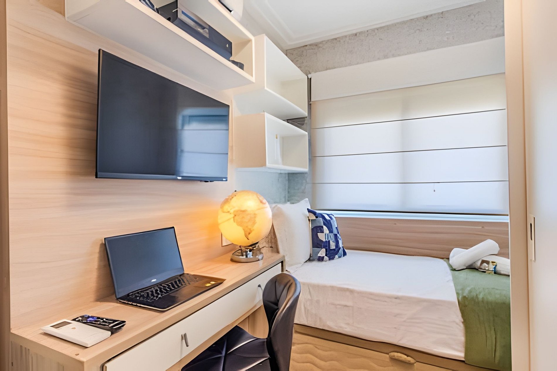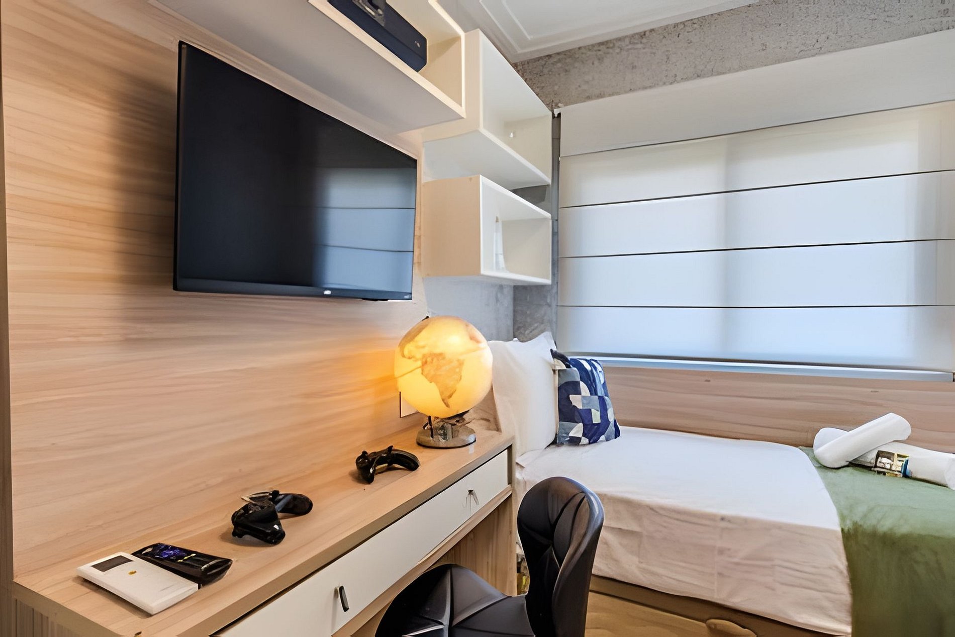 *No piso inferior: aproveite a suíte confortável, a sala equipada com sistema multimídia e Xbox, a cozinha moderna e a área de serviço completa.