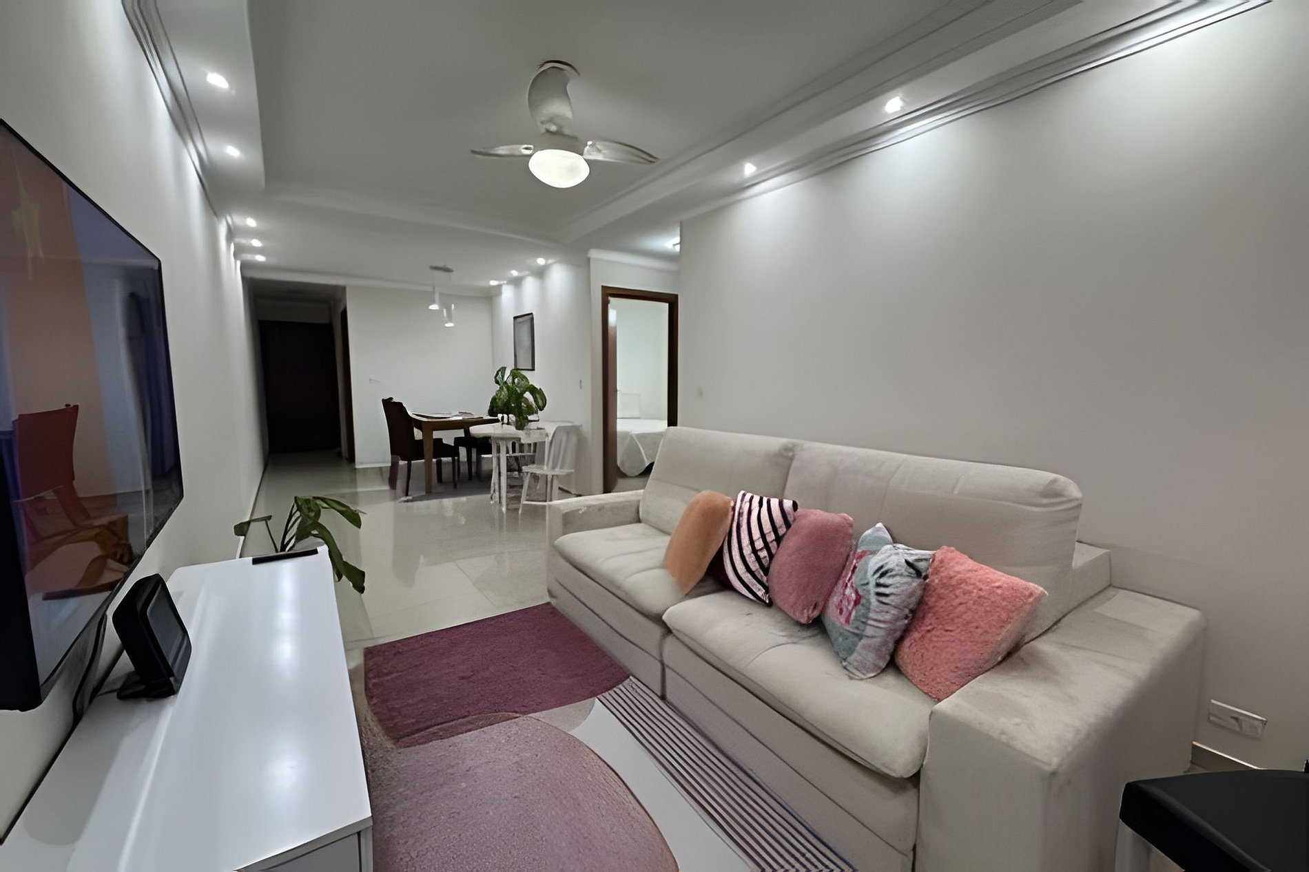 O apartamento está a uma curta distância do shopping Enseada, rodeada por uma variedade de bares, restaurantes e farmácias.