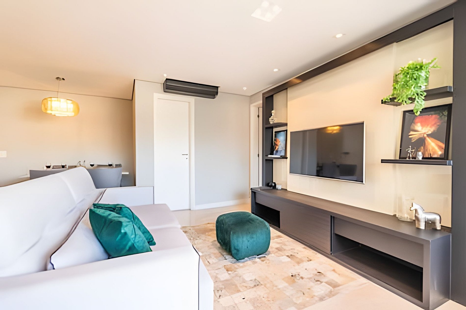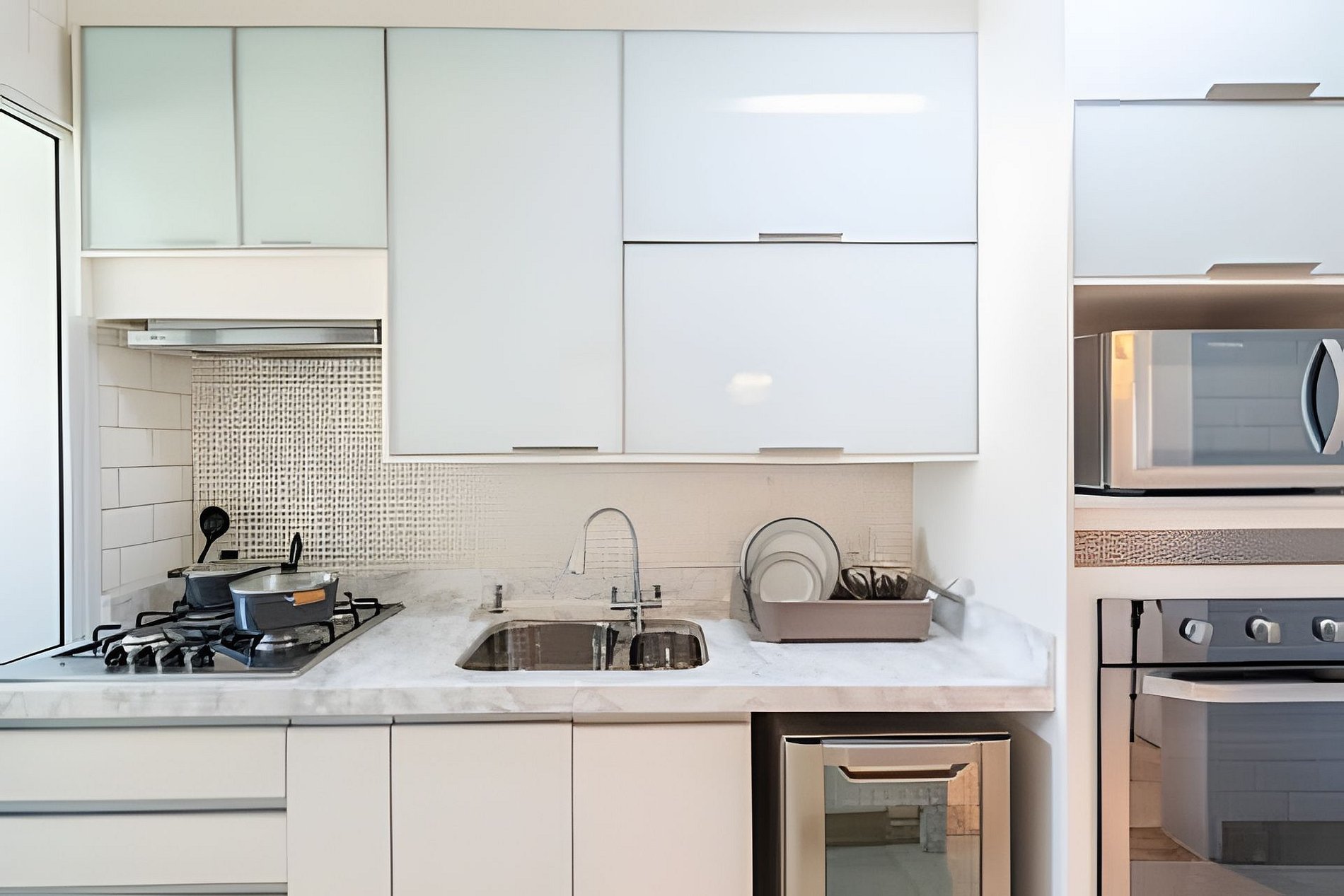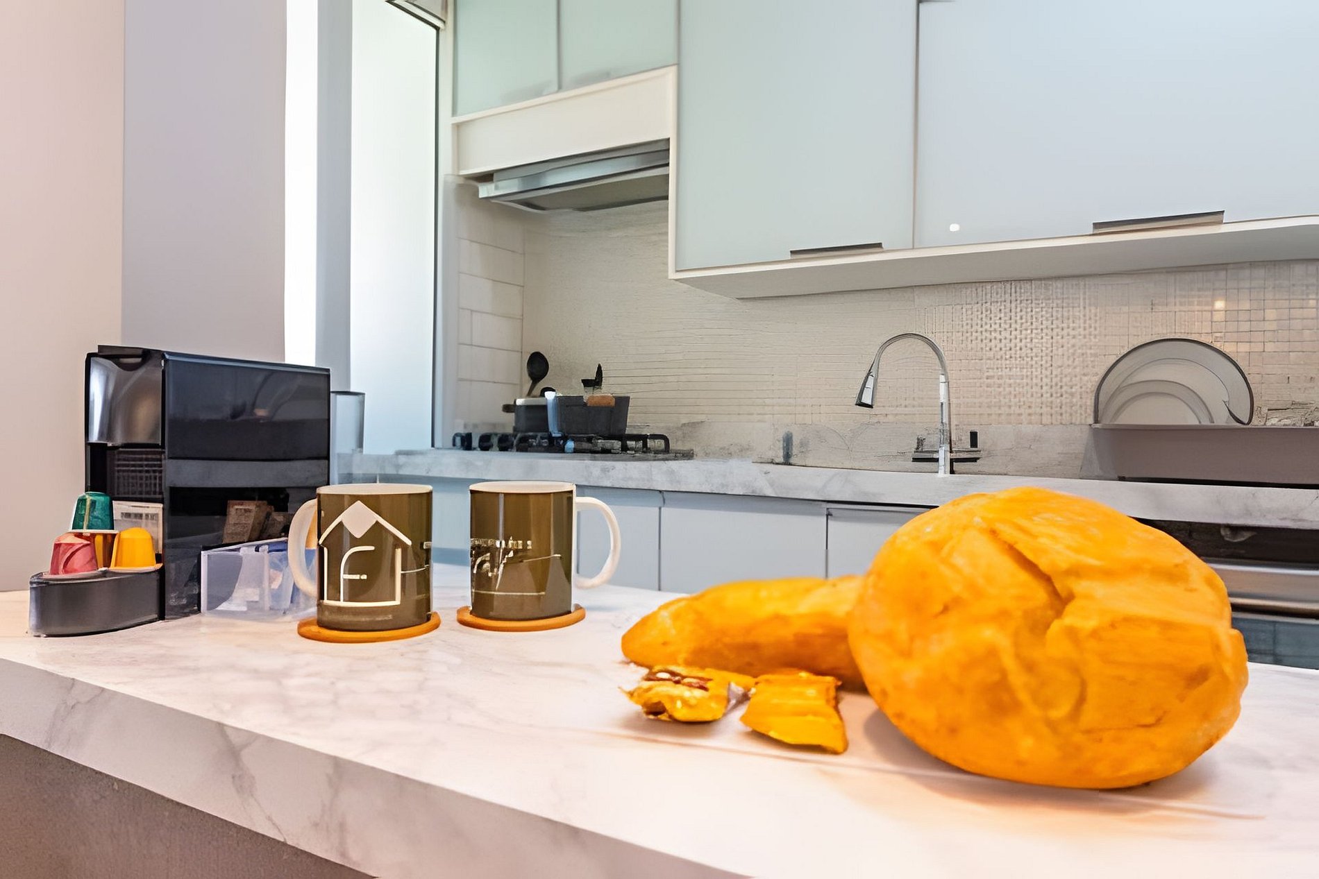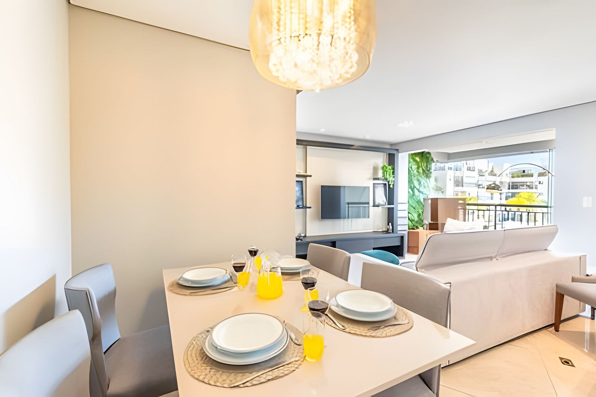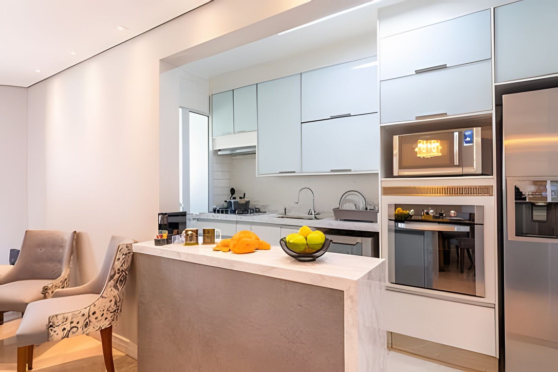 * Cozinha Completa: Equipamentos de última geração, incluindo máquina de lavar louças, fogão, forno elétrico, air-fryer, sanduicheira, torradeira, liquidificador, filtro de água e todos os utensílios necessários.