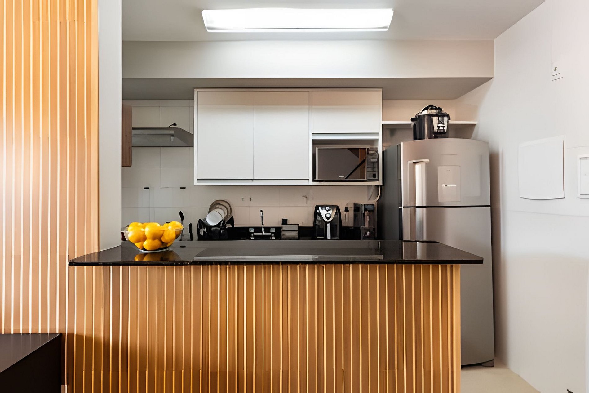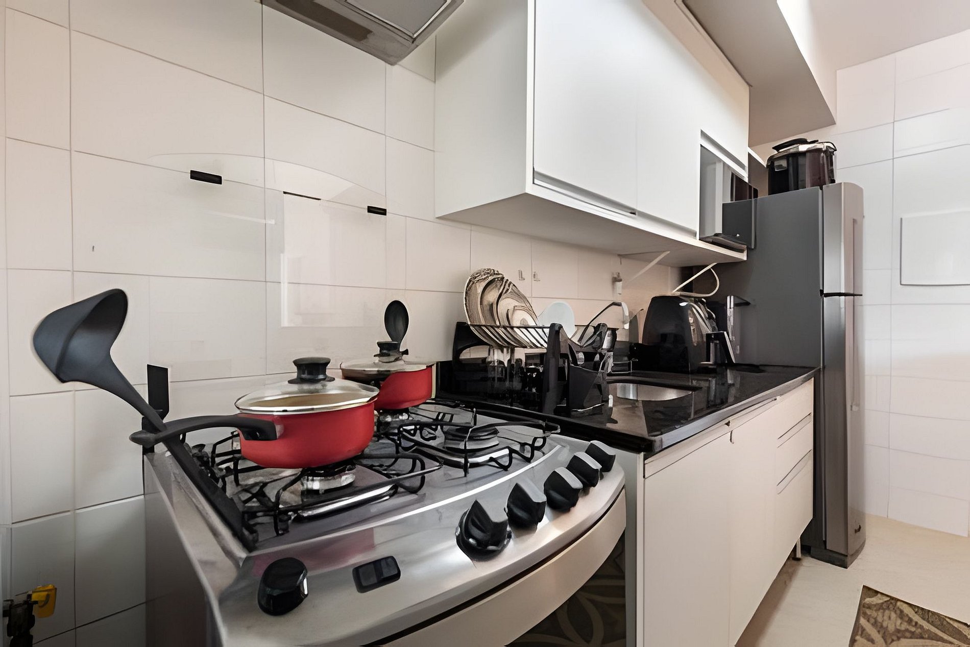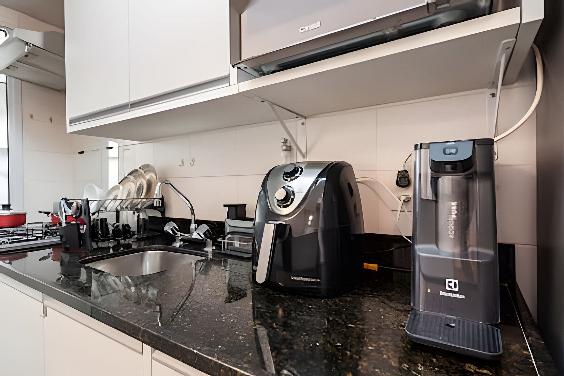 * Cozinha Completa: Equipamentos de última geração, incluindo fogão, forno, exaustor, air-fryer, torradeira, liquidificador, filtro de água e todos os utensílios necessários.