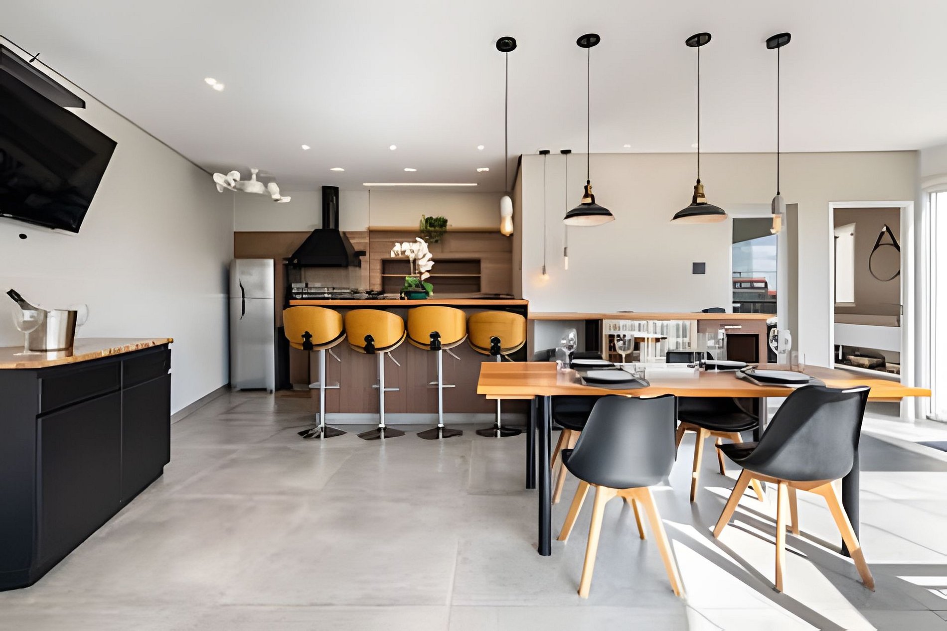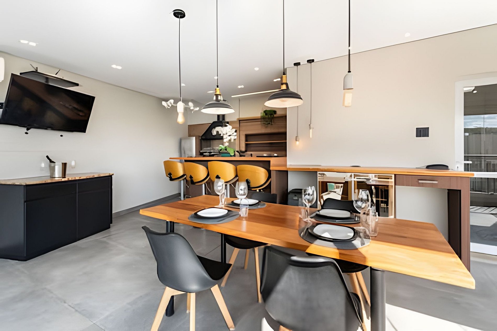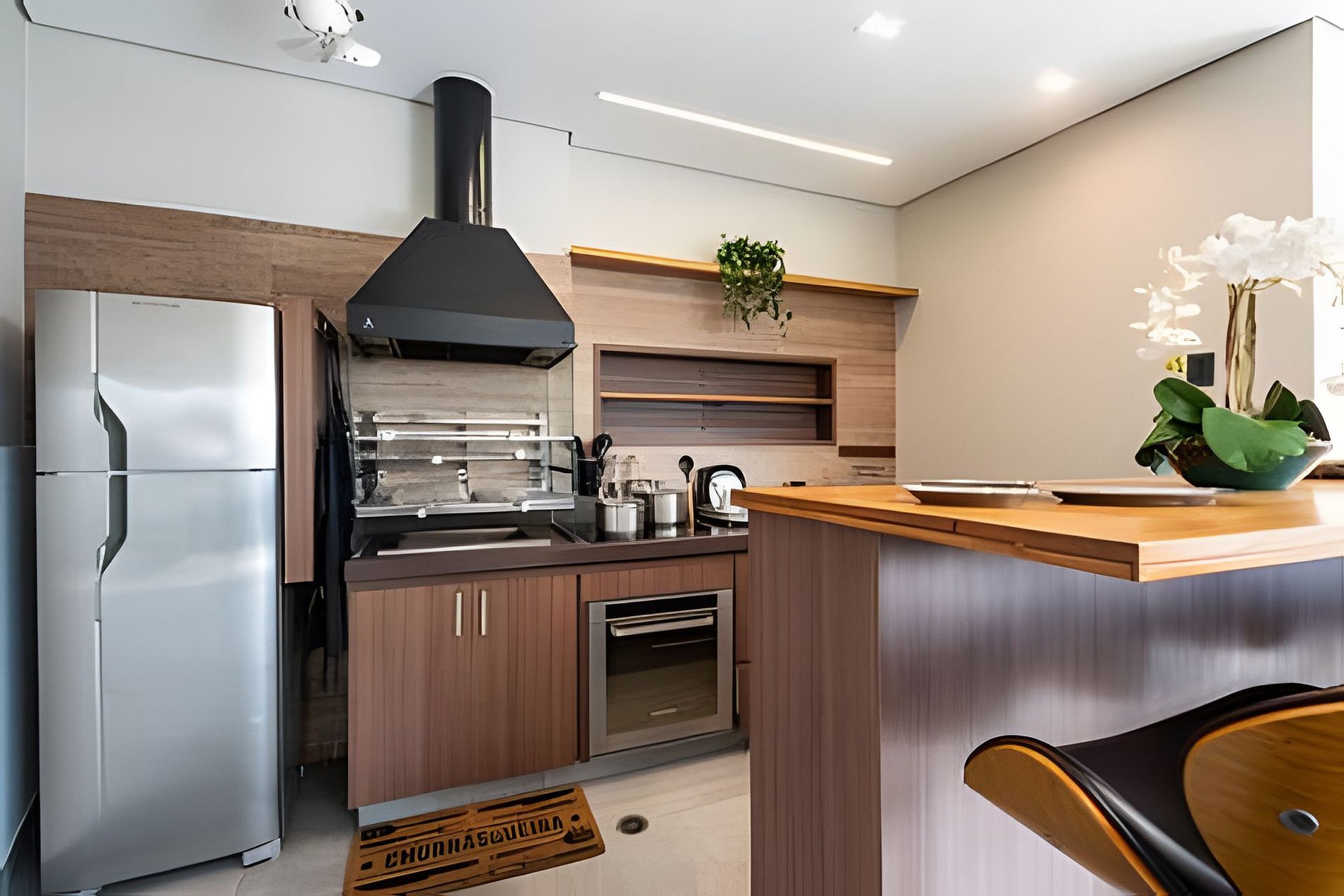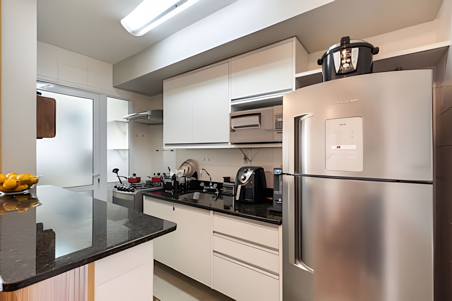 * Cozinha Completa: Equipamentos de última geração, incluindo fogão, forno, exaustor, air-fryer, torradeira, liquidificador, filtro de água e todos os utensílios necessários.