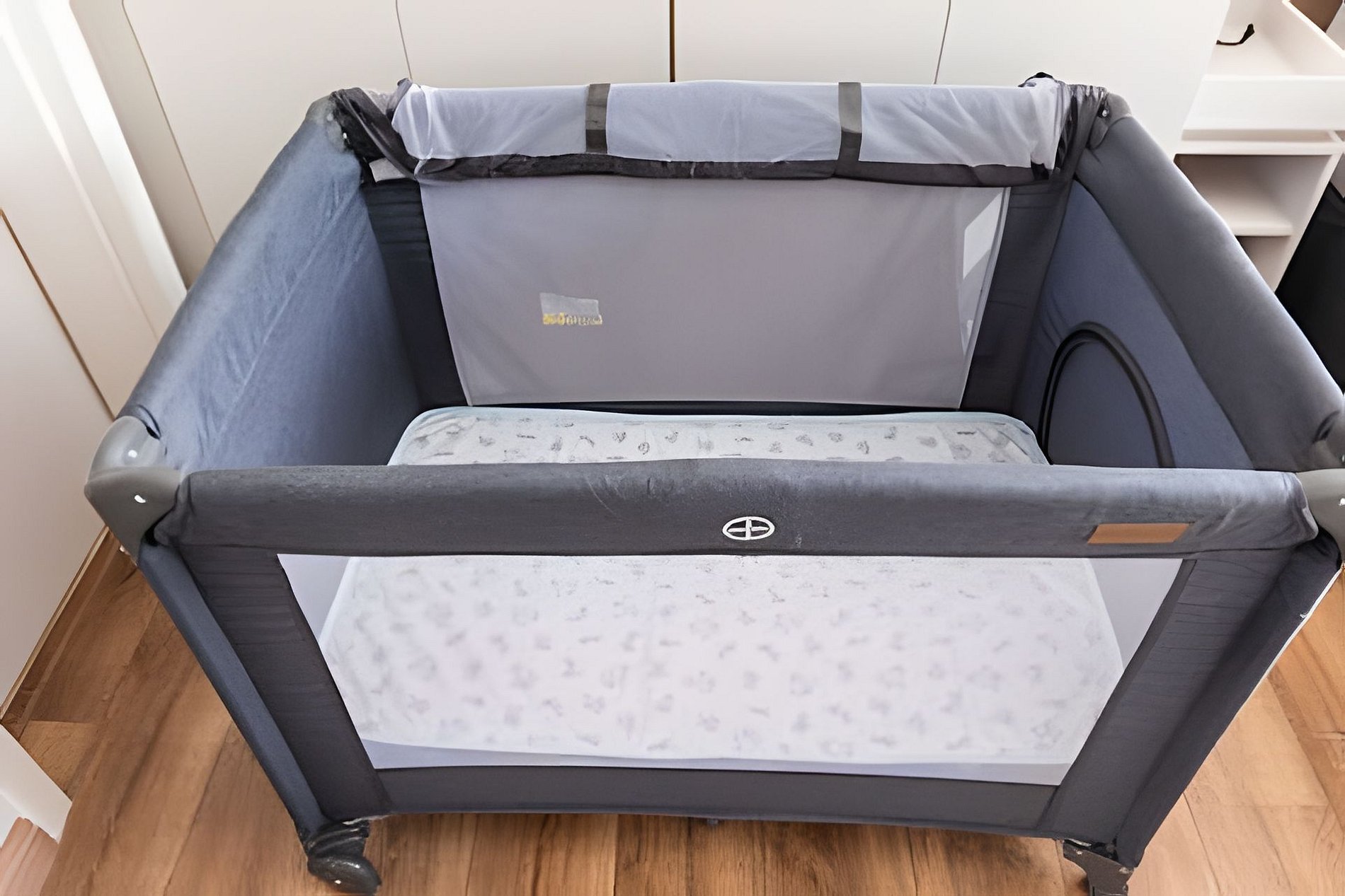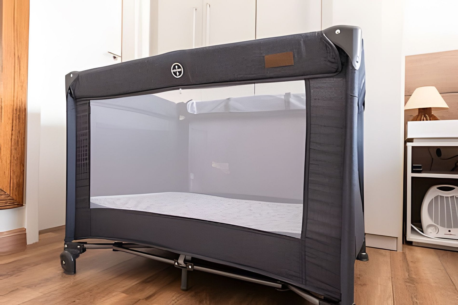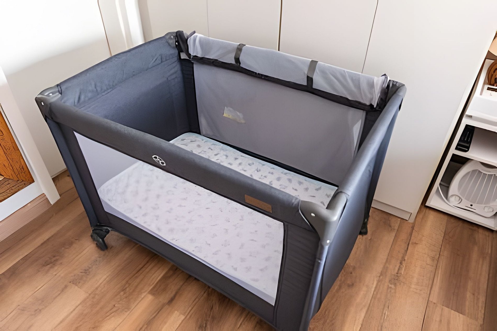 * Um berço portátil disponível
