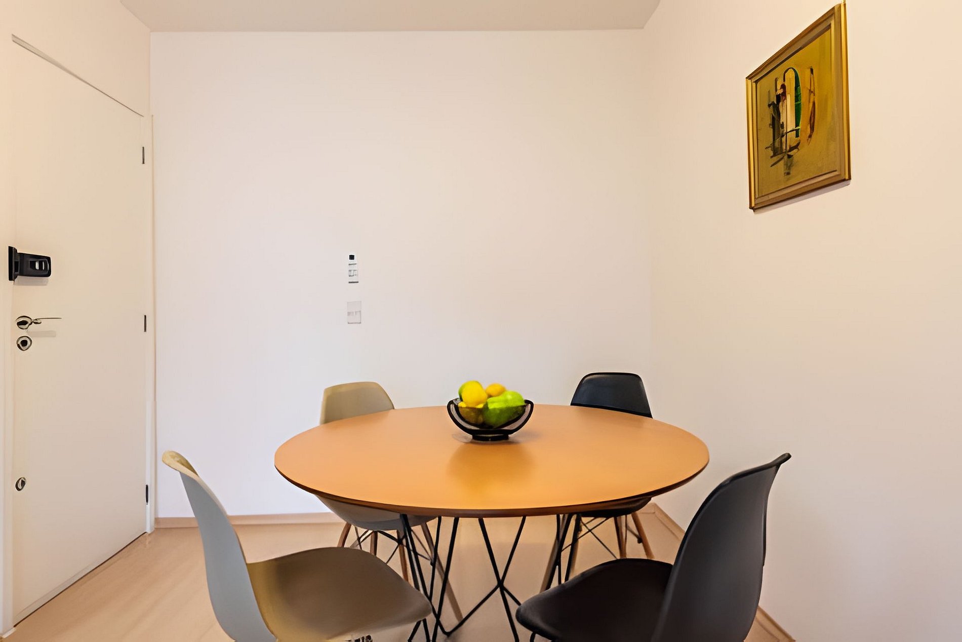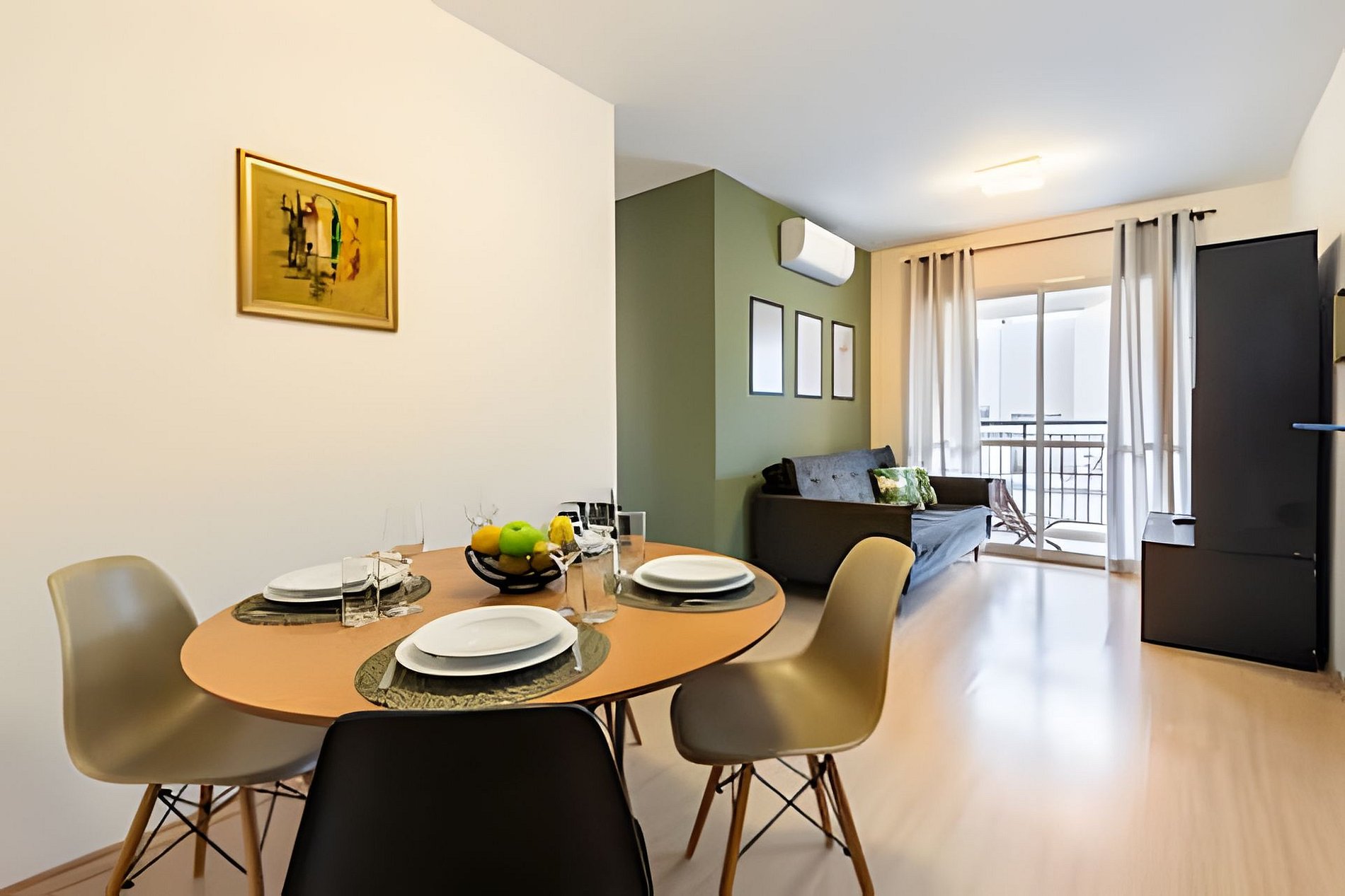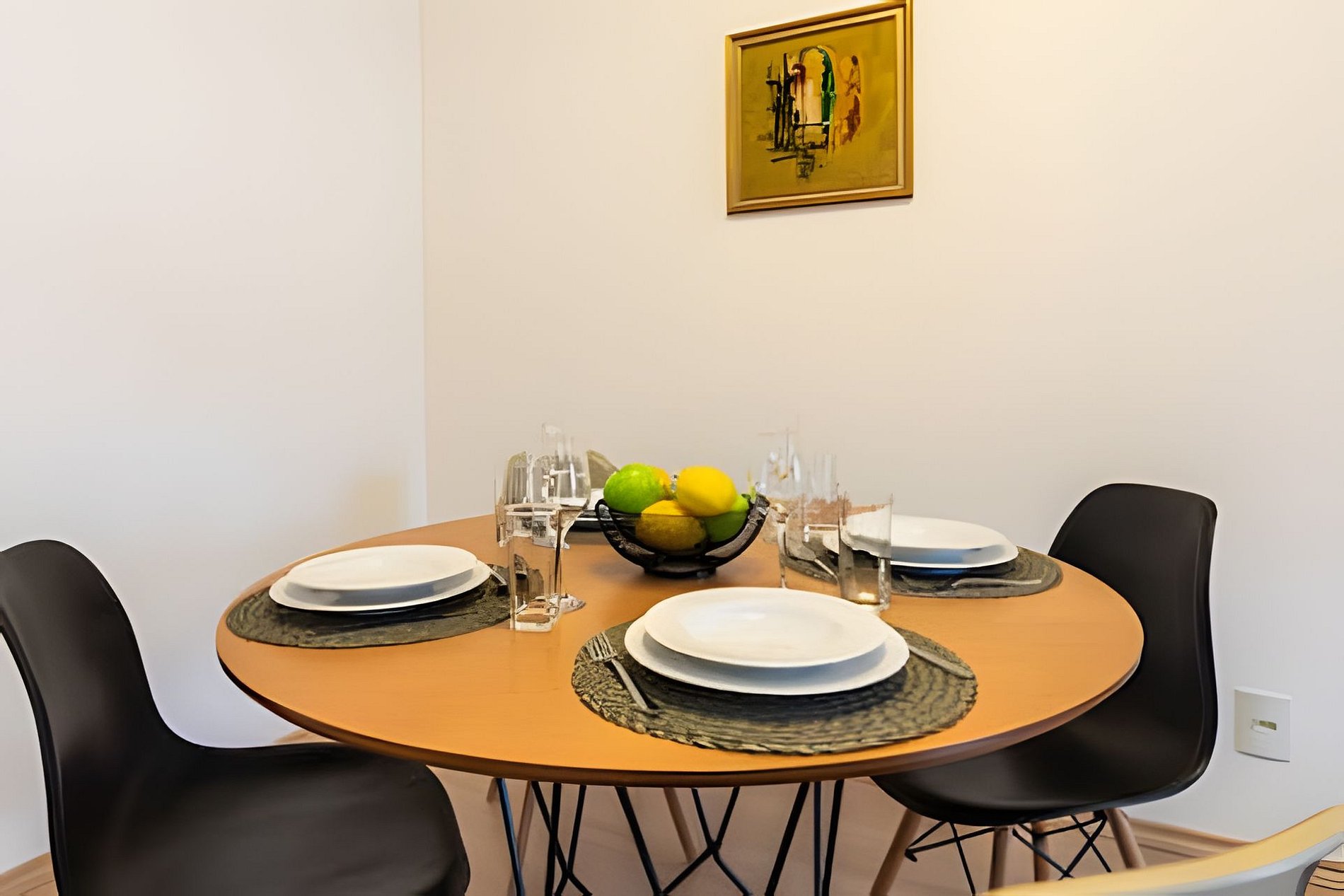 * Sala de Jantar: Charmosa e funcional, com uma mesa redonda que acomoda quatro cadeiras.