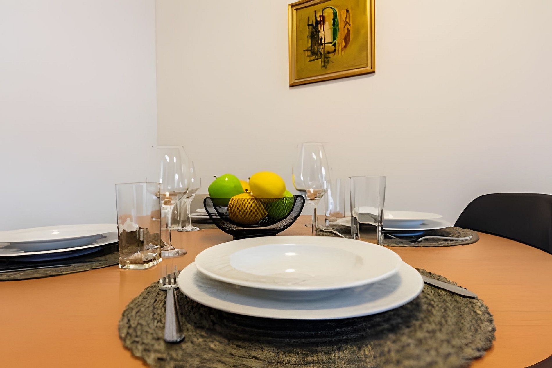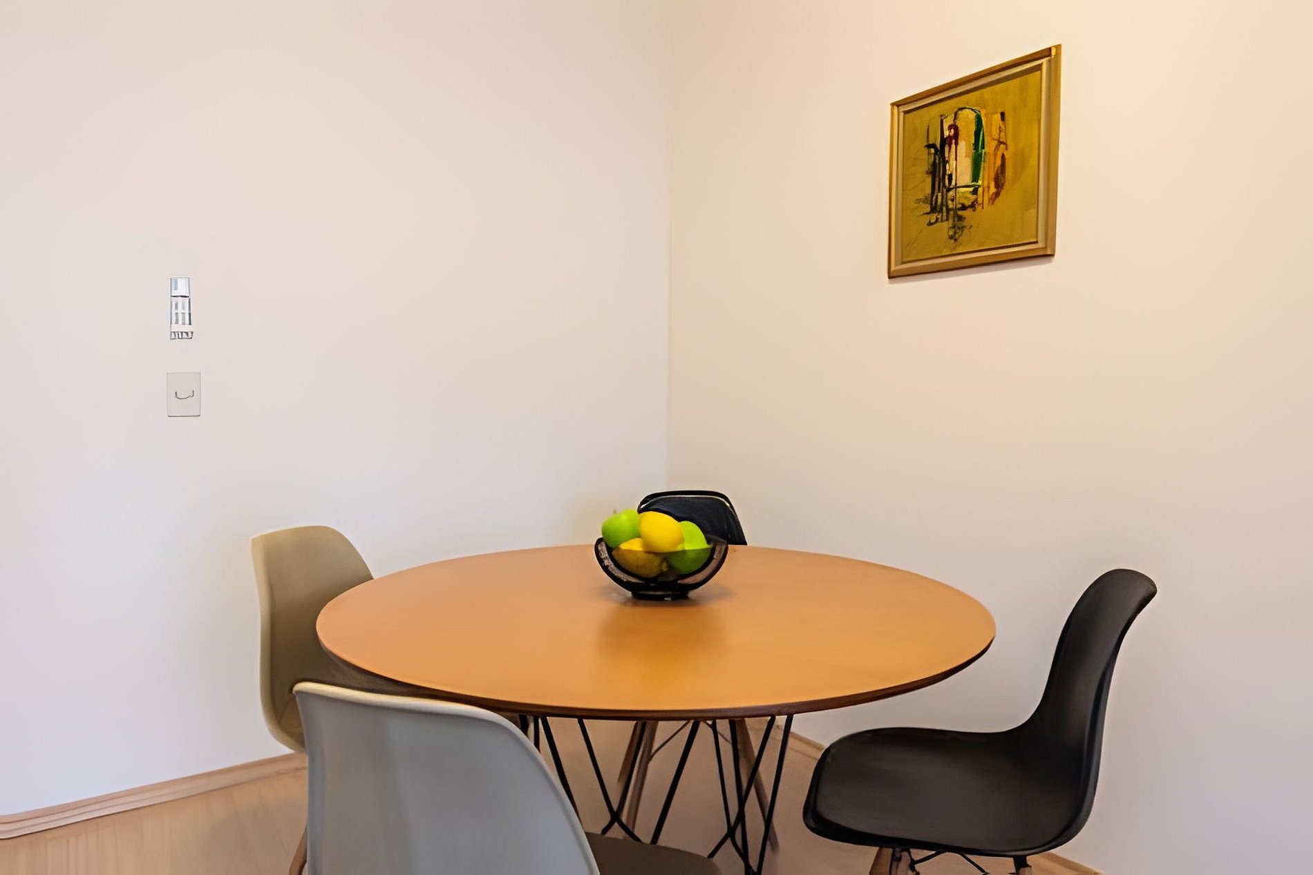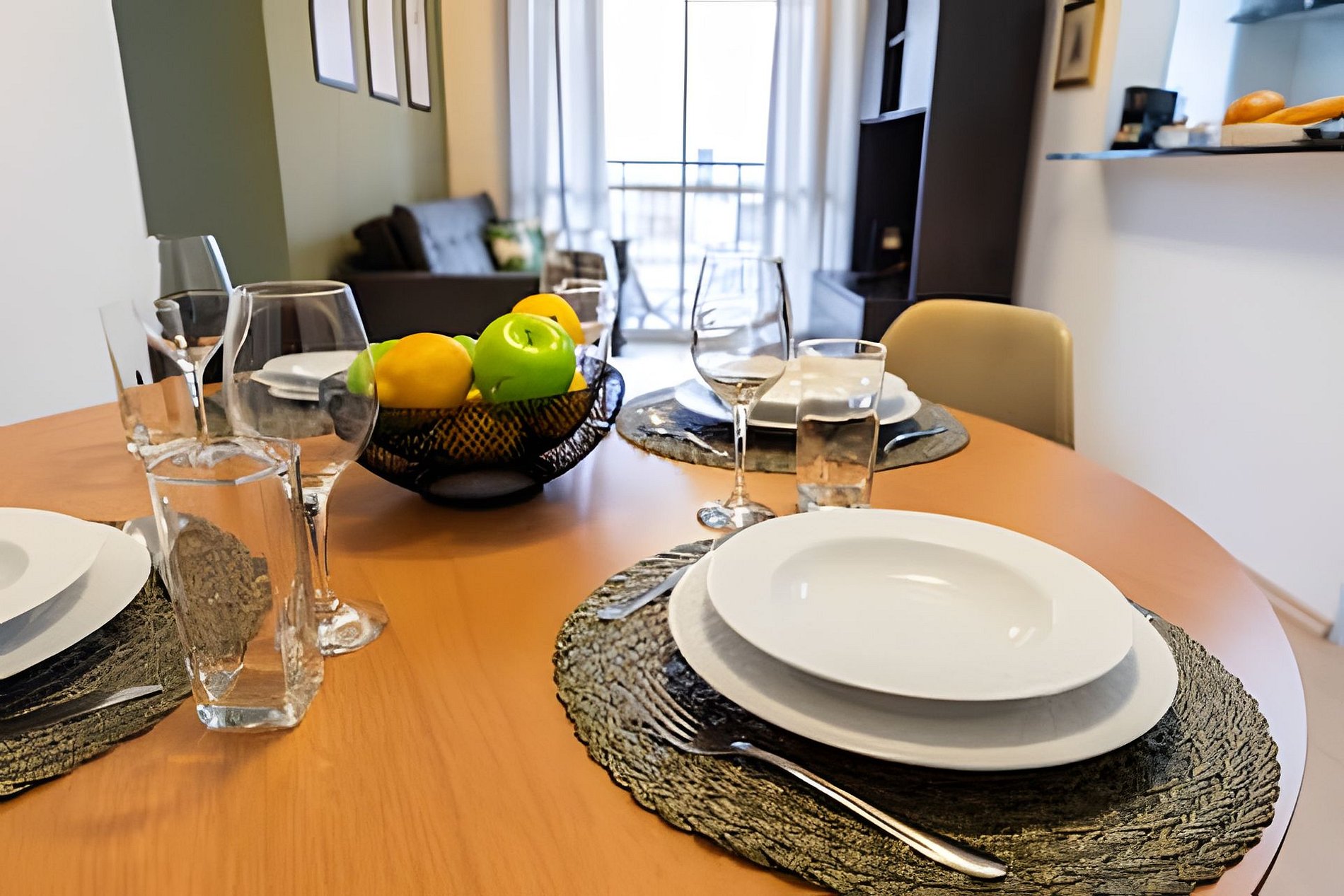 * Sala de Jantar: Charmosa e funcional, com uma mesa redonda que acomoda quatro cadeiras.