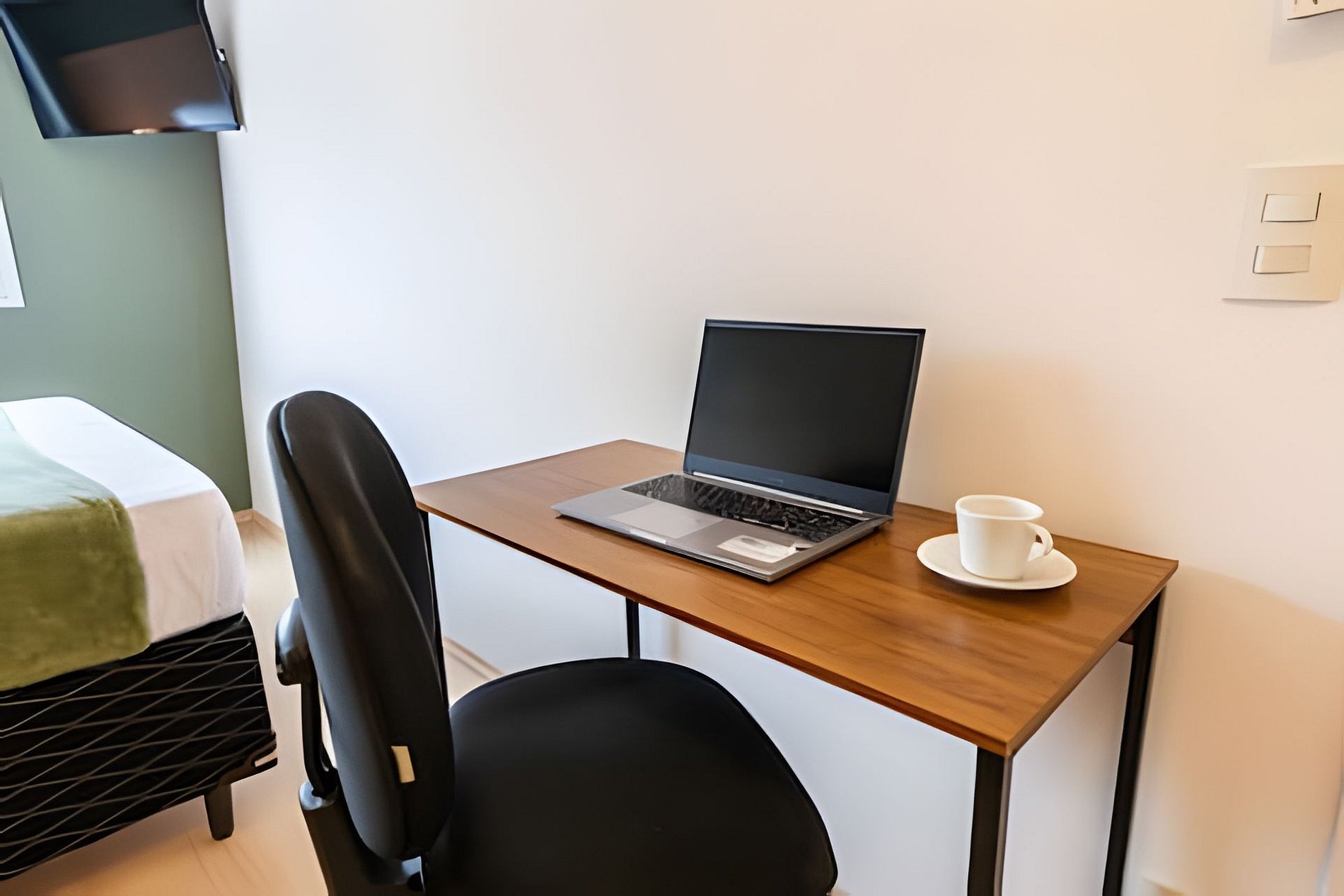 Tomada elétrica próxima à cama