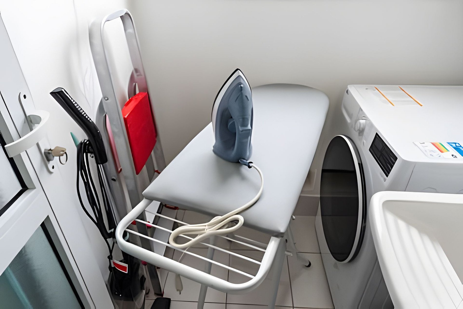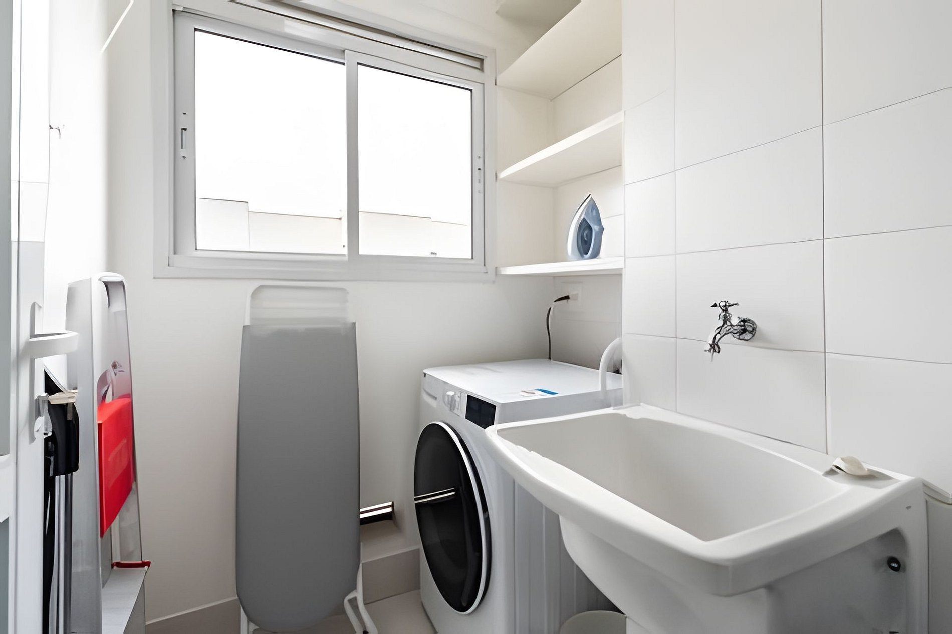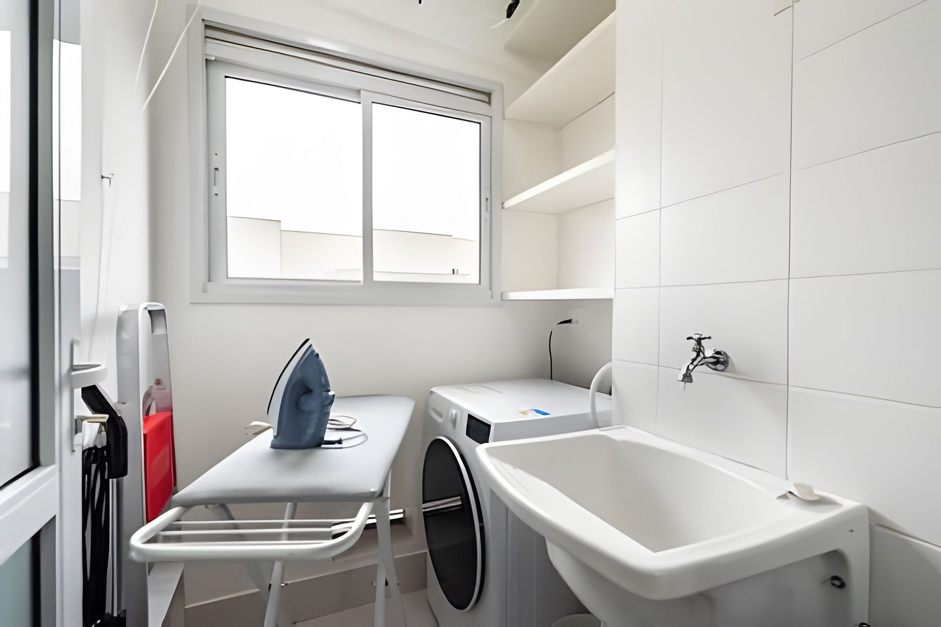 * Área de Serviço: Equipada com máquina de lavar e secar roupas, ferro, varal de teto, cesto de roupas e lixeira para sua conveniência. * Espaços de Trabalho: Um local dedicado ao home office, localizado na suíte. * Lavabo/Banheiro: Prático lavabo/banheiro no corredor para maior comodidade.