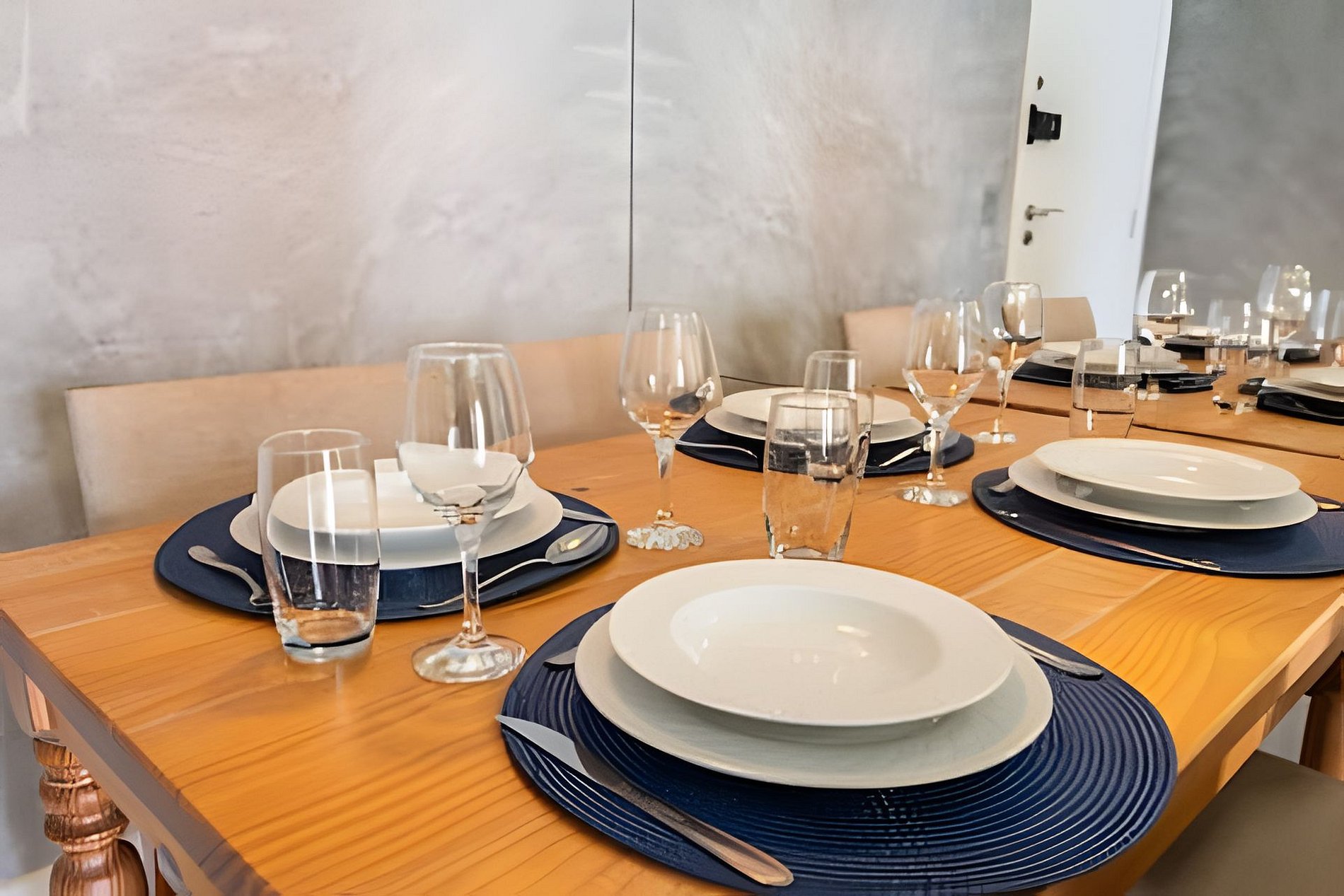 * Sala de Jantar: Charmosa e funcional, com uma mesa que acomoda 4 cadeiras, além de uma bancada espaçosa com três cadeiras altas