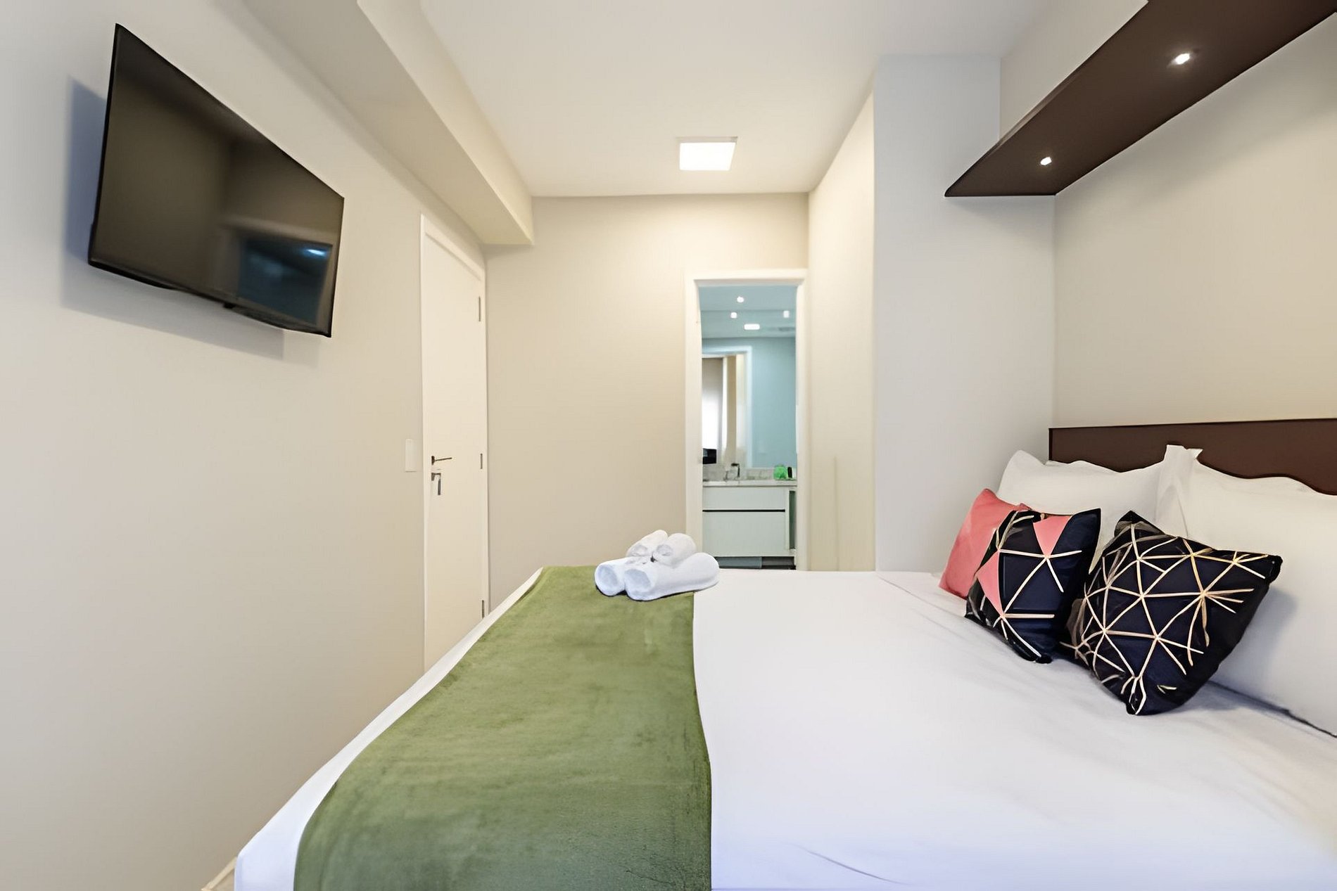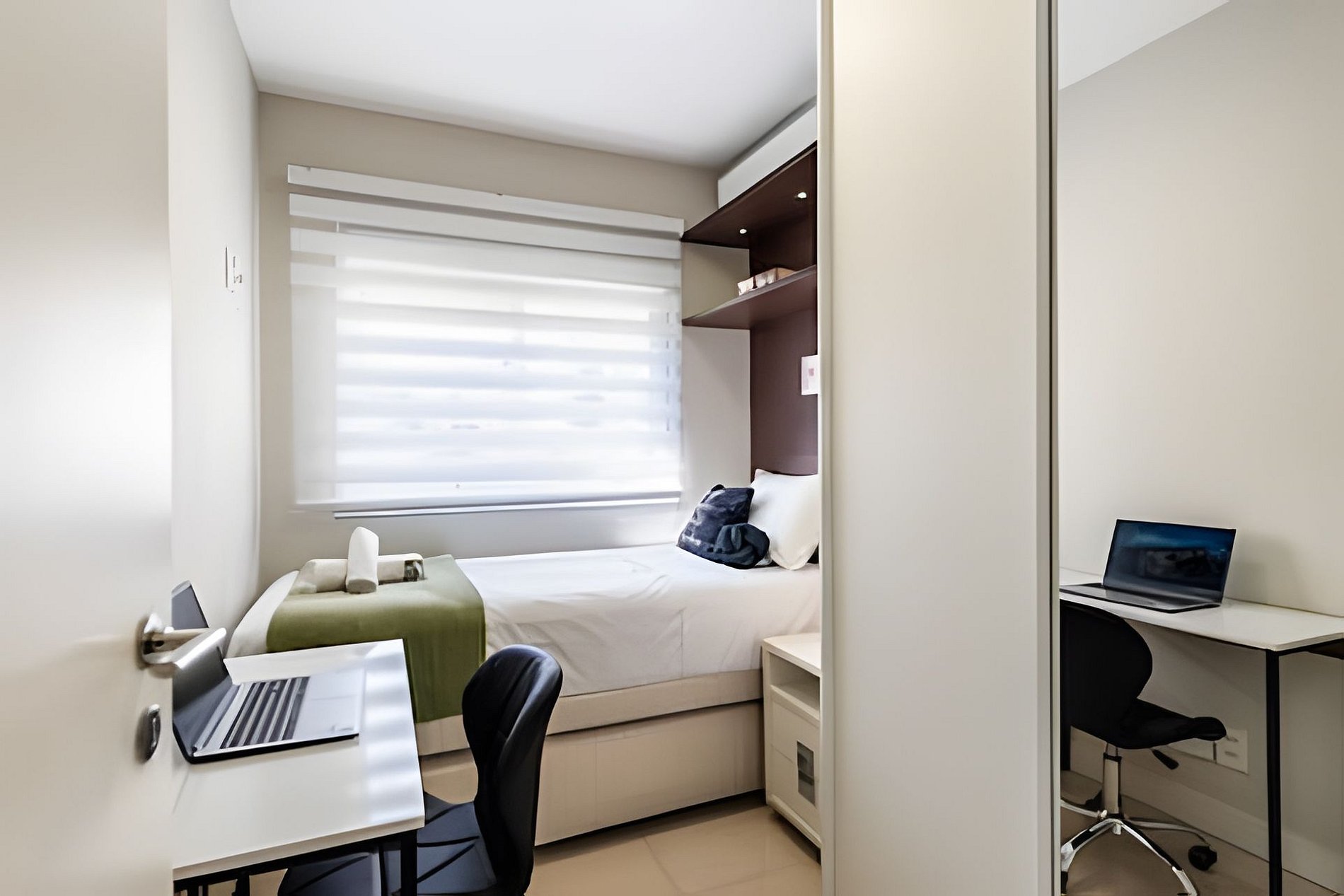 * Espaços de Trabalho: Um local dedicado ao home office, localizado no quarto de solteiro.