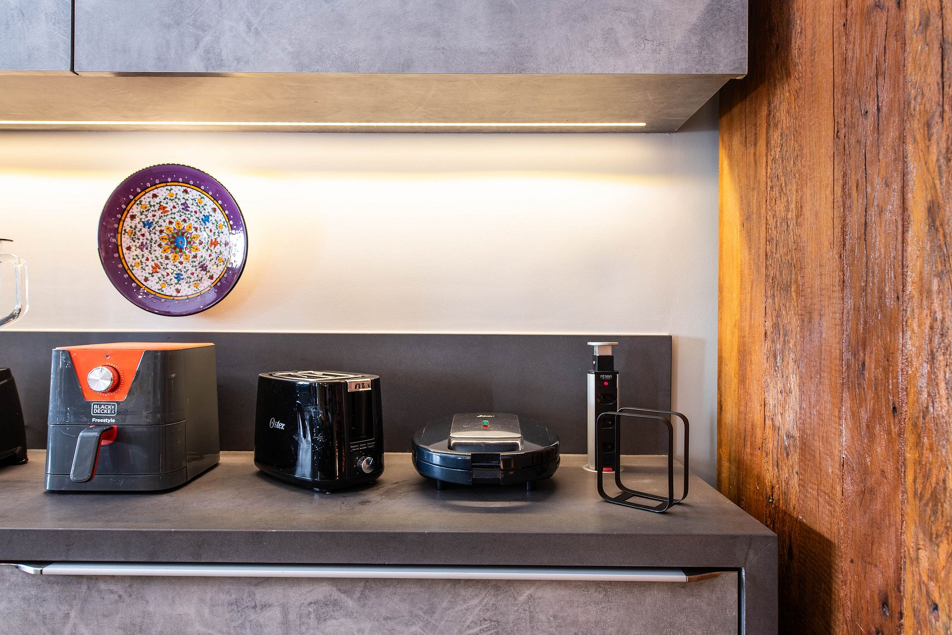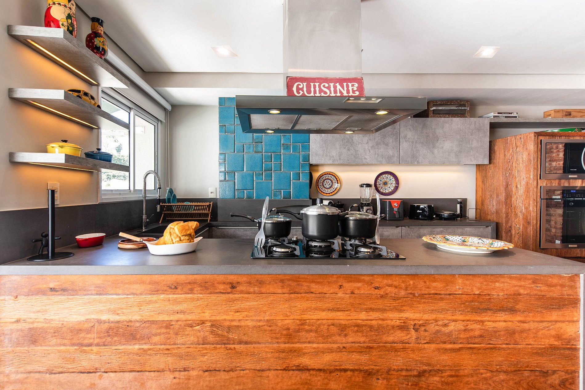 * Cozinha Completa: Com eletrodomésticos modernos (fogão, forno, exaustor, micro-ondas, air-fryer, cafeteira Nespresso, liquidificador, filtro de água) e todos os utensílios necessários para preparar suas refeições favoritas.