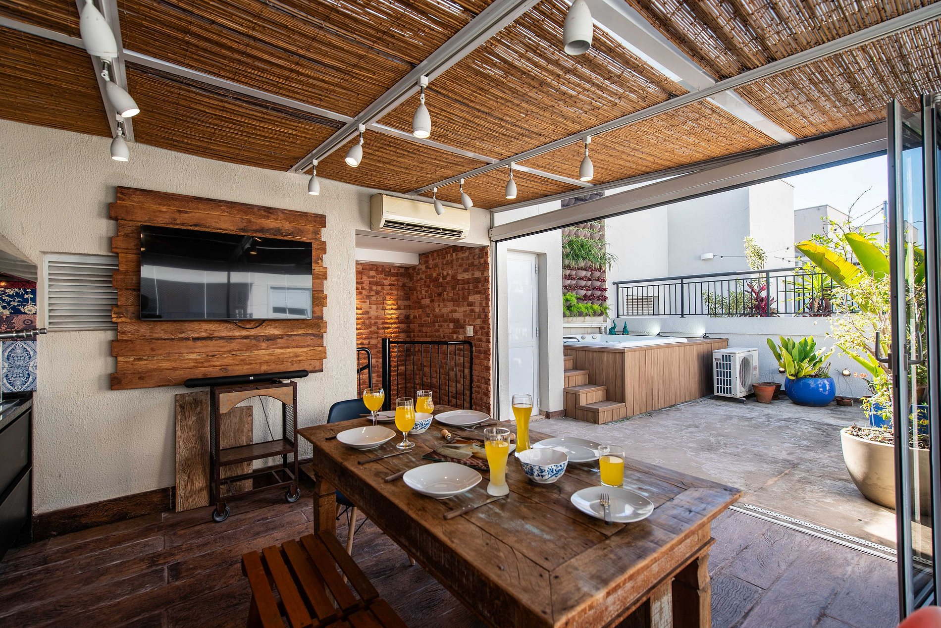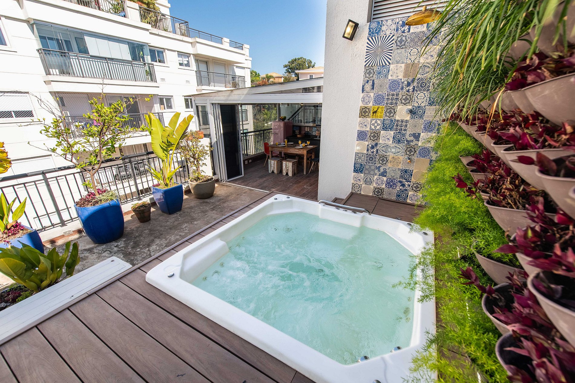 * Área de Lazer Privativa: Espaço gourmet com jacuzzi, churrasqueira e mesa ampla.