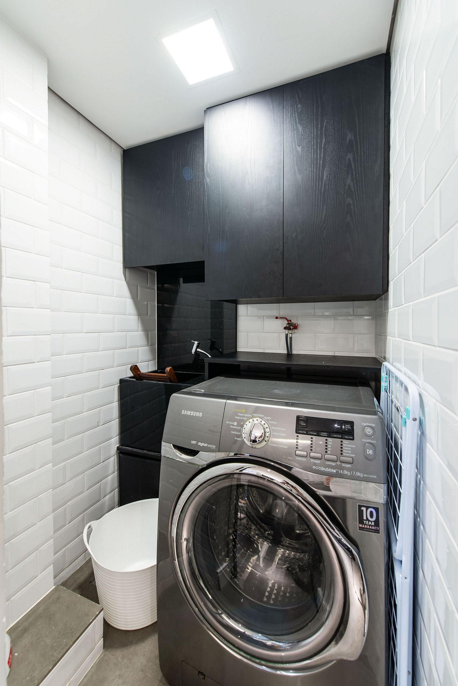 * Área de Serviço: Equipada com máquina de lavar e secar roupas, ferro, varal e lixeira para sua conveniência.