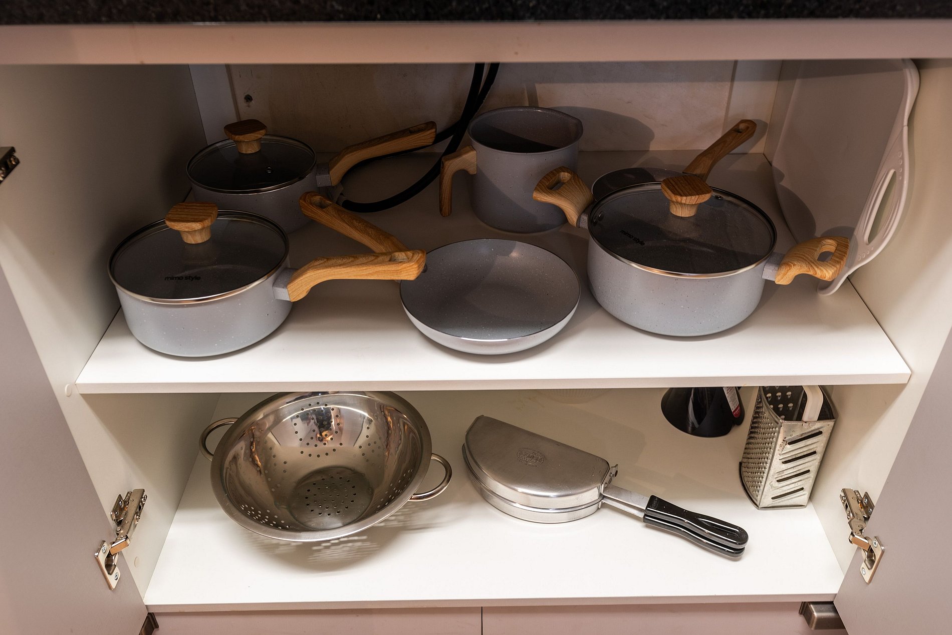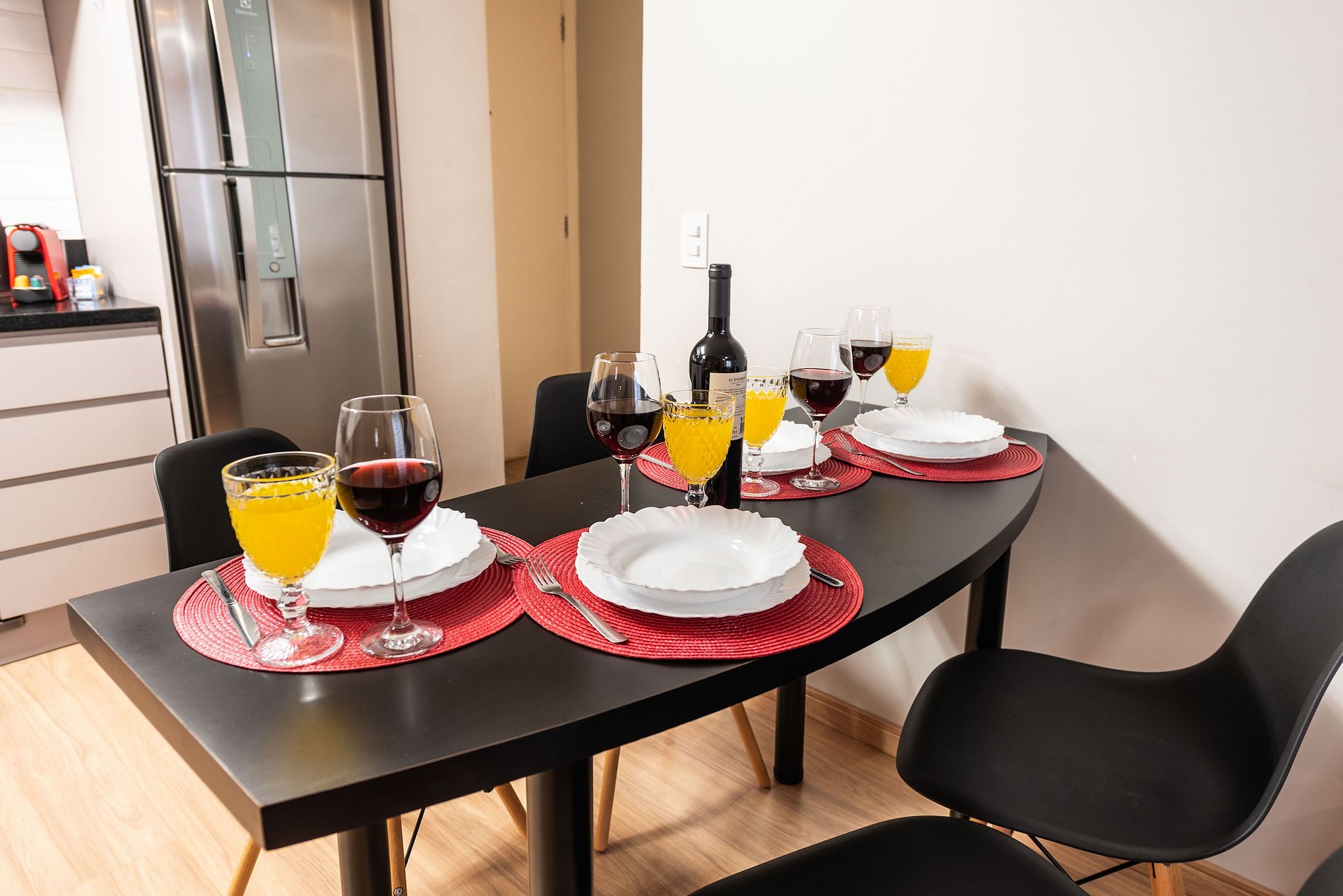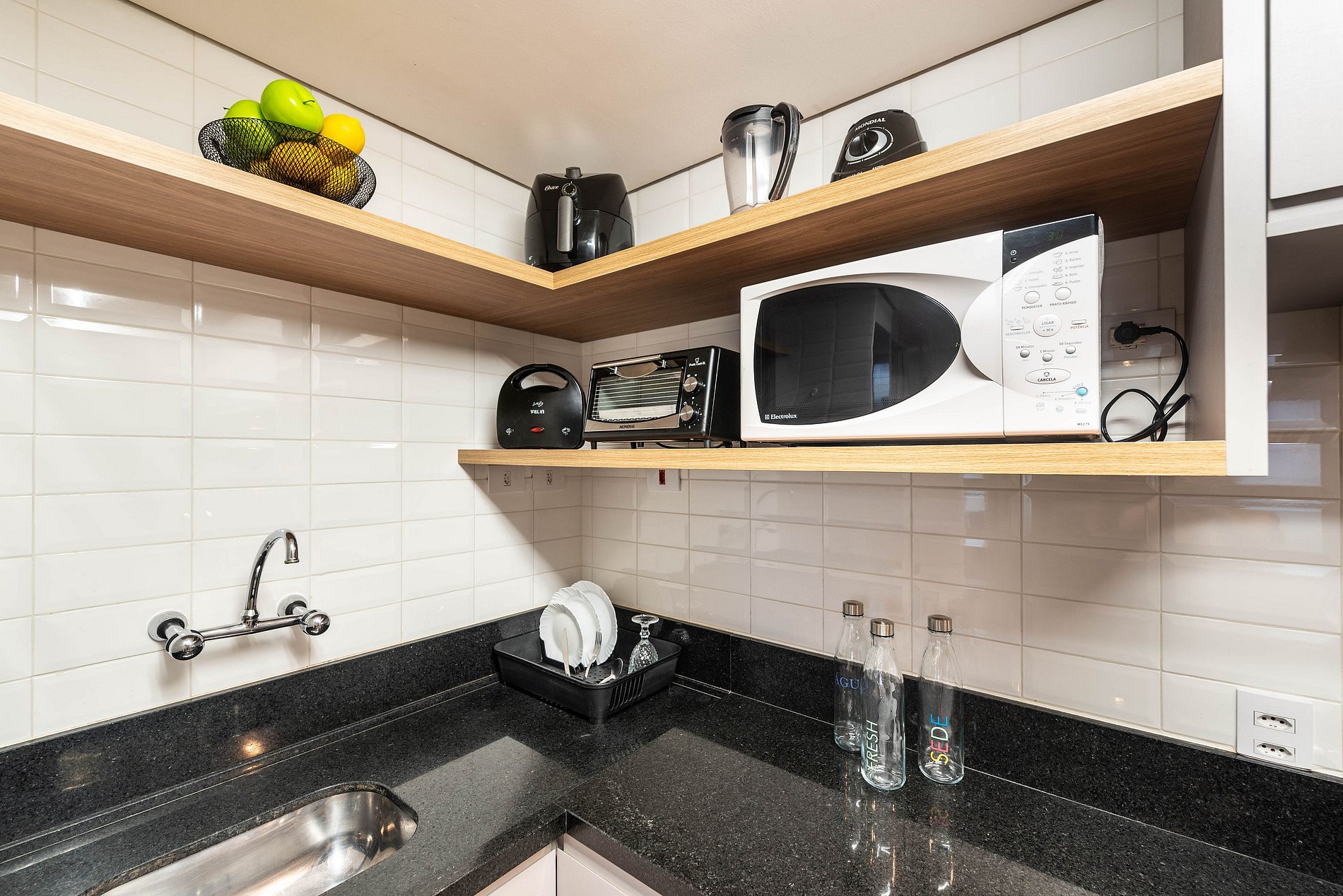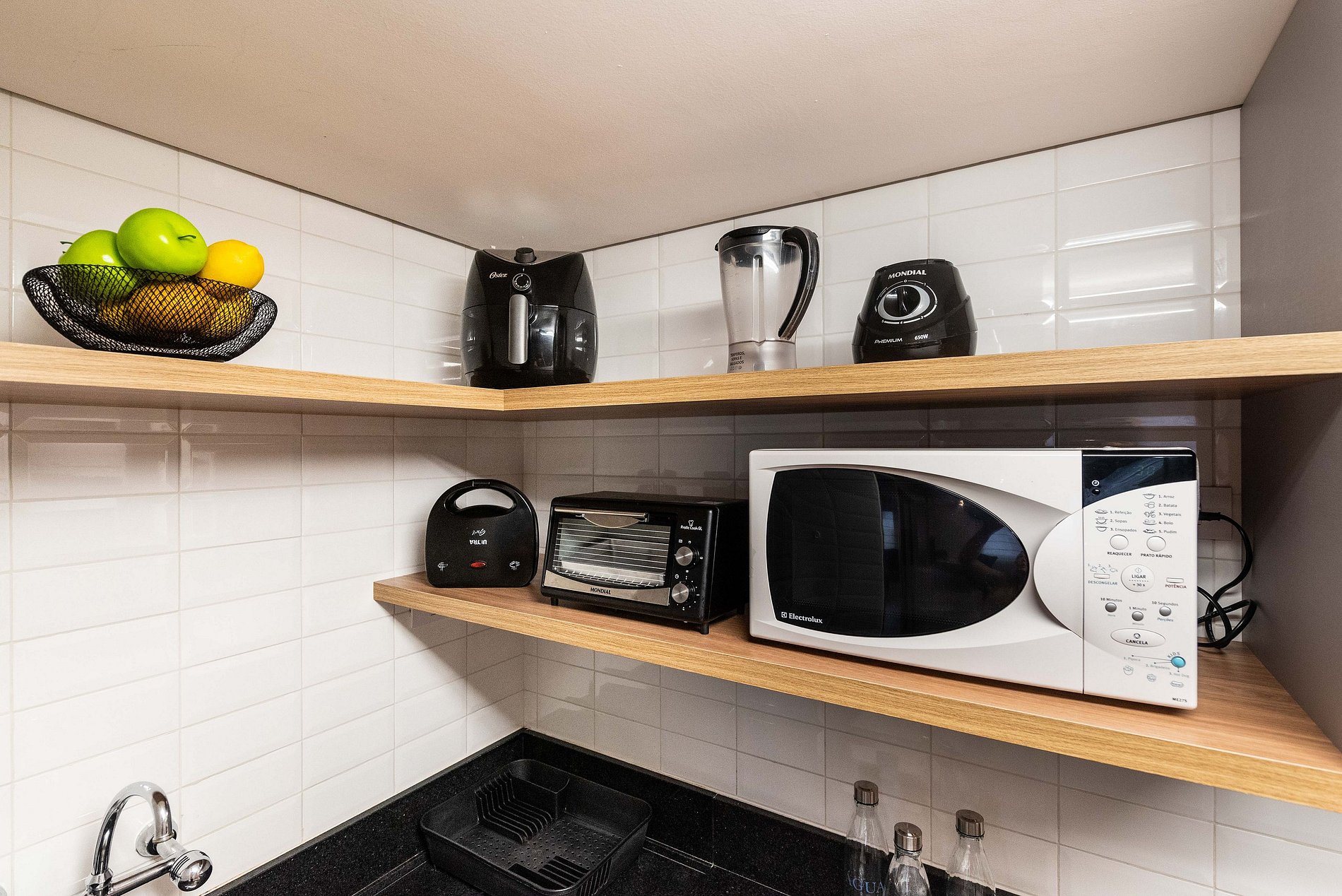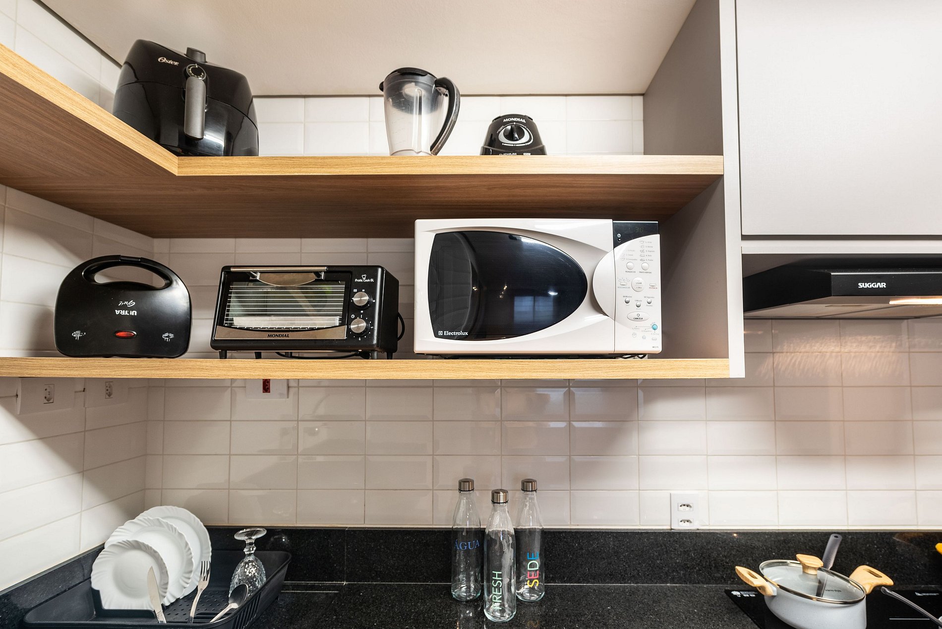 *Cozinha totalmente equipada, com geladeira, fogão por indução, Airfryer, liquidificador, cafeteira Nespresso e utensílios completos