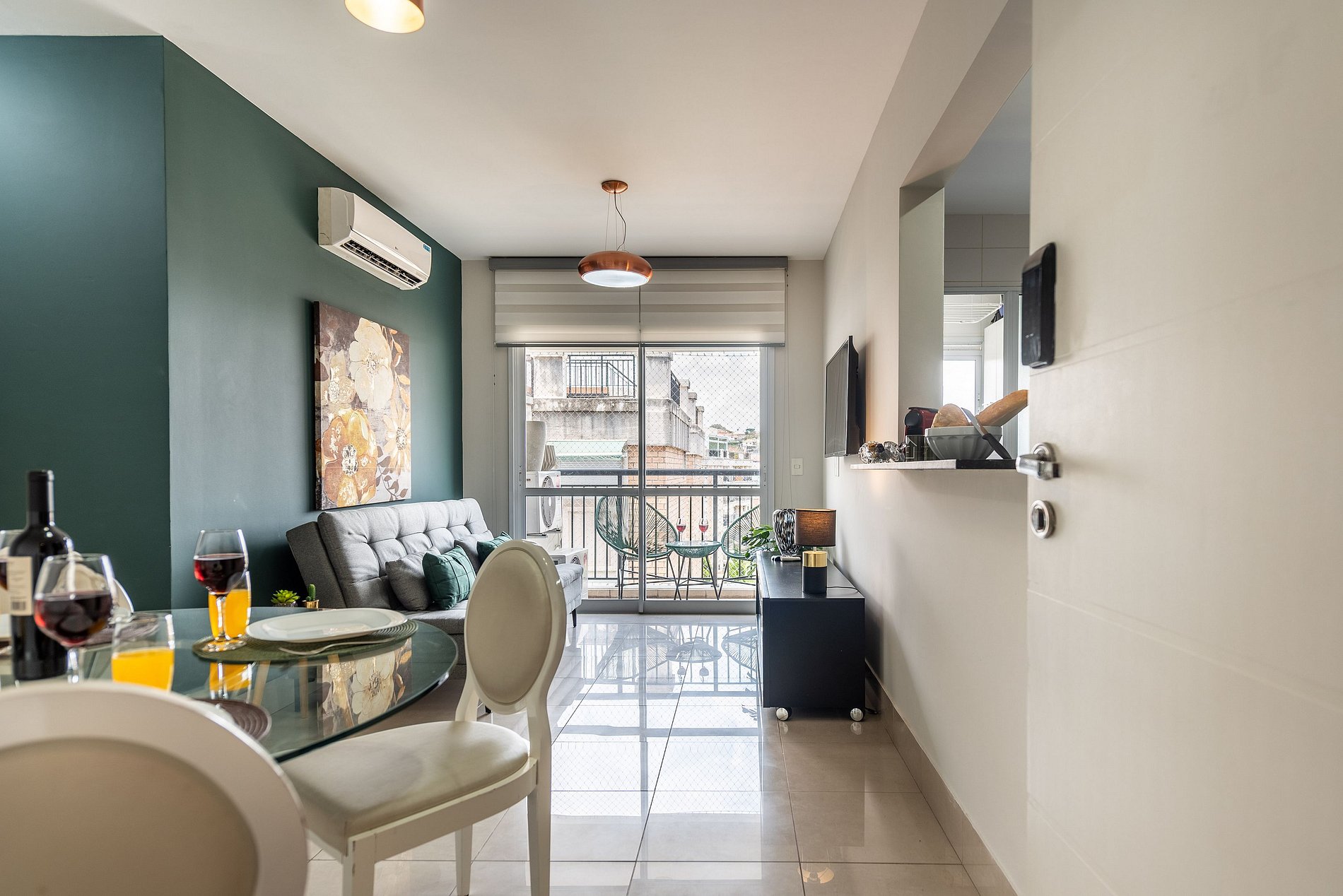 * Sala de Jantar: Charmosa e funcional, com uma mesa redonda que acomoda quatro cadeiras.