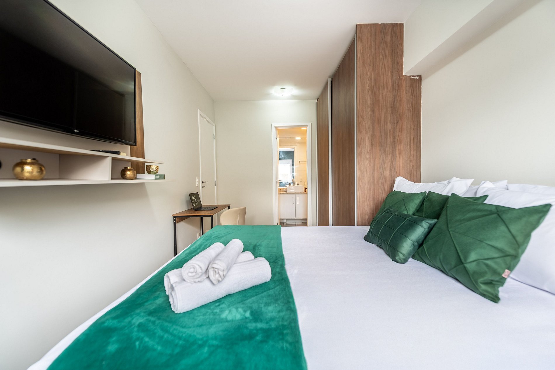 * Espaços de Trabalho: Um local dedicado ao home office, localizado na suíte.
