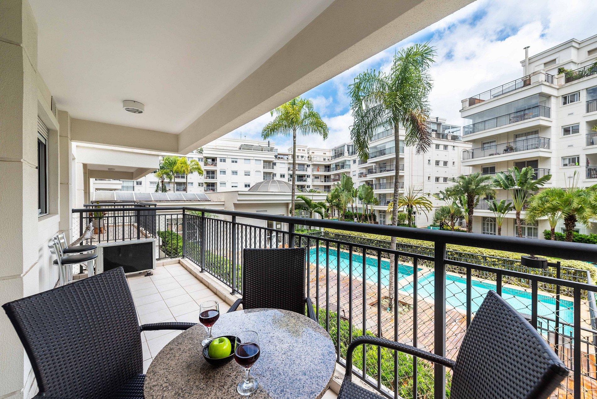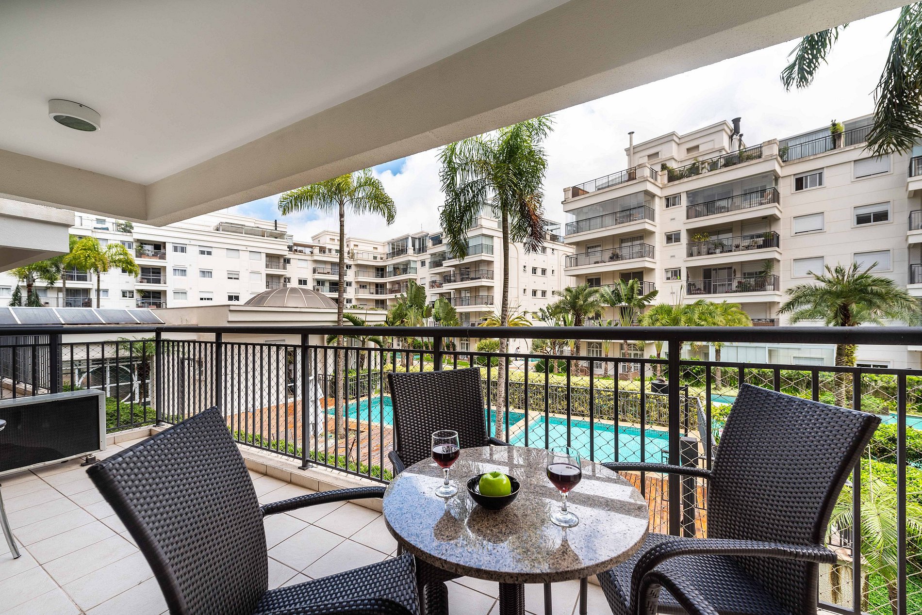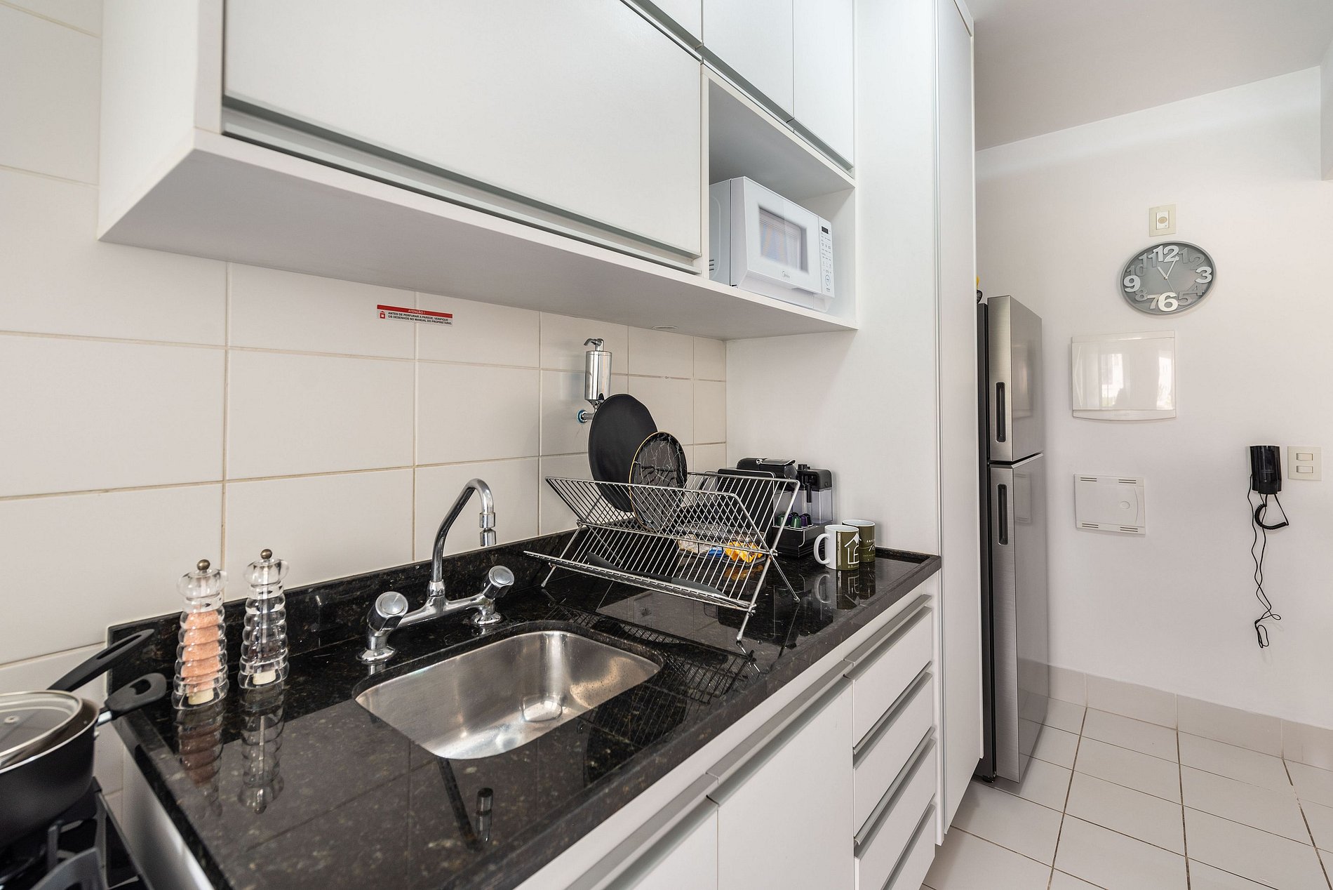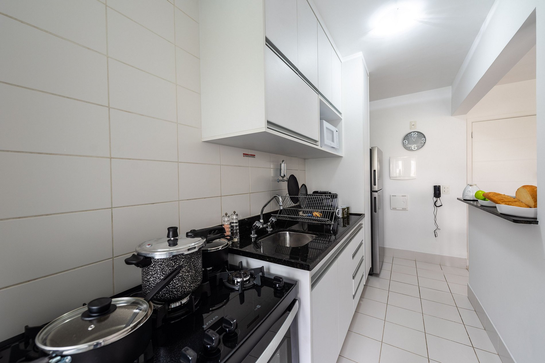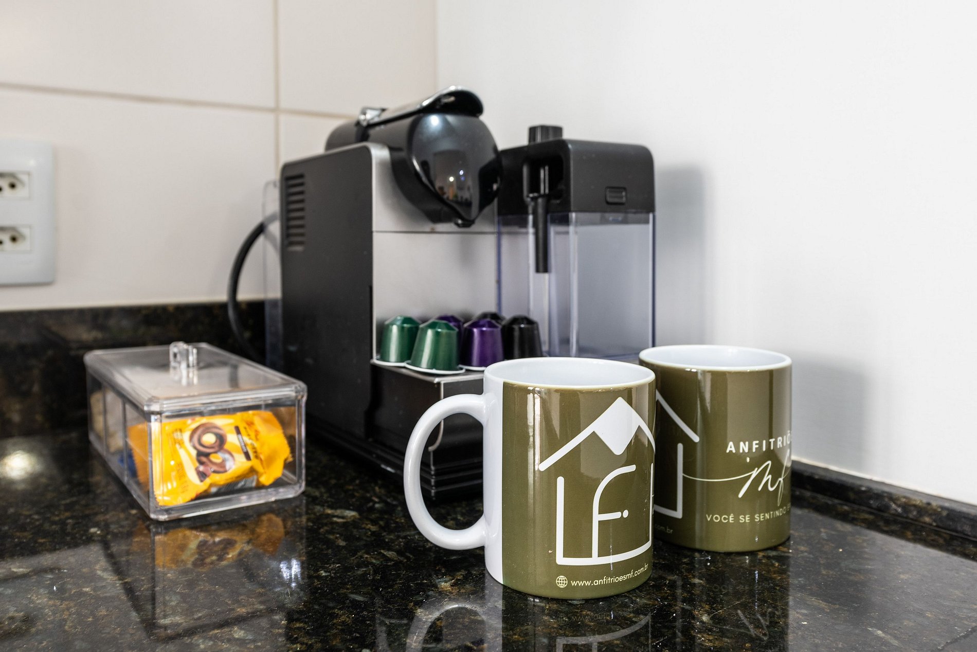 * Cozinha Completa: Equipamentos de última geração, incluindo máquina, fogão, forno, micro-ondas, cafeteira nespresso, air-fryer, torradeira, sanduicheira, liquidificador, filtro de água e todos os utensílios necessários preparar suas refeições favoritas.