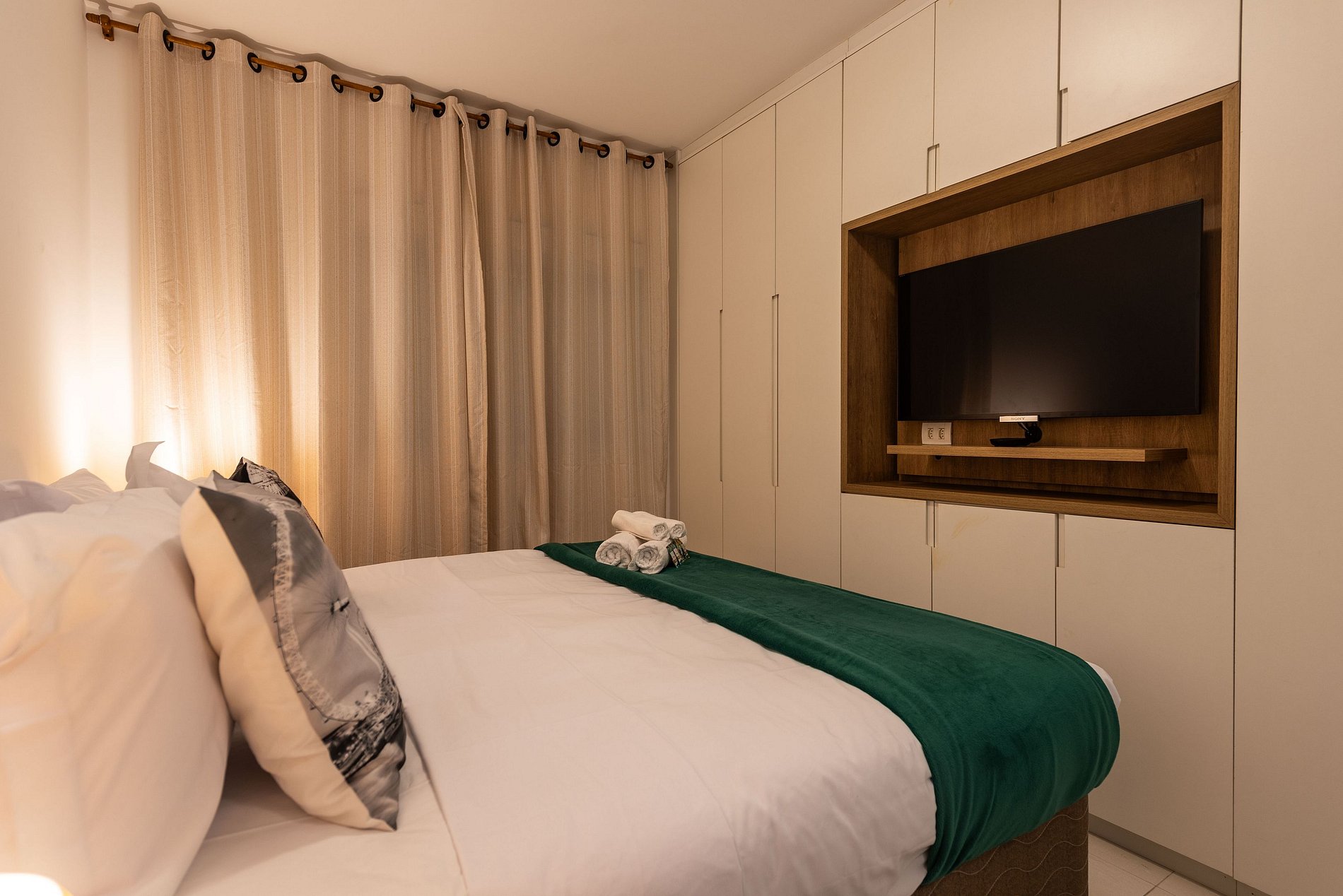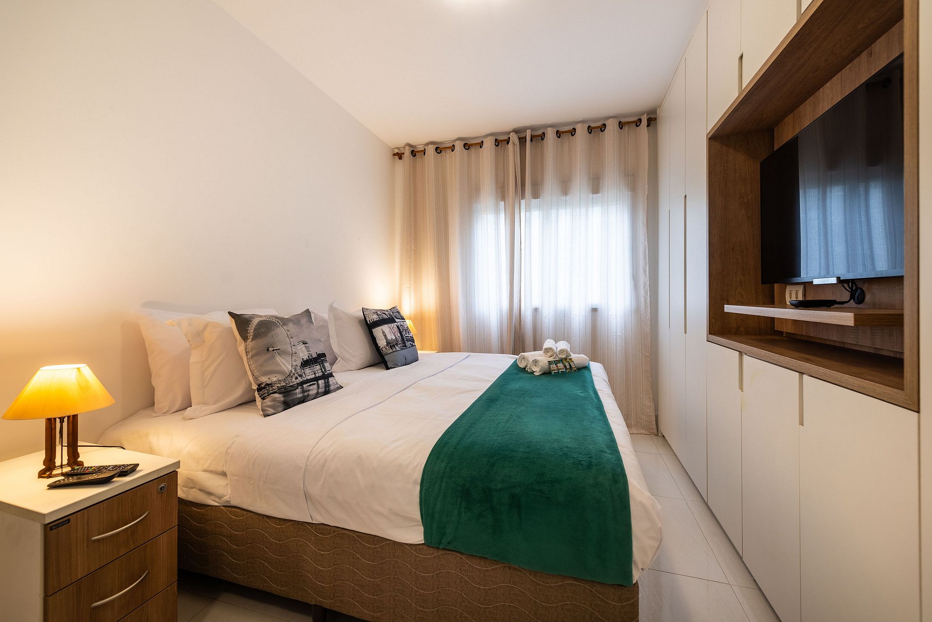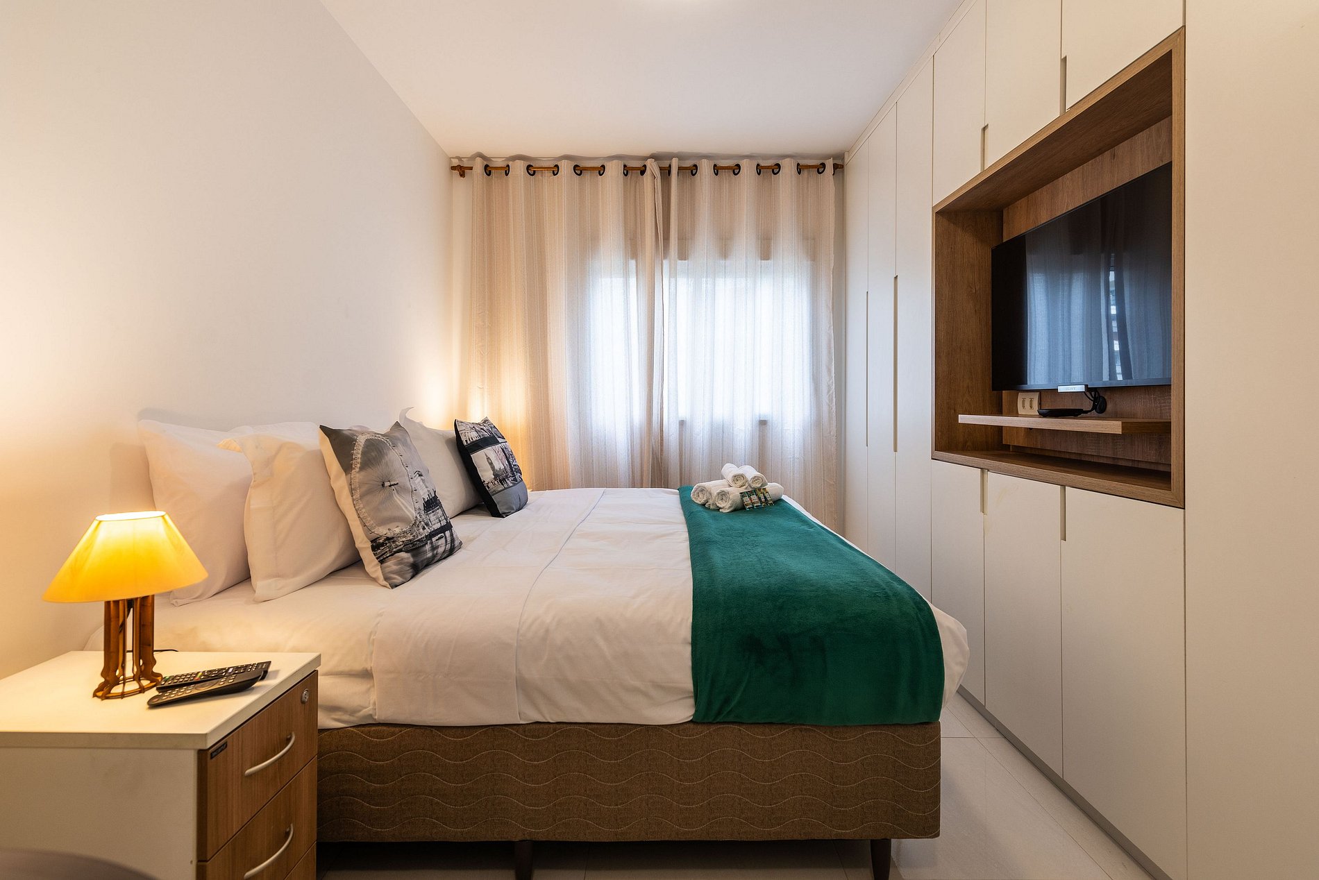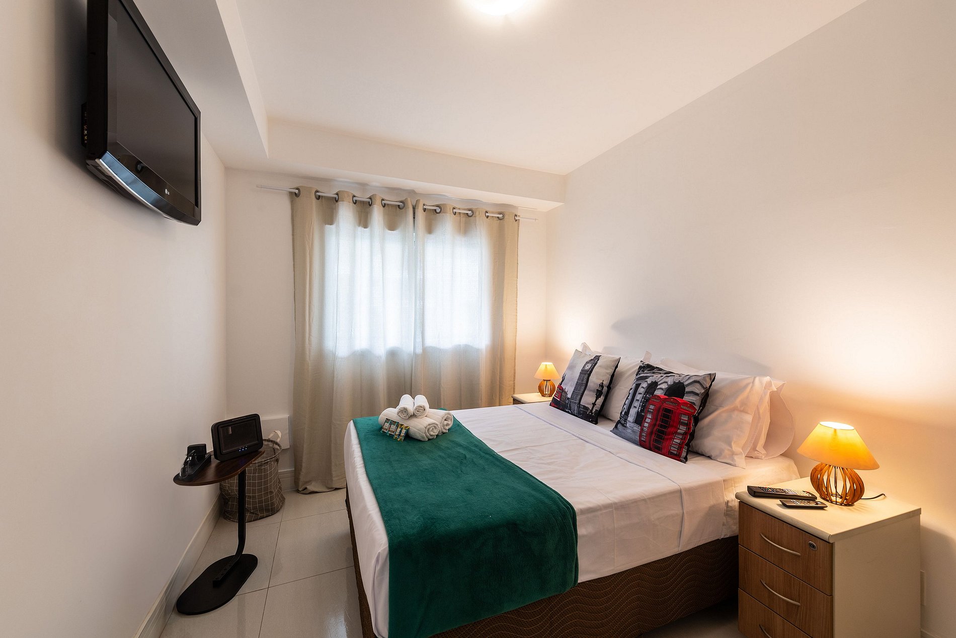 * Segundo quarto: Com cama de casal e Smart TV.