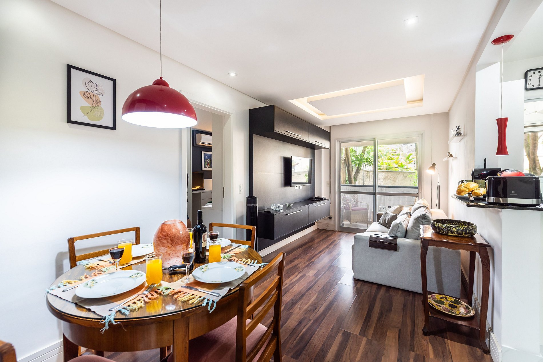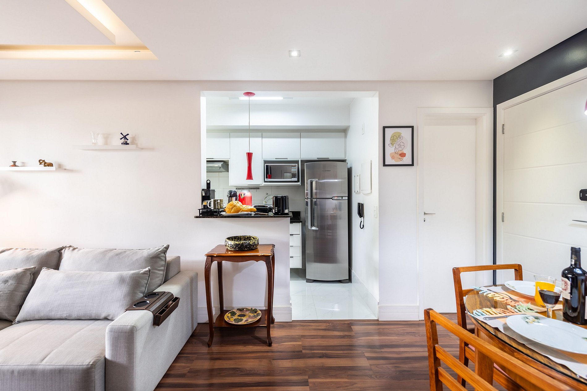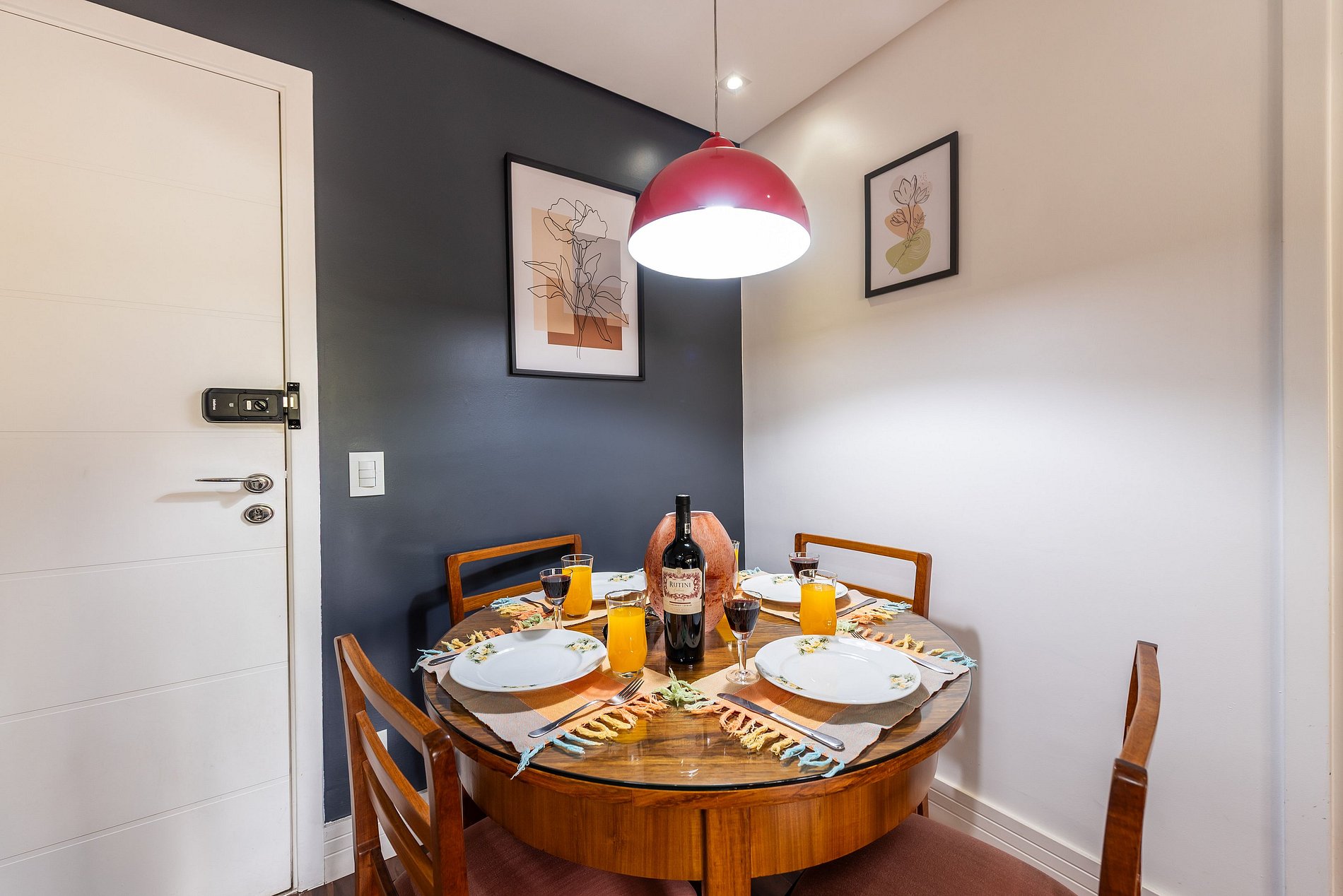 * Sala de Jantar: Charmosa e funcional, com uma mesa que acomoda 4 cadeiras.