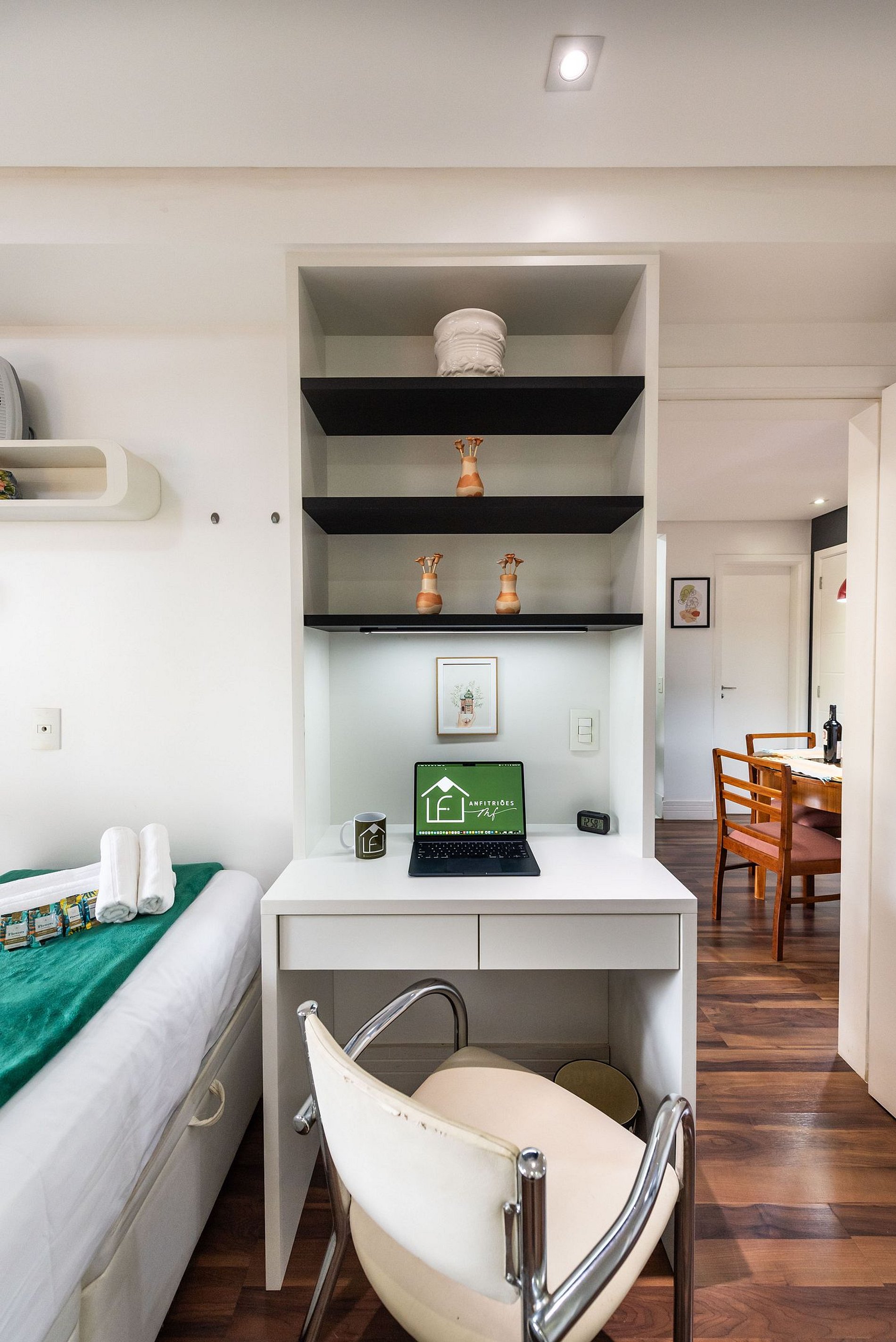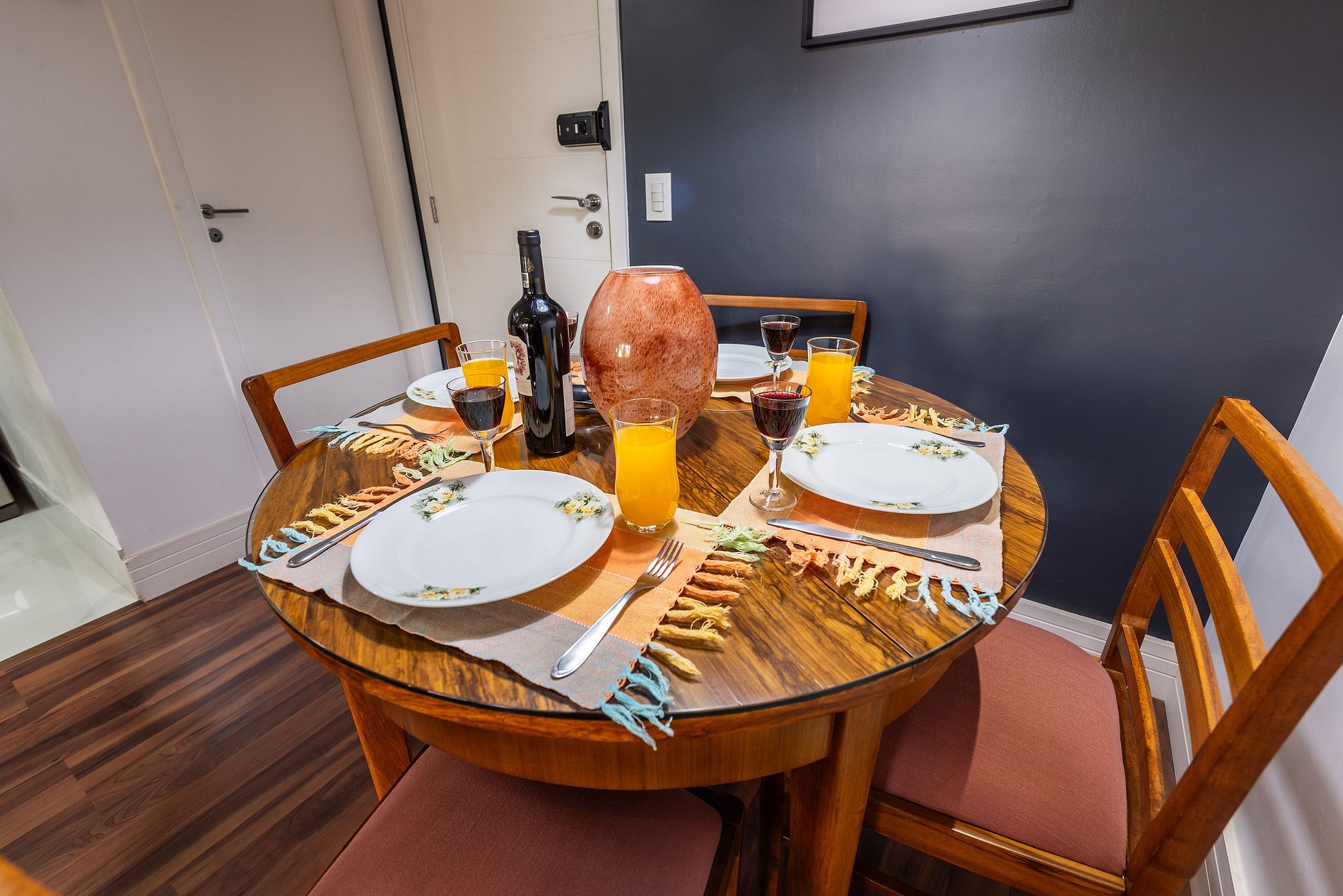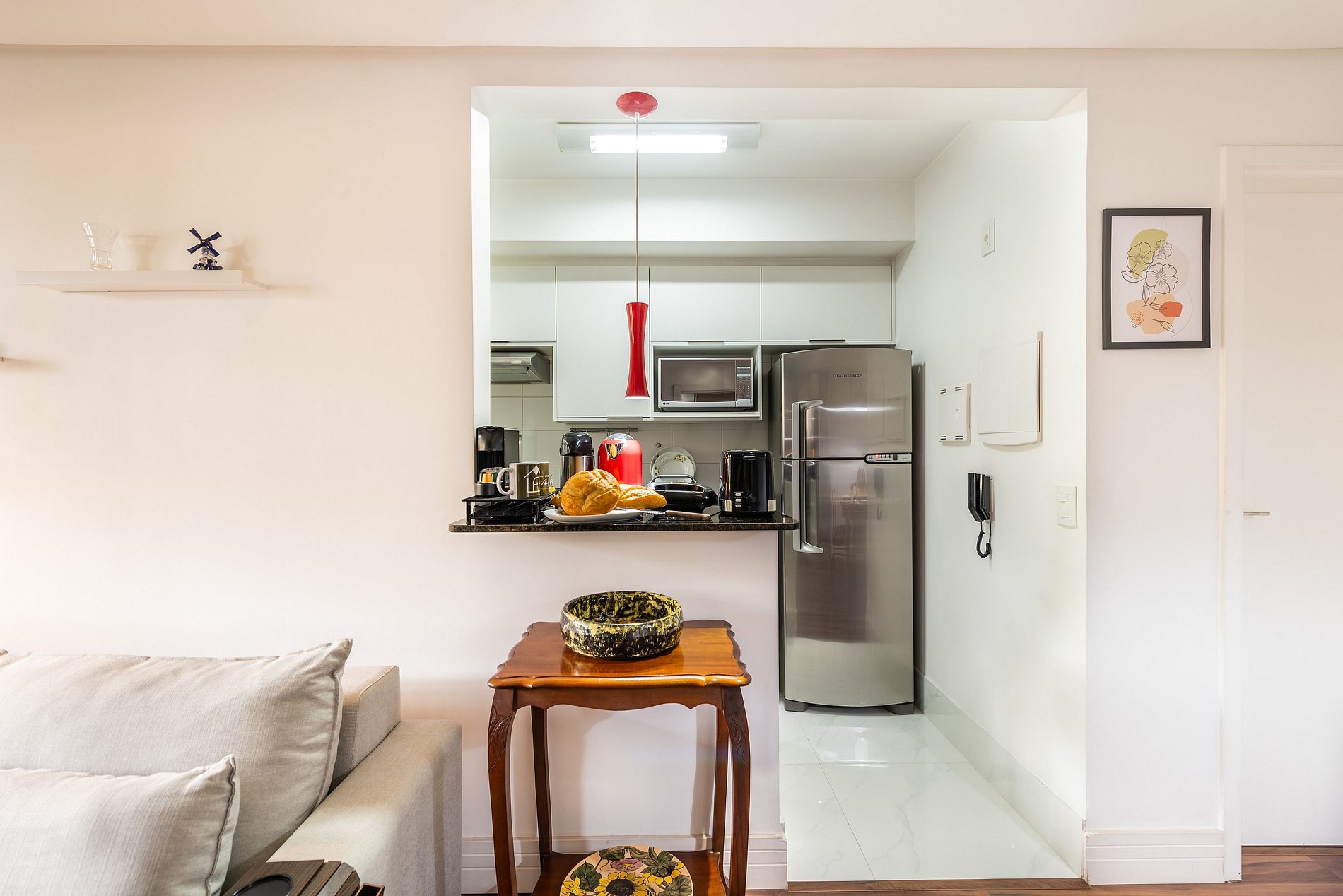* Sala de Jantar: Charmosa e funcional, com uma mesa que acomoda 4 cadeiras.