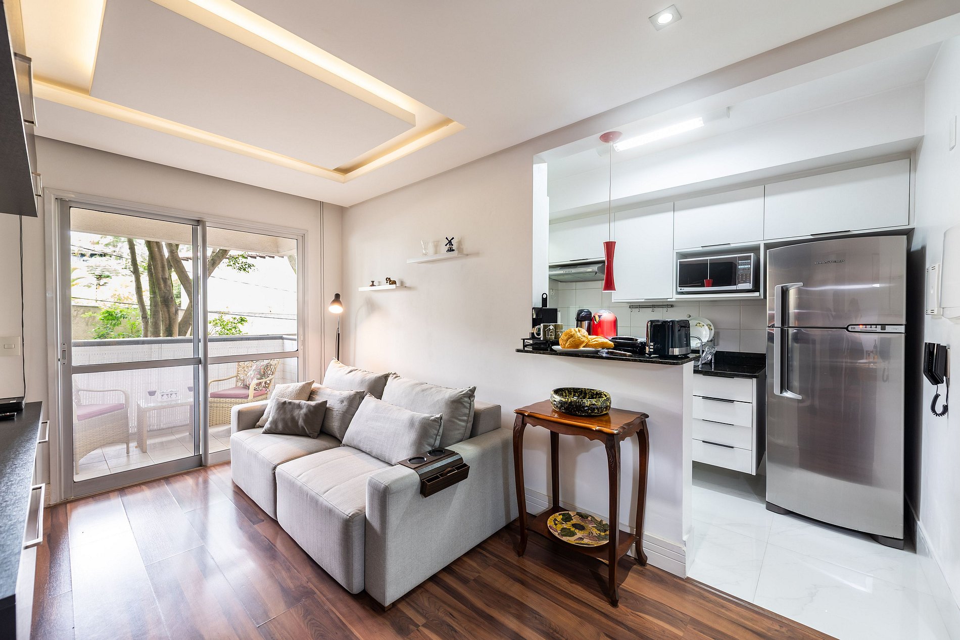 Os móveis da sala de estar e jantar não devem ser movidos para a varanda.