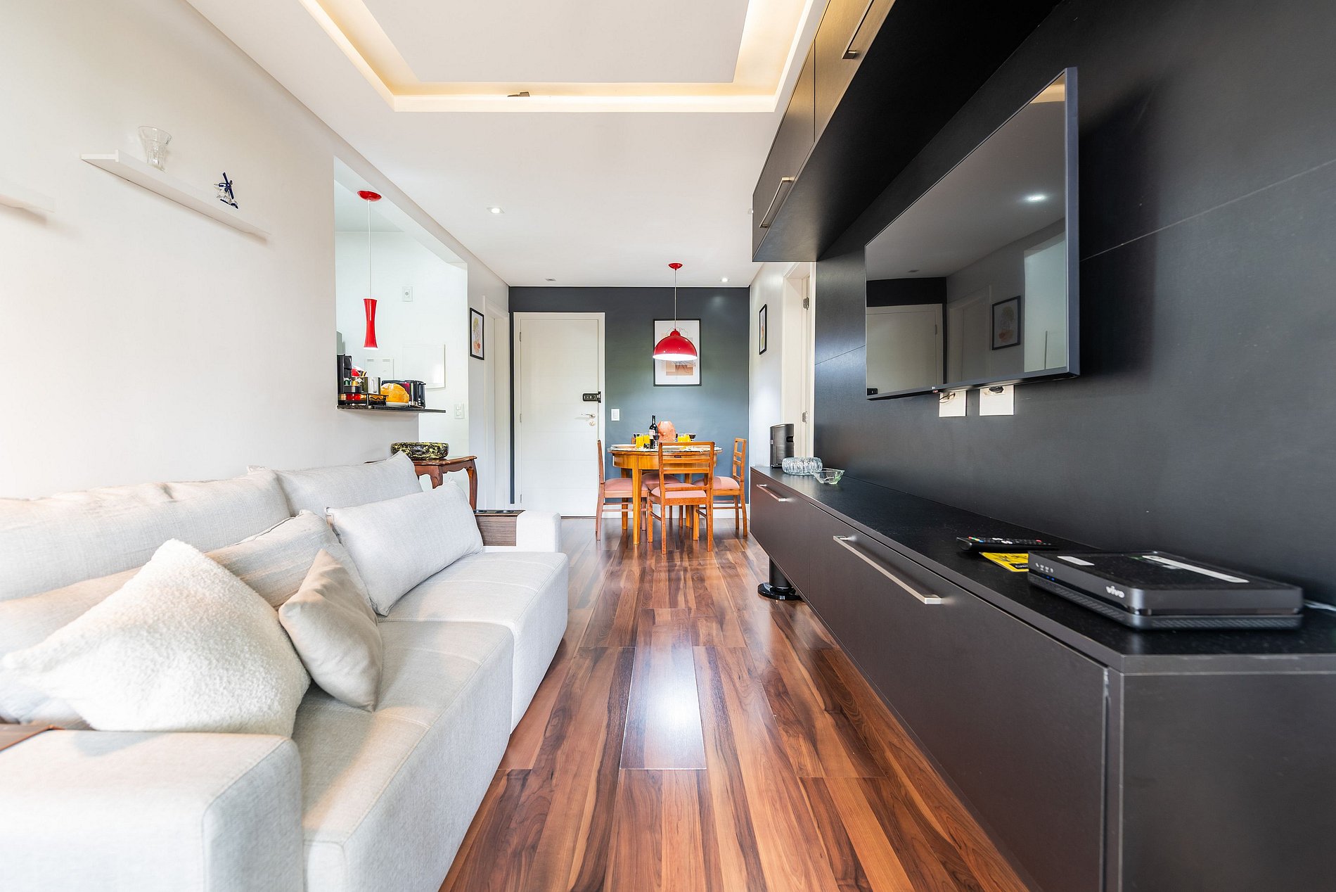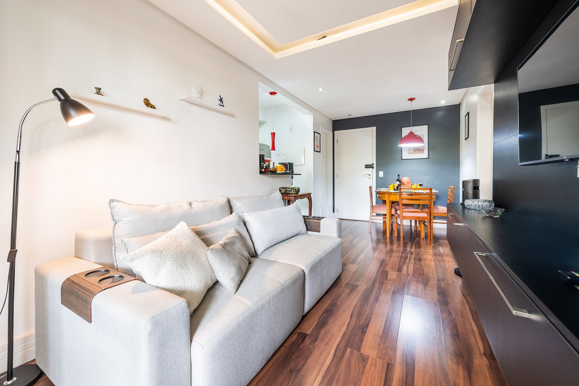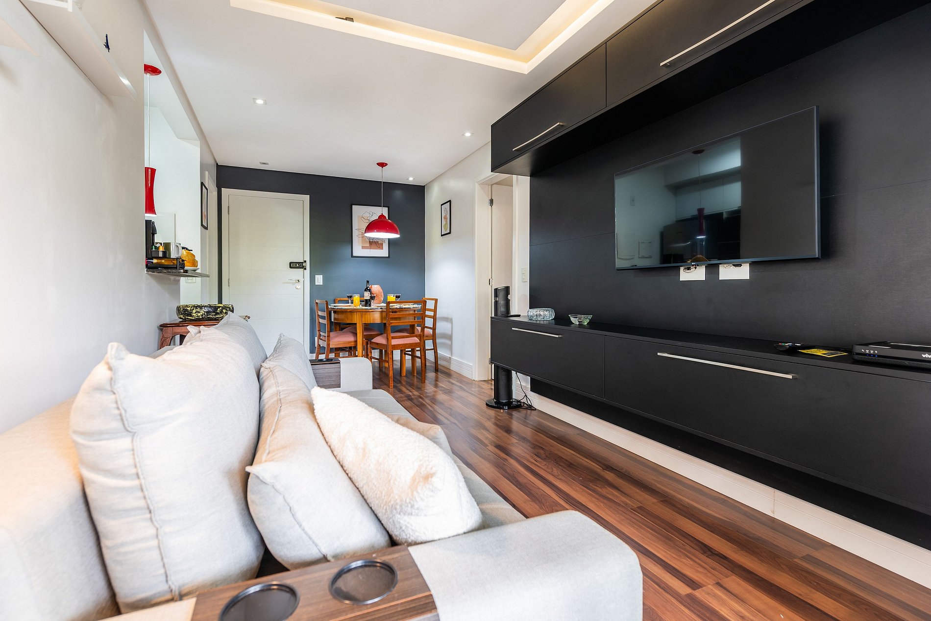 * Sala de Estar: Confortável e aconchegante, equipada com Smart TV e um sofá que pode ser transformado em sofá cama, ideal para momentos de relaxamento.